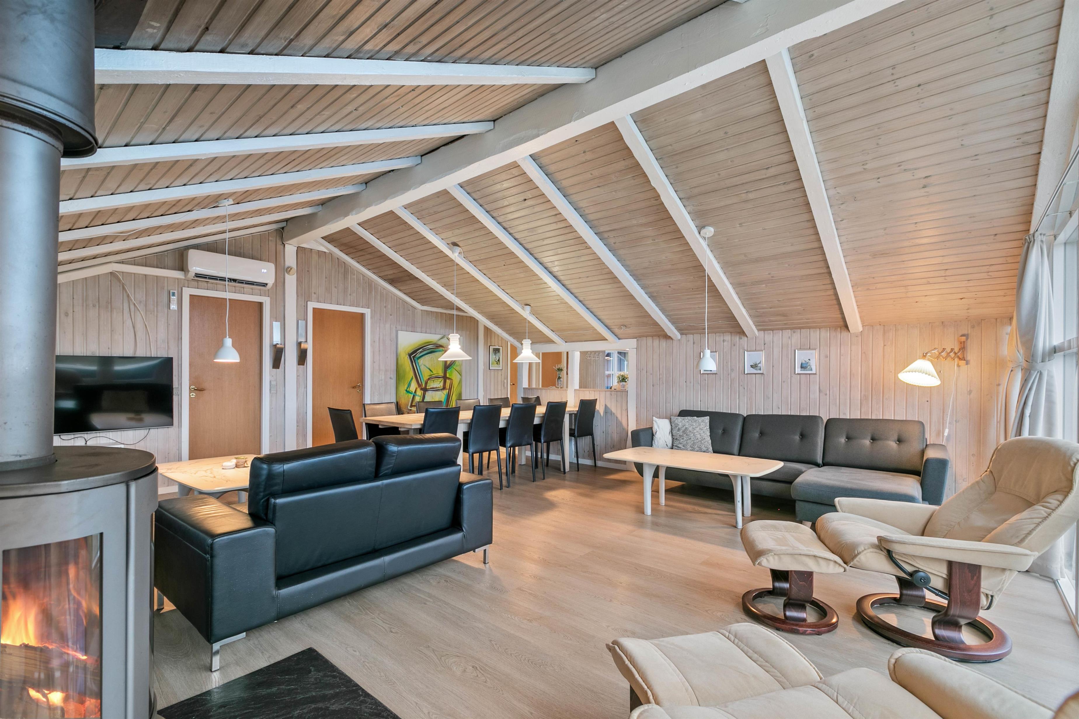 Det store feriehus har 2 opholdsrum, forbundet af køkkenafdelingen. Det ene opholdsrum har et billardbord i centrum – her kan familiedysten afgøres. Der er ligeledes plads til at hygge med kort- eller brætspil.