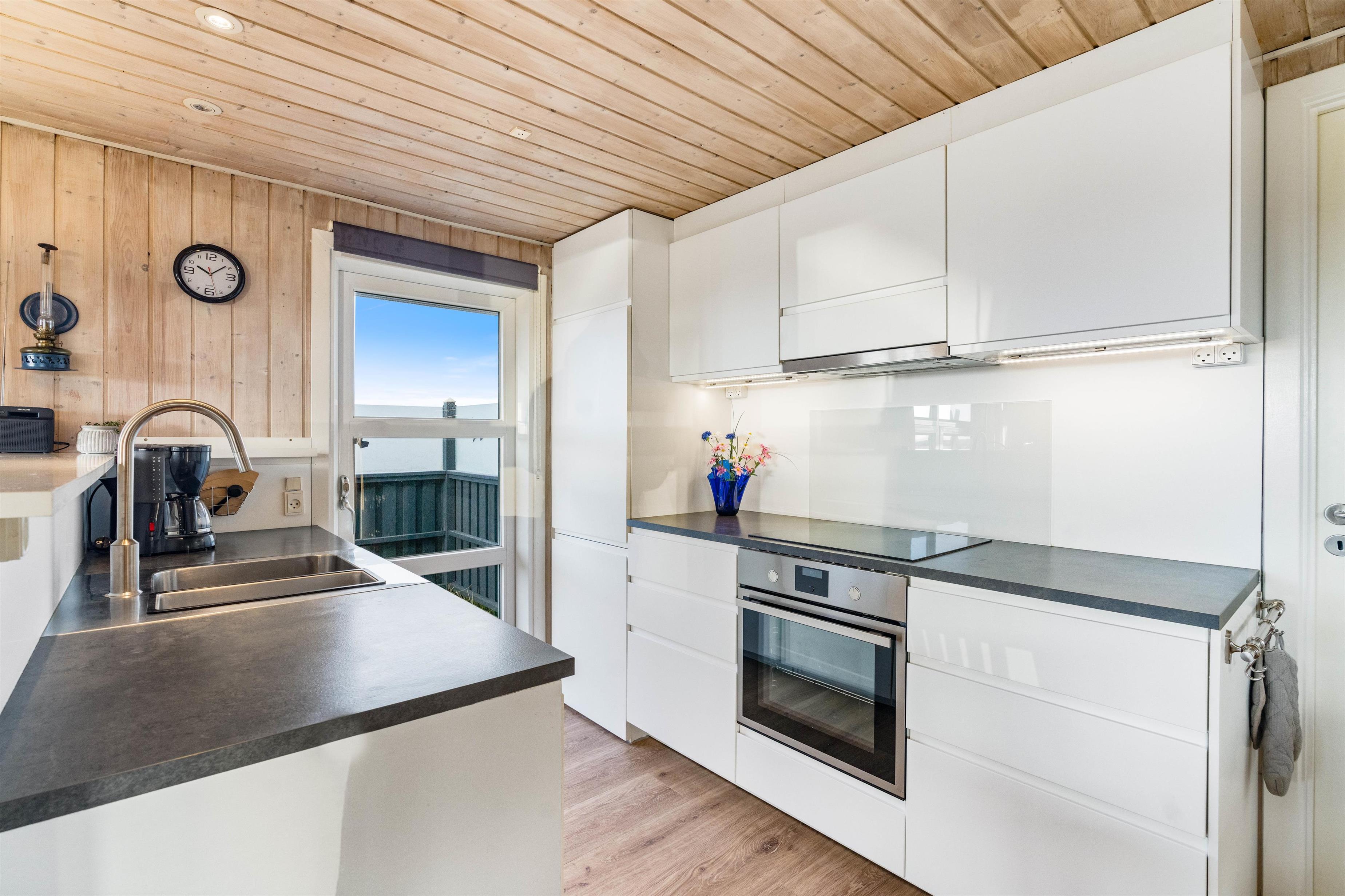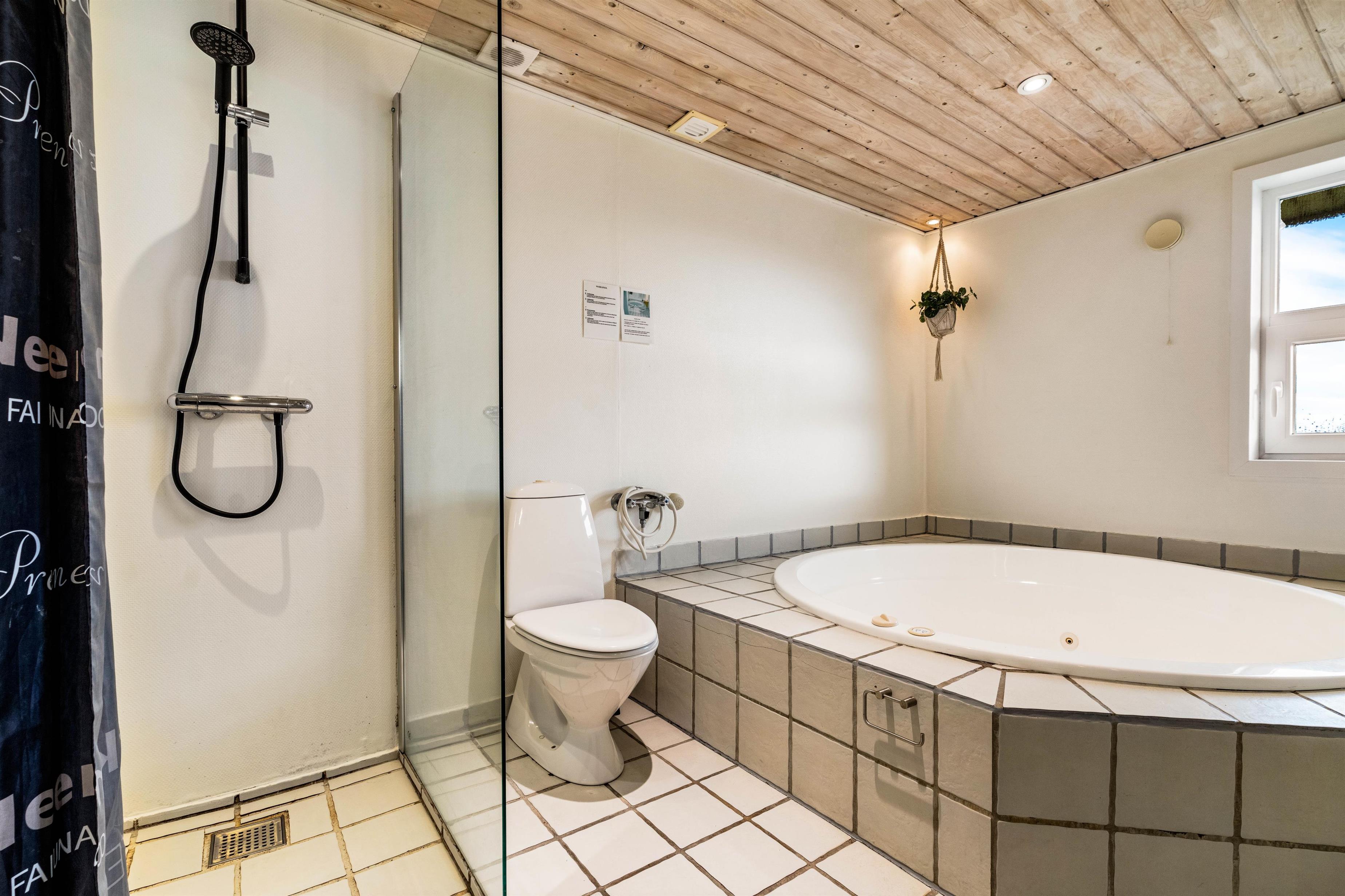 På det store badeværelse er der installeret et stort standvands spabad med plads til fire personer, så I her rigtig kan hygge jer eller lade børnene boltre sig i de varme bobler. Sommerhuset har også en god sauna, så der er rig lejlighed til at forkæle jer selv og slappe helt af.