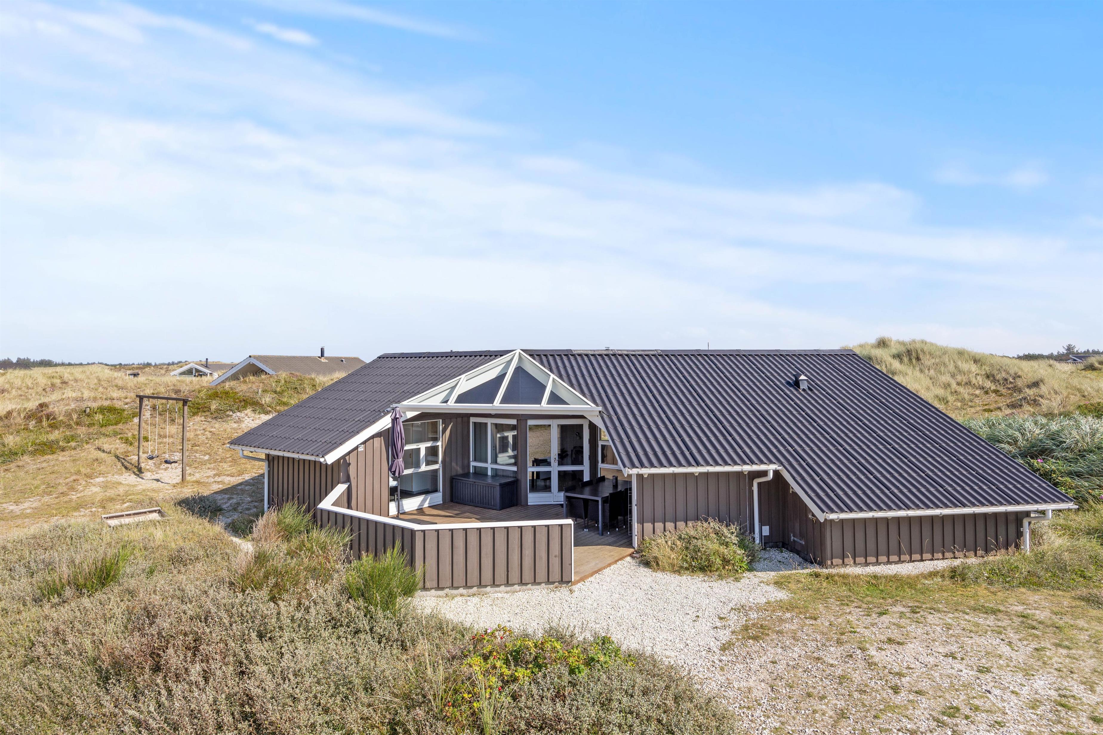 Feriehuset ligger på en dejlig naturgrund bare 400 meter fra stranden. Der er en stor, lukket og delvist overdækket terrasse, hvor I uforstyrret kan slappe af på solvognen, mens børnene leger udenfor. Til familiens mindste er der desuden en gynge og en sandkasse. Havemøbler og grill hører begge dele til standardudstyret.