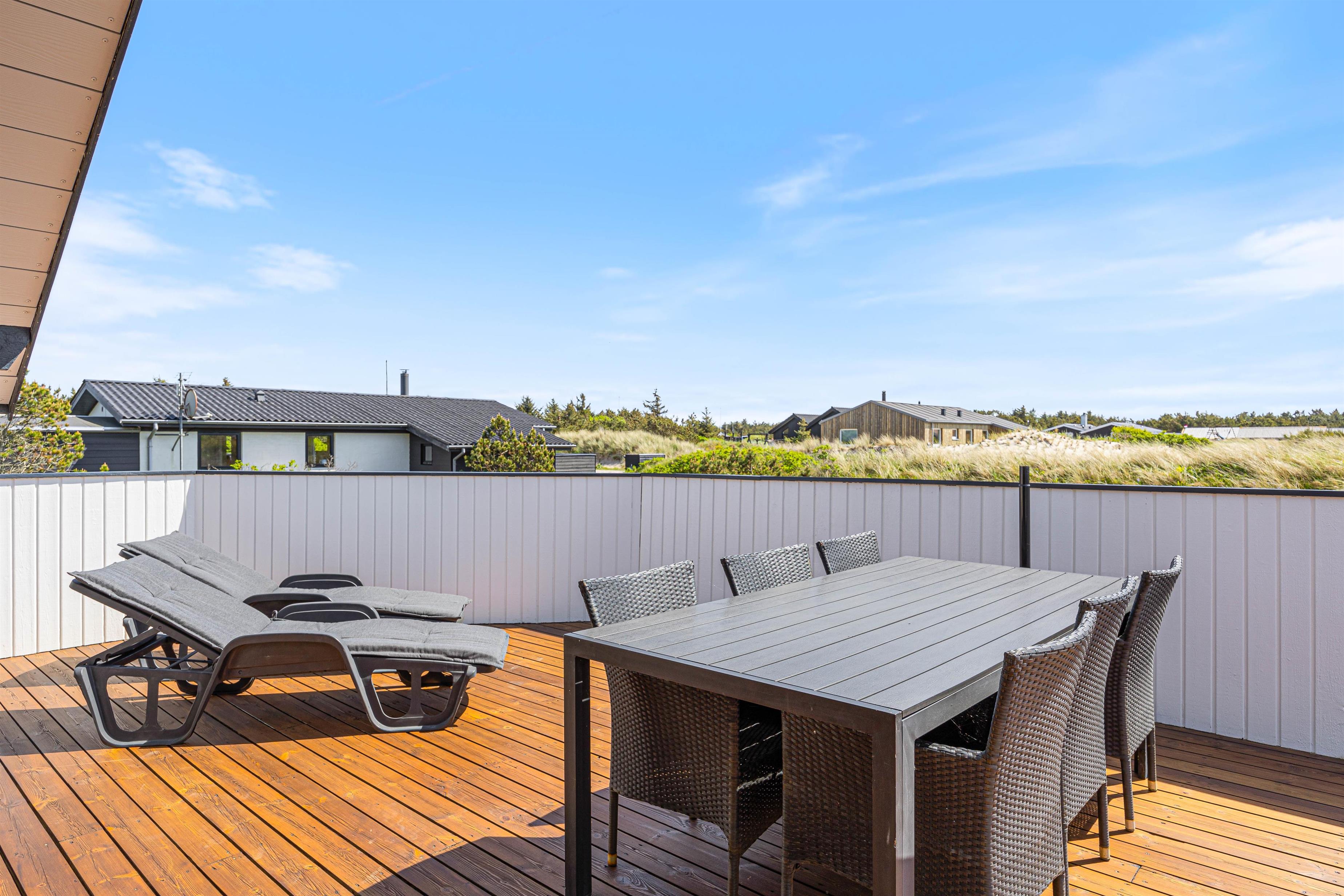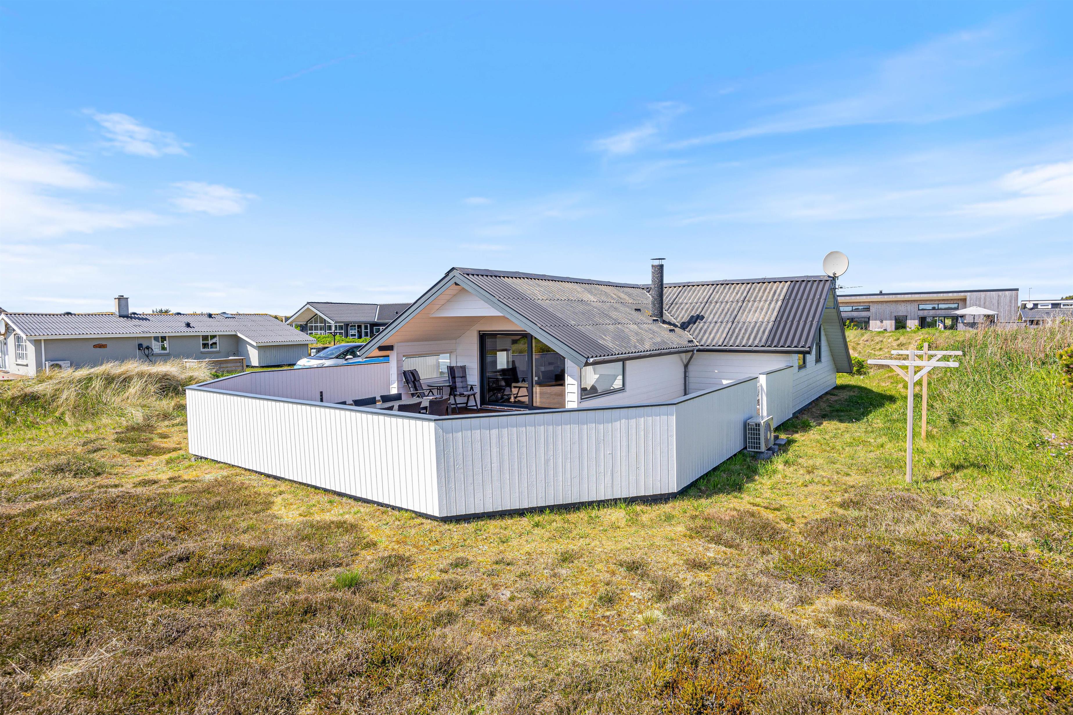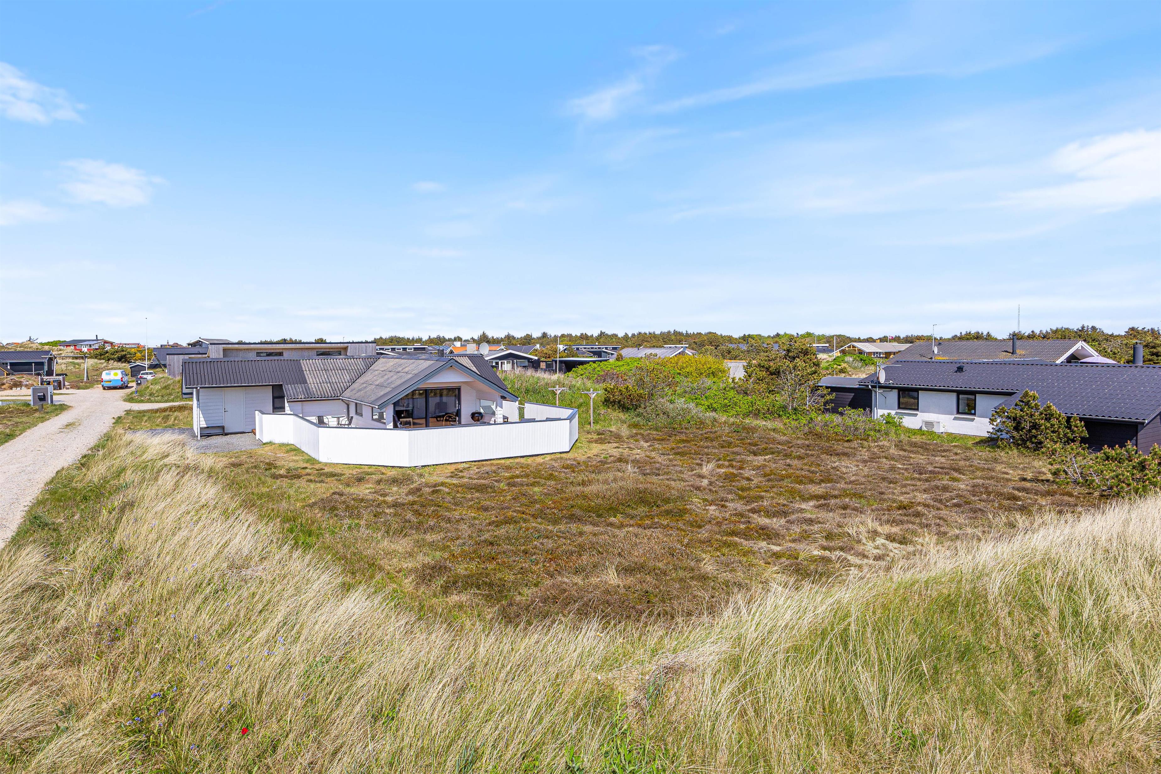 På en let afskærmet naturgrund kun 800 meter fra Vesterhavet ligger dette hyggelige og velindrettede feriehus med flot og smagfuld indretning. Feriehuset har en stor terrasse, hvor du kan slappe af og nyde solens stråler fra morgen til aften.