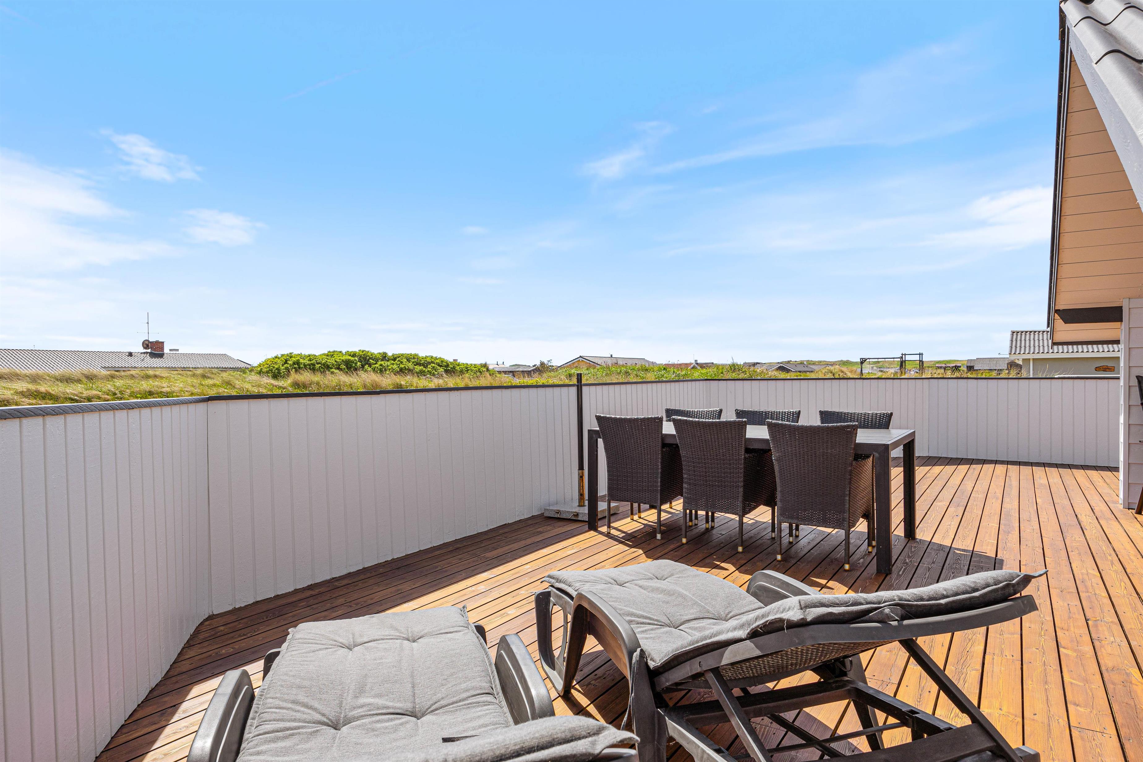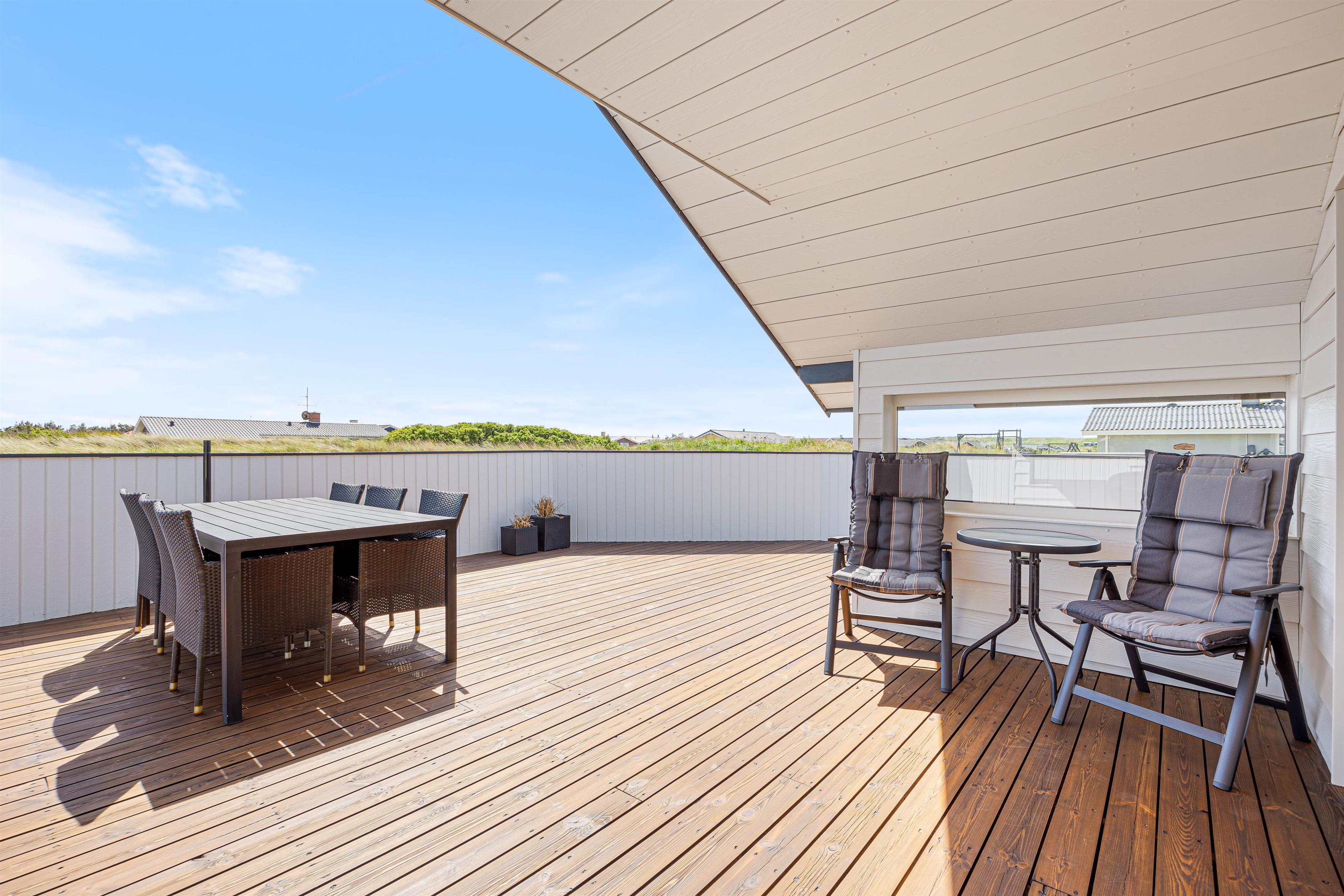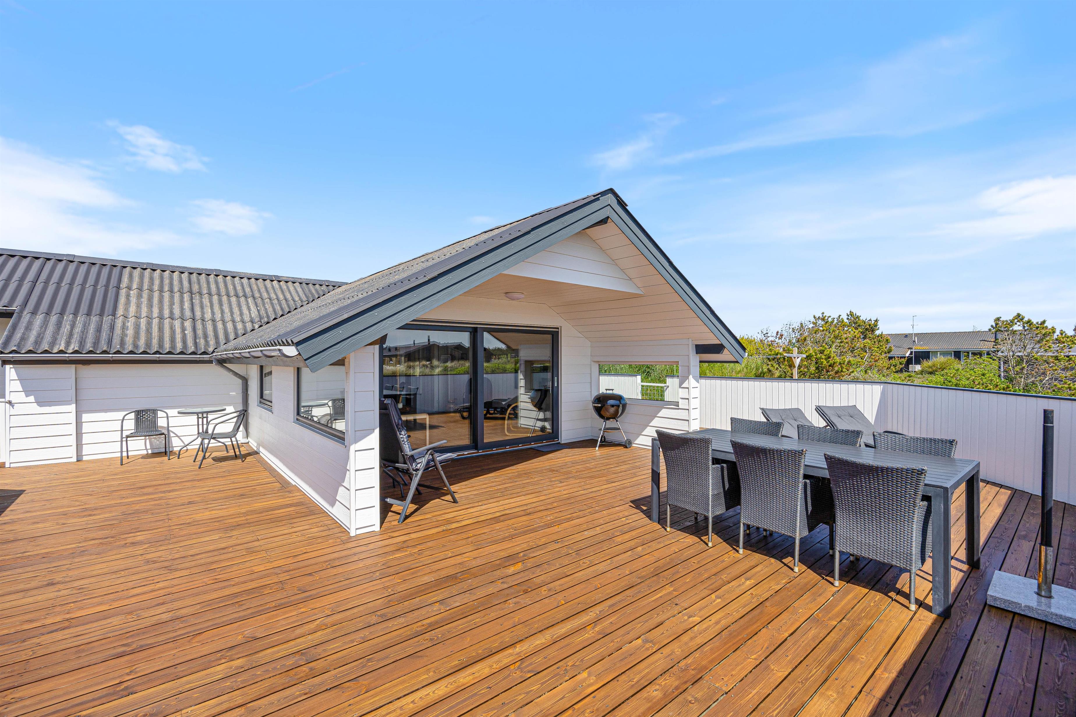 På en let afskærmet naturgrund kun 800 meter fra Vesterhavet ligger dette hyggelige og velindrettede feriehus med flot og smagfuld indretning. Feriehuset har en stor terrasse, hvor du kan slappe af og nyde solens stråler fra morgen til aften.