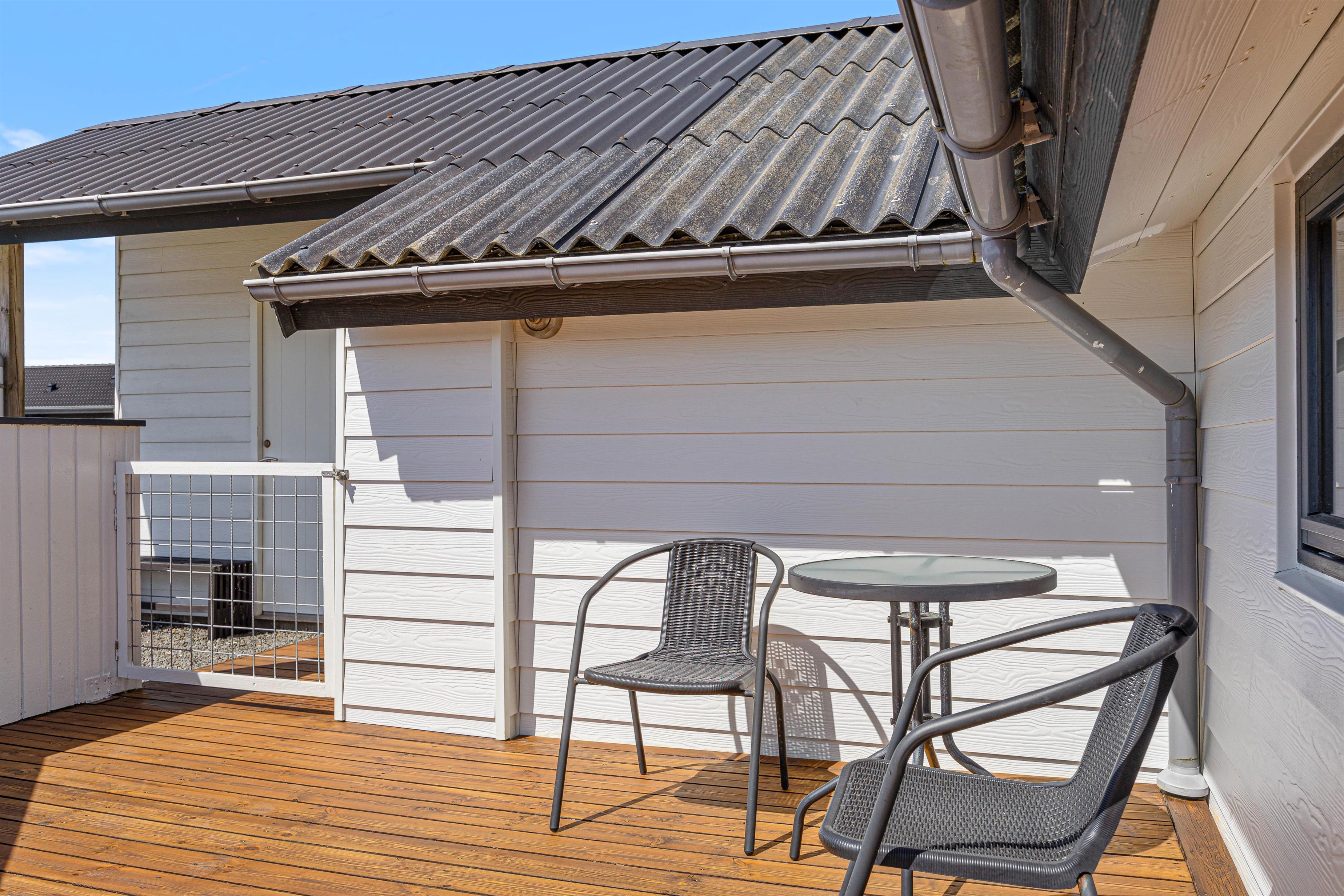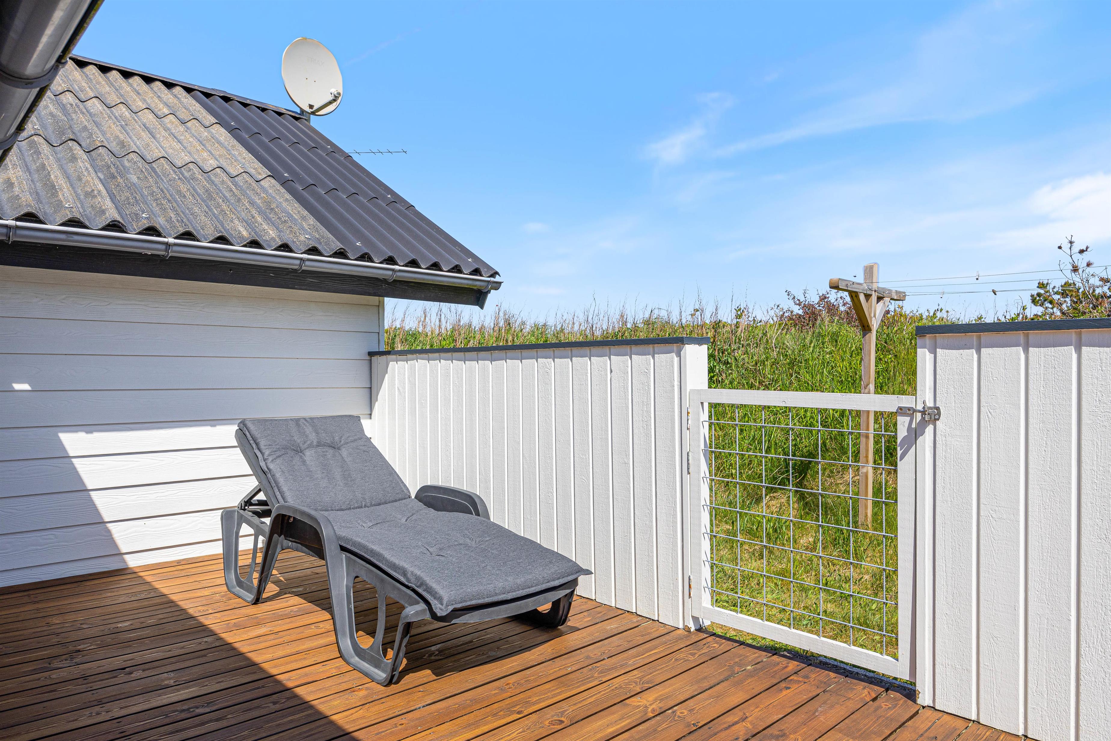 Feriehuset på Dortheasvej 24 har en dejlig stor og lukket terrasse, hvor du smide dig i liggestolen og nyde solen og den friske luft, mens børnene leger. Og da terrassen også er delvist overdækket og afskærmet, er den især godt egnet til en hyggelig grillaften – den perfekte afslutning på en dejlig feriedag.