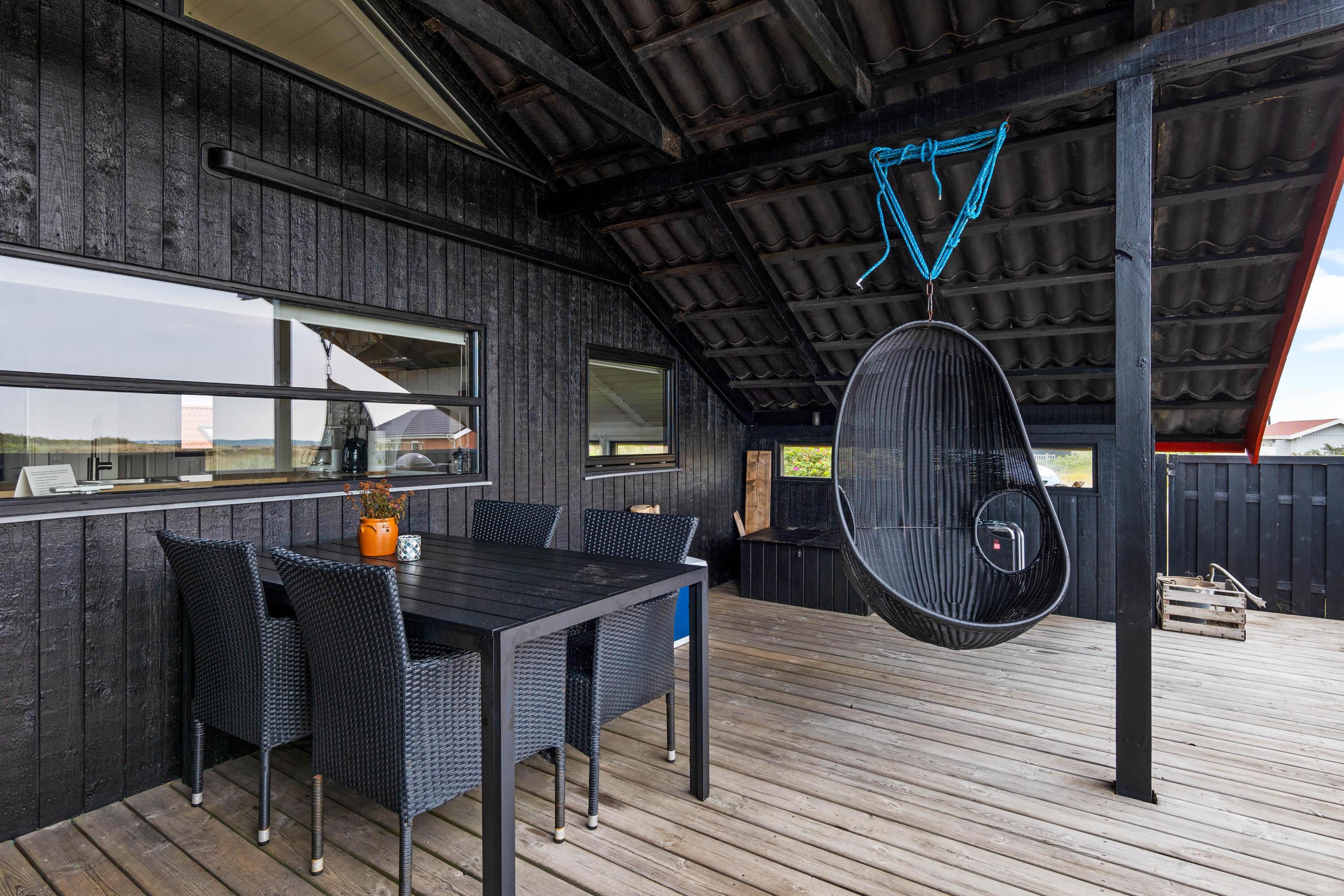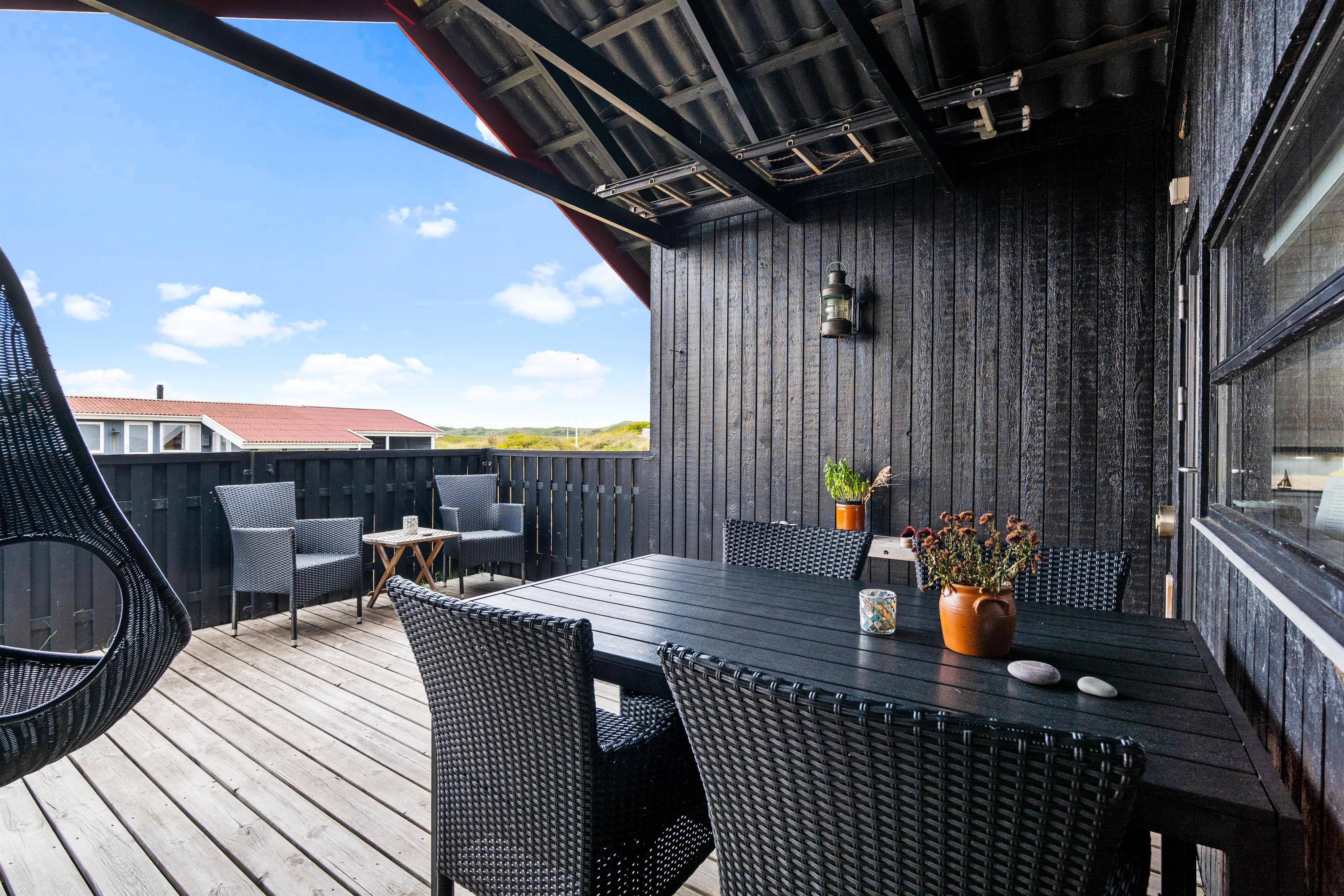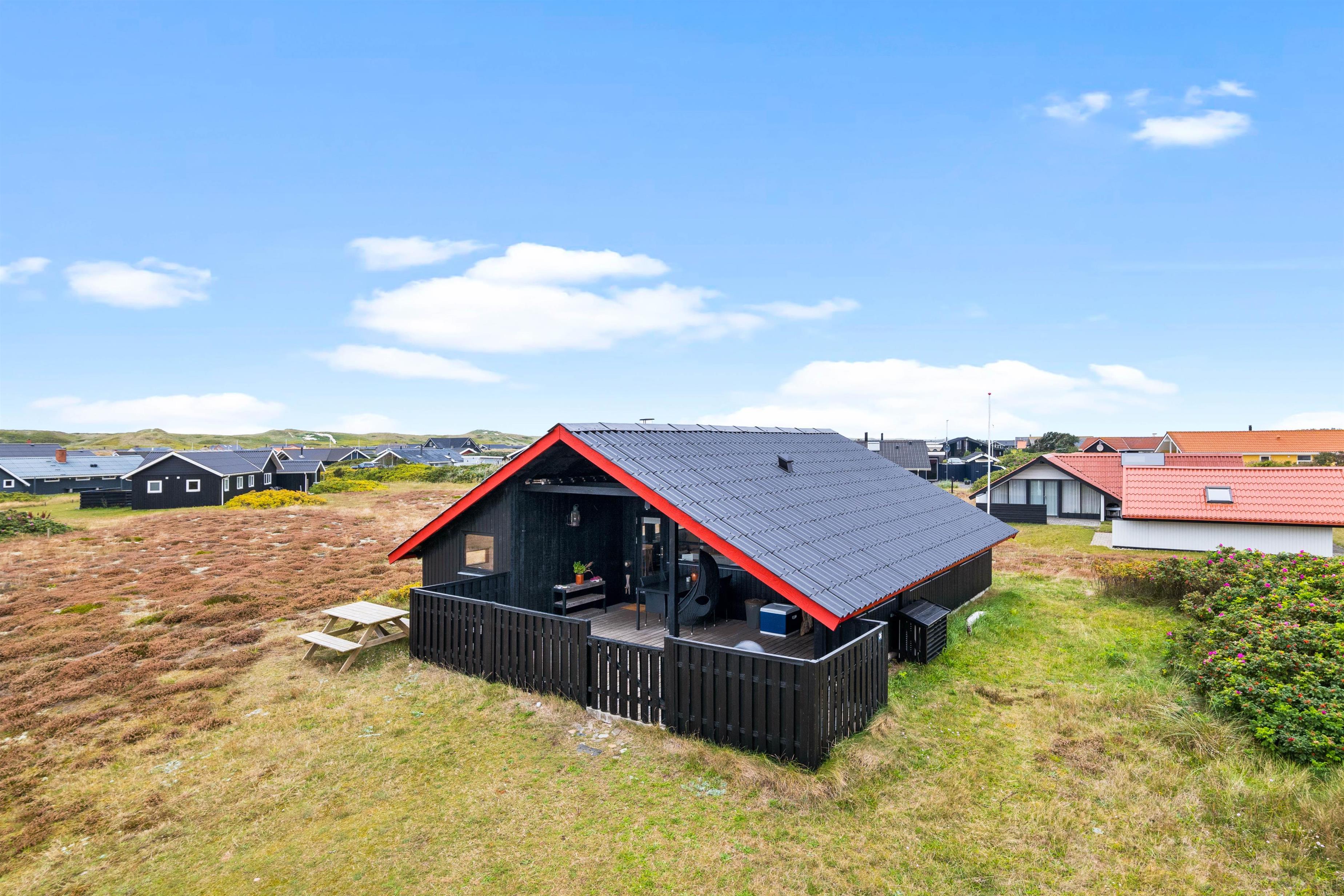 Feriehuset ligger kun 400 meter fra havet, og på grund af den overdækkede terrasse, er det altid muligt at sidde udenfor og nyde havluften. Der er intet som en dejlig aften på terrassen med mad, tilberedt på sommerhusets grill, og med havets brusen i baggrunden. Ferieboligen ligger desuden tæt på det fredede hede område mellem Bjerregård og Nymindegab, hvor du har en fantastisk udsigt over det fredede naturområde. Her har du virkelig mulighed for at være helt dig selv og bare slappe af.