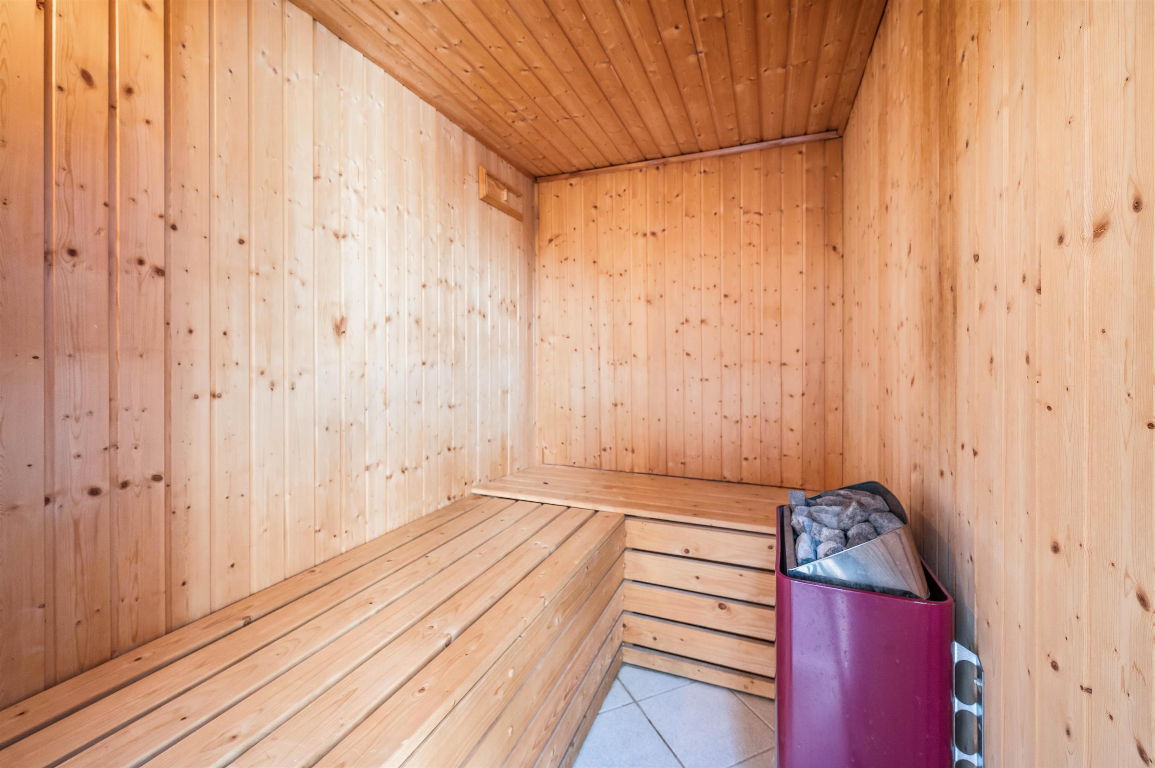 Et mindre gæstetoilet og en stor wellnessafdeling med spa og sauna giver en fantastisk komfort og mulighed for total afslapning. Vaskemaskine og tørretumbler hører naturligvis også med.