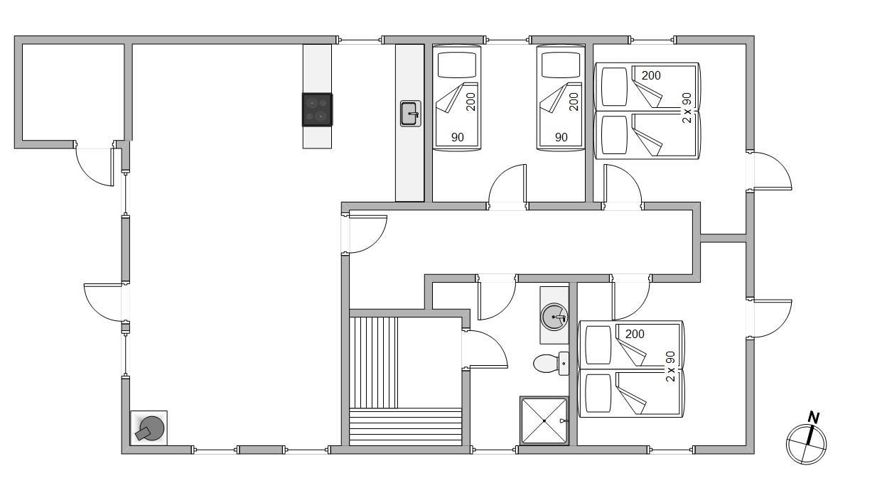 Efter en dag i den friske natur er det ren afslapning at slutte af i feriehusets store saunaen, som er integreret i badeværelset. Badeværelset har desuden også gulvvarme og til den velfortjente nattesøvn byder sommerhuset på 3 hyggelige soveværelser, hvoraf nogle har direkte adgang til terrassen.