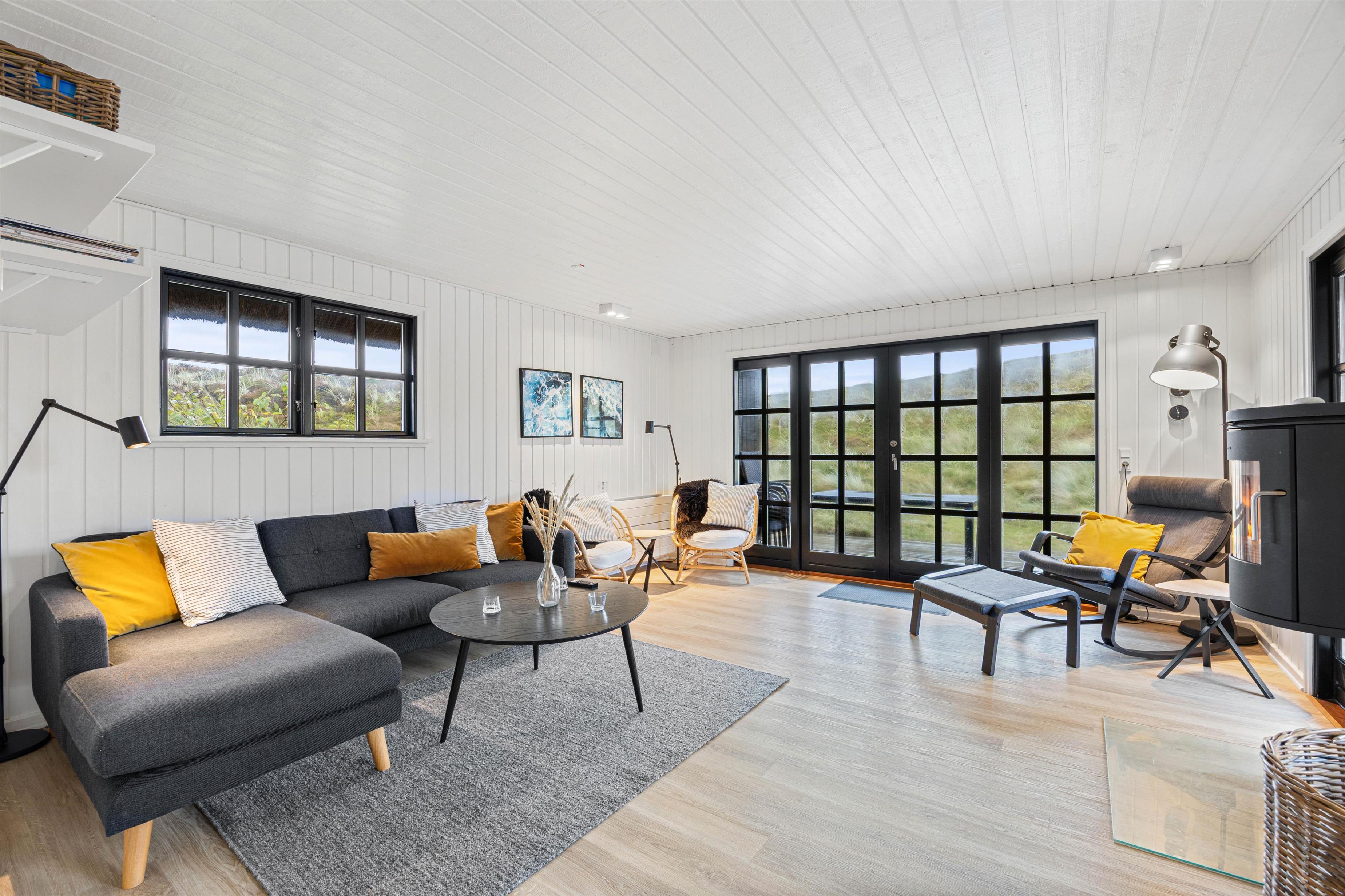 Slap af i skønne lyse omgivelser med brændeovn