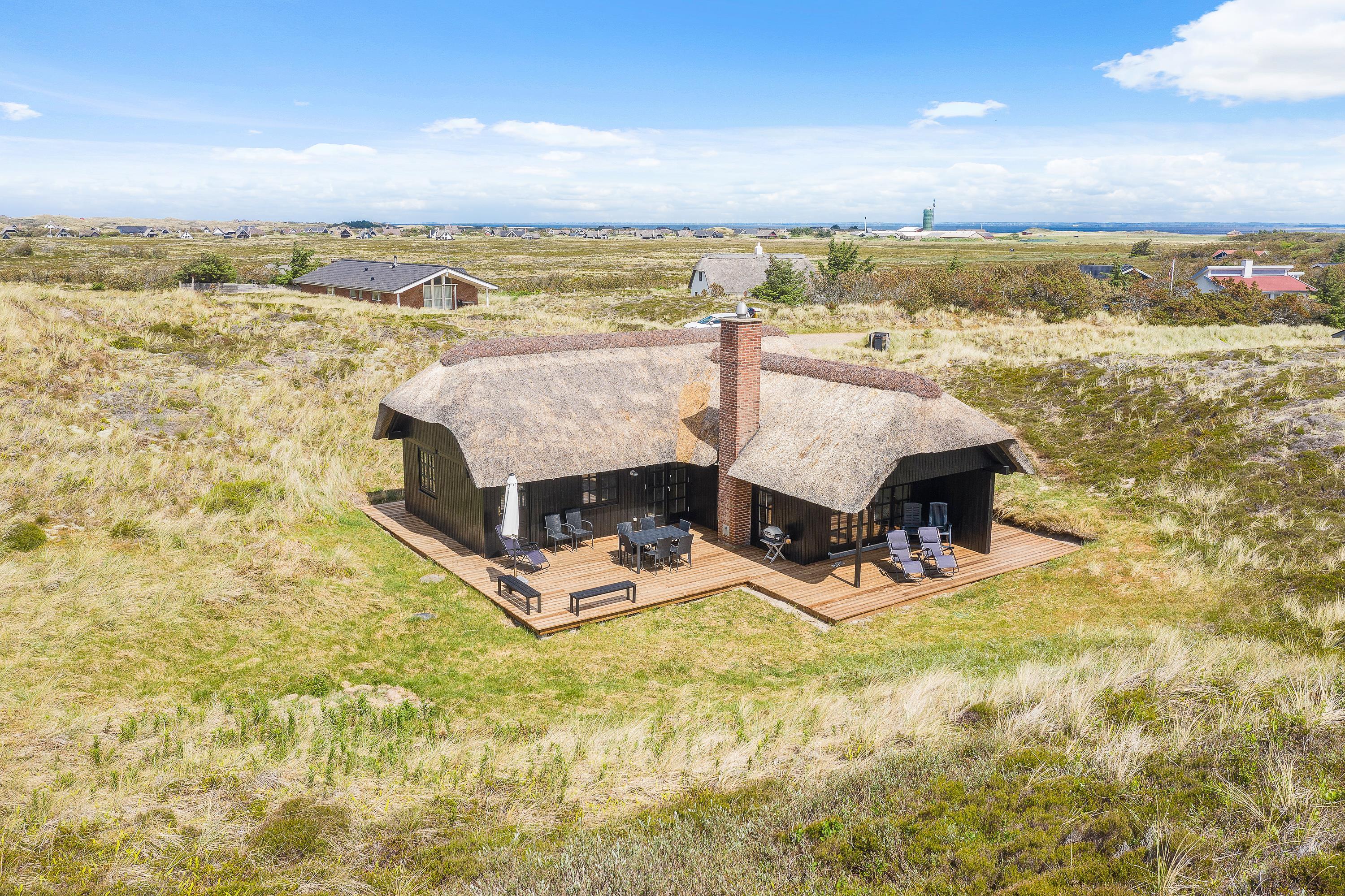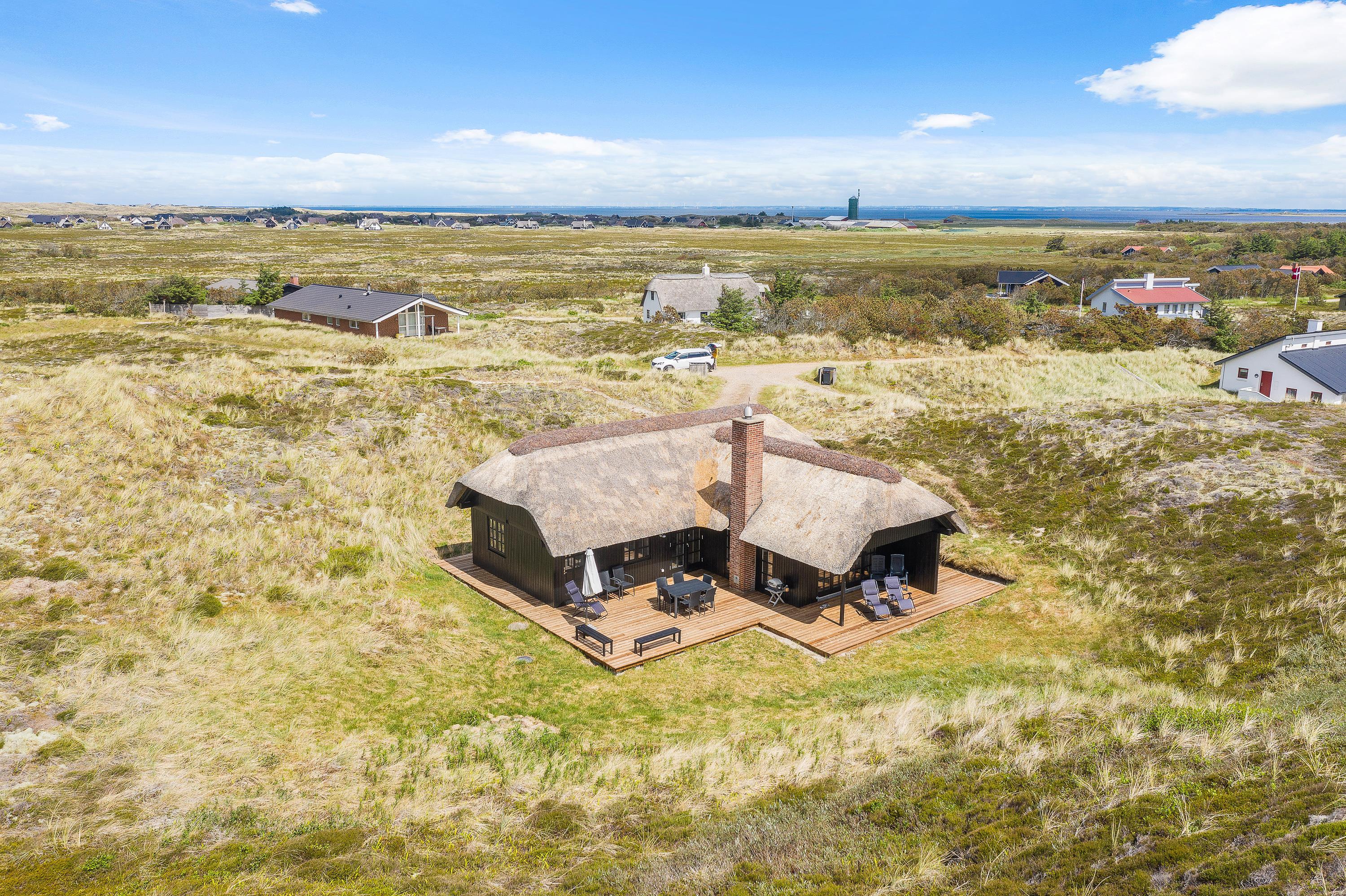 Kun 400 meter fra denne stråtækte perle ligger Vesterhavet og den endeløse sandstrand, som året rundt indbyder til forfriskende gåture langs vandet.