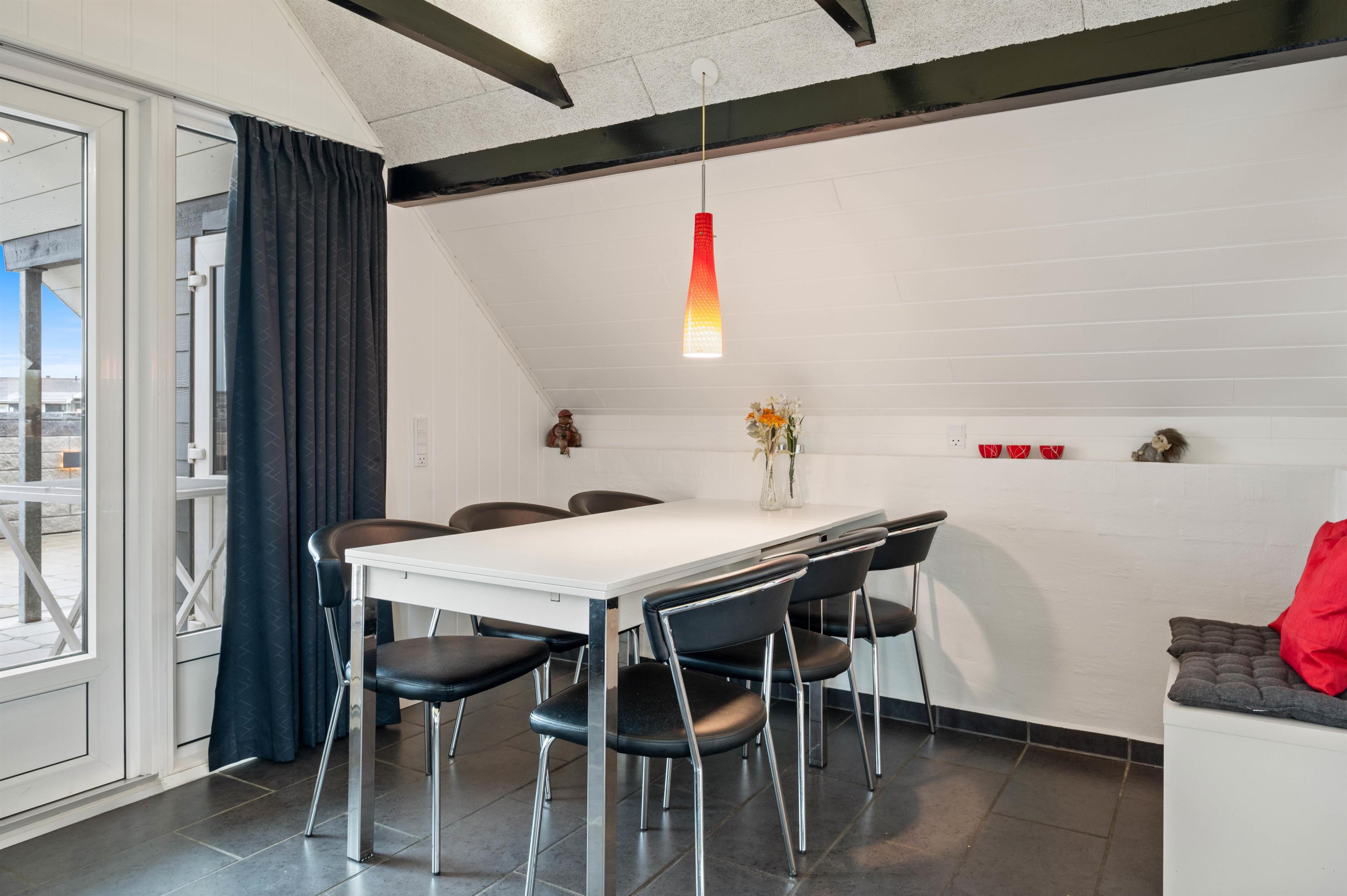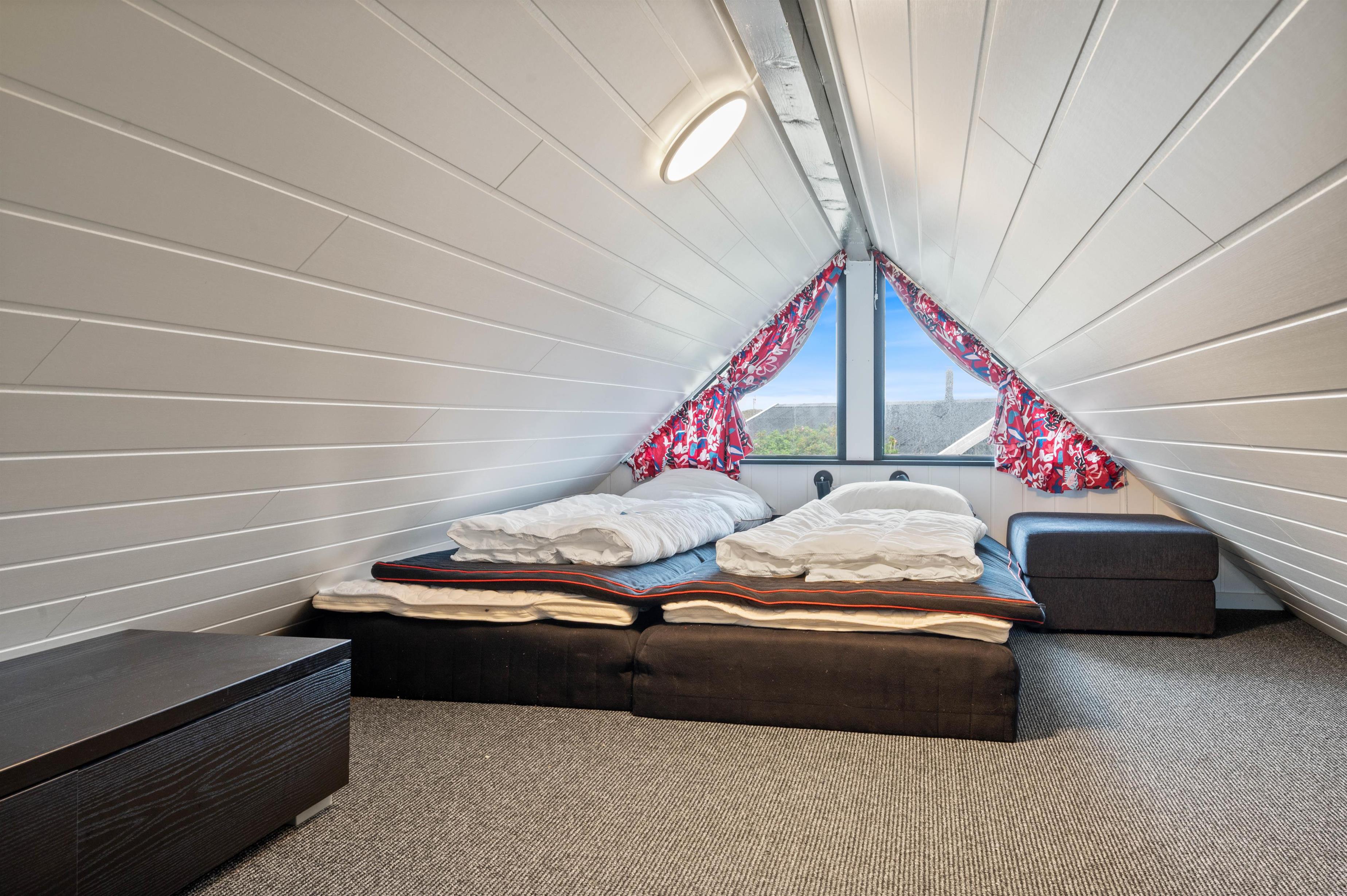 Dette skønne sommerhus byder velkommen med lyse vægge, loft til kip og fritlagte bjælker, som tilsammen giver et særdeles lyst og charmerende indtryk. De udsøgte møbler i både spiseafdeling og opholdsafdeling, det velindrettede køkken og den hyggelige indbyggede brændeovn indbyder til ren afslapning, når ferien skal holdes i Danmark. Her er et godt soveværelse med en komfortabel dobbeltseng, et værelse med dobbelt sovesofa samt 2 sovepladser på den hyggelige hems.