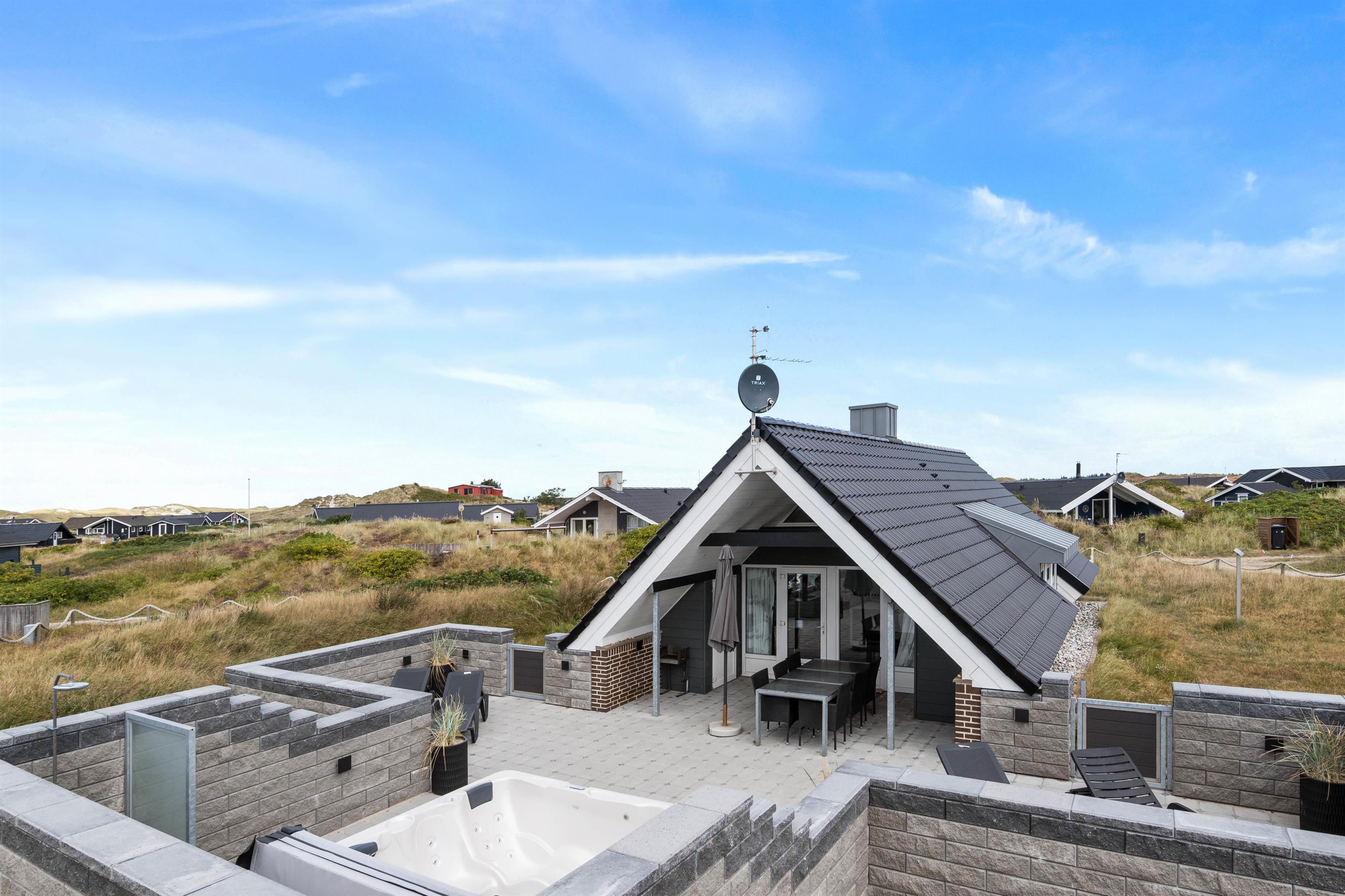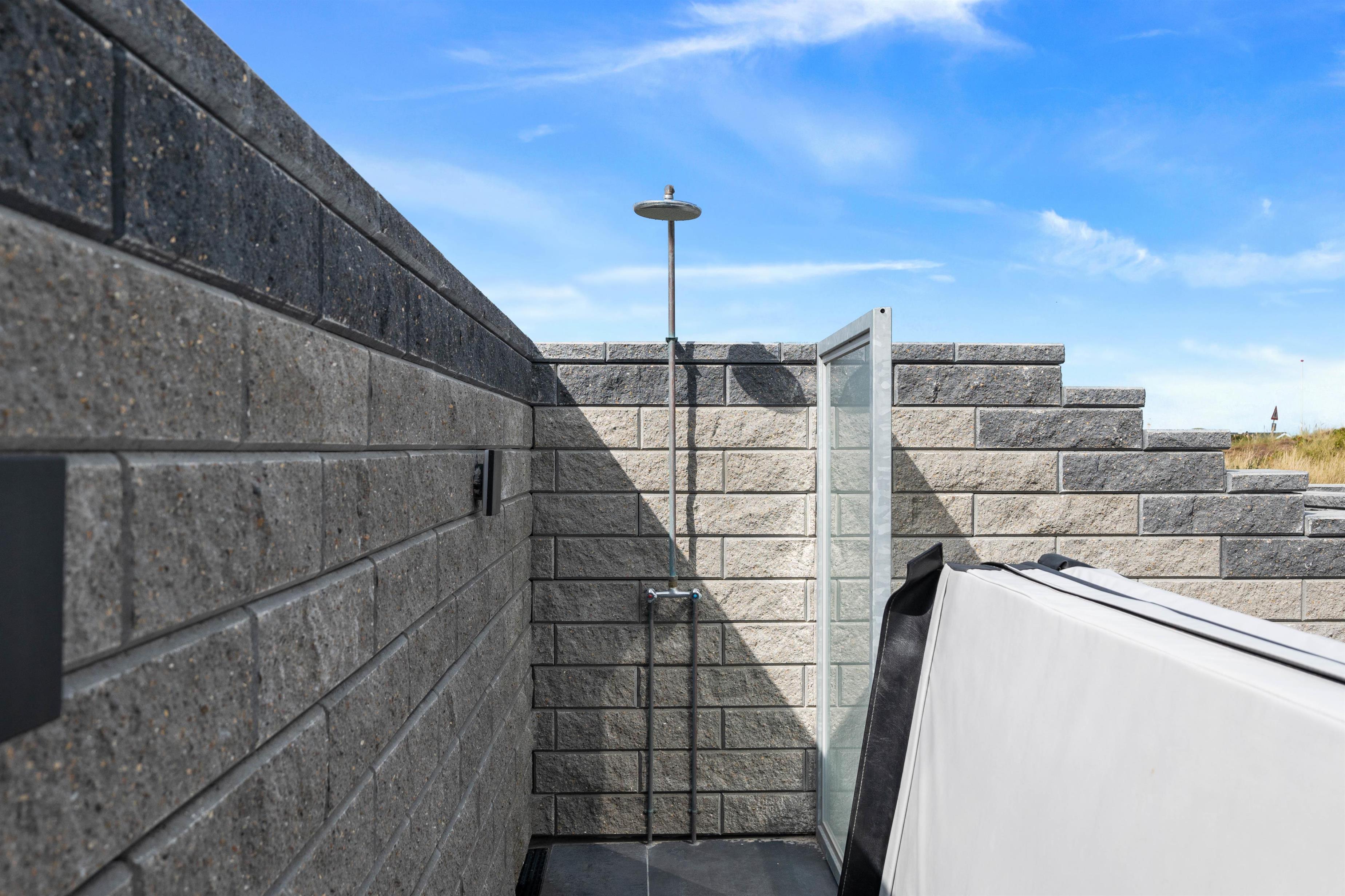 Huset ligger på en dejlig rolig naturgrund tæt på havet. Den store møblerede og helt lukkede terrasse danner en herlig tumleplads for såvel børnene som familiens hund og giver mulighed for ugeneret at nyde naturen, solen og ferien på nordsøkysten i Danmark. Den fine sandstrand nås på få minutter (ca. 450 m). Om sommeren byder udebruseren den perfekte mulighed for at skylle sand og salt fra kroppen efter en tur til stranden. Den kan benyttes fra april til november.