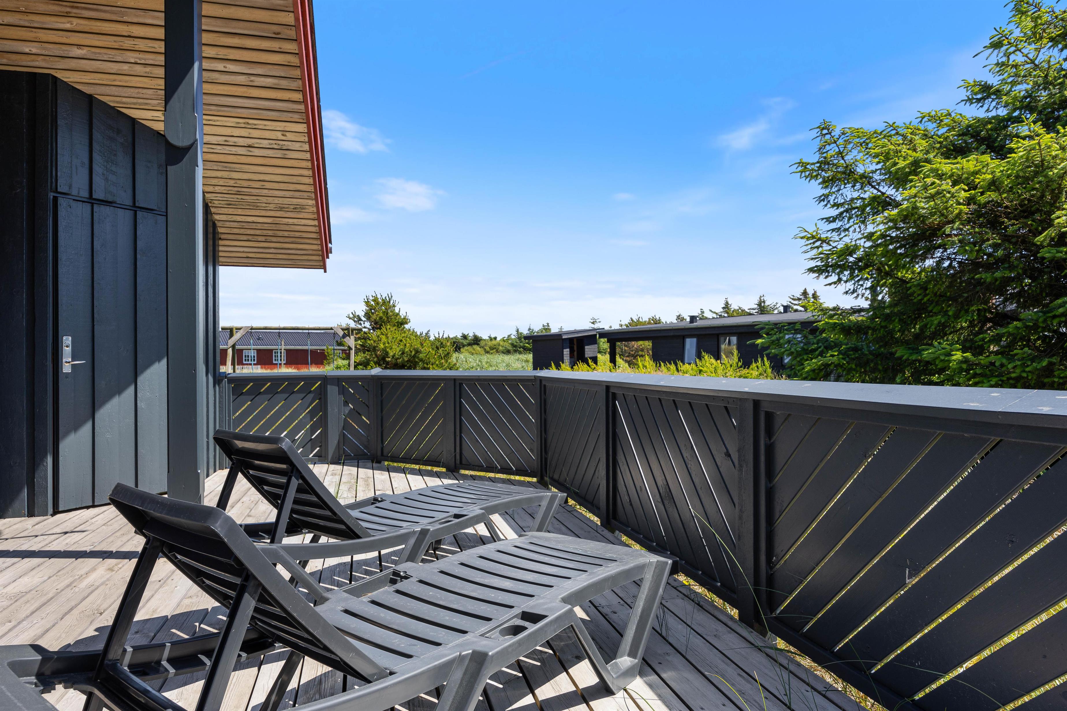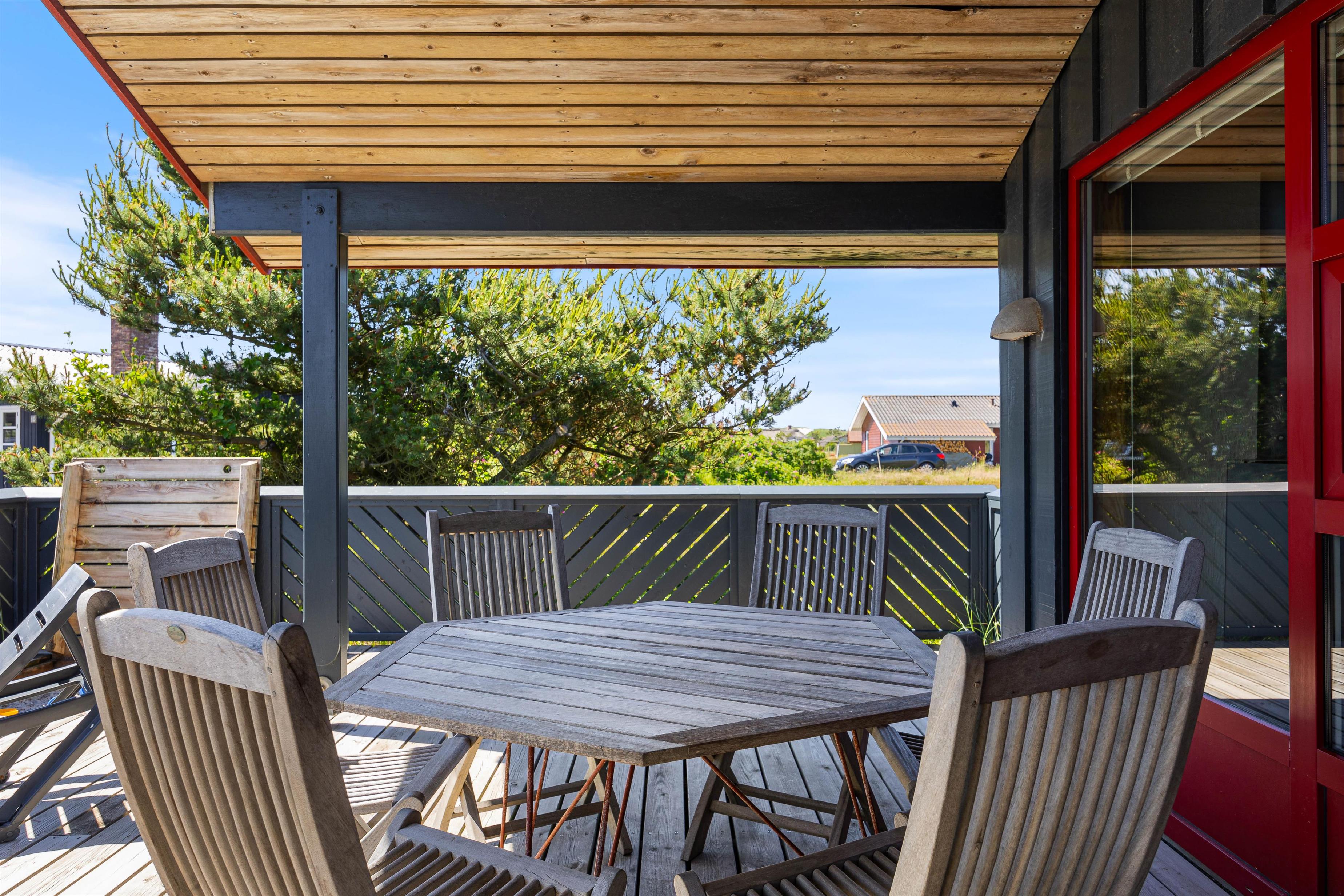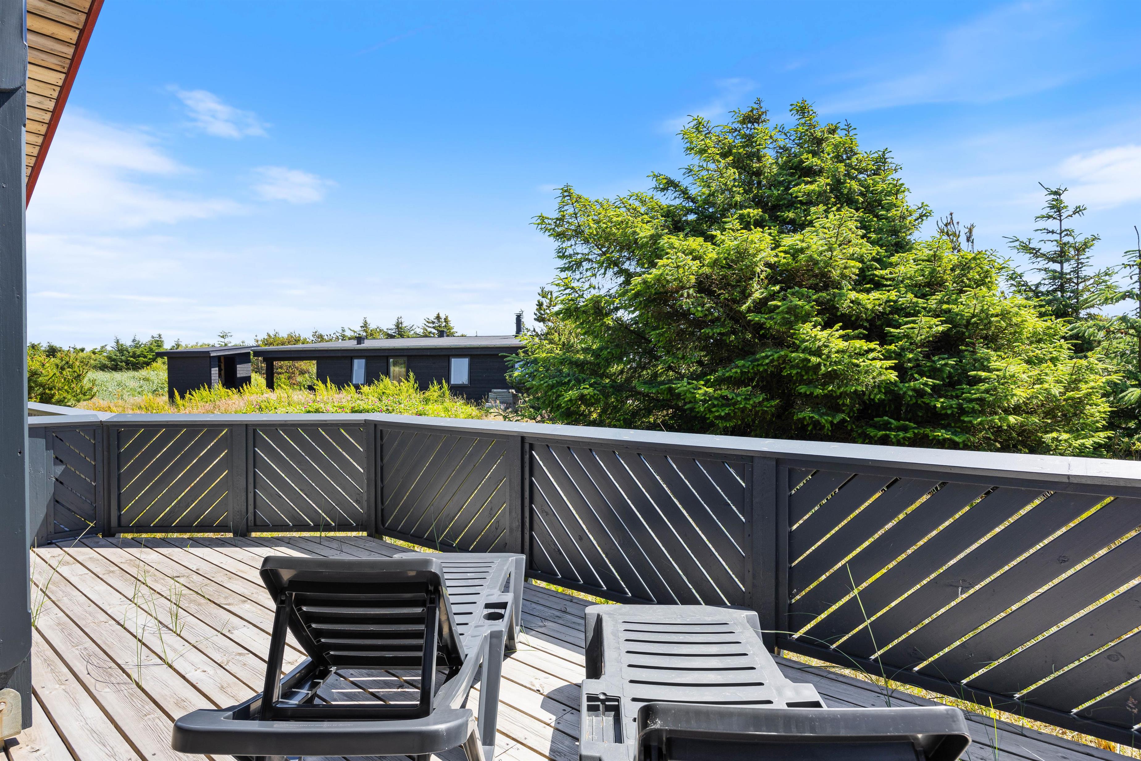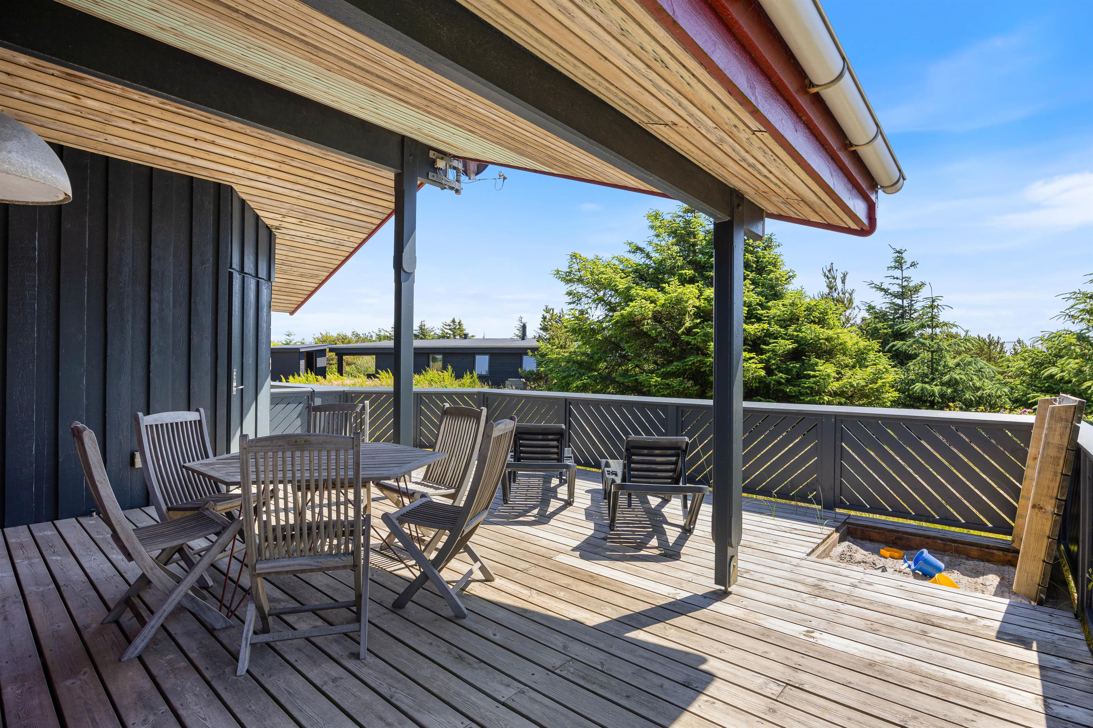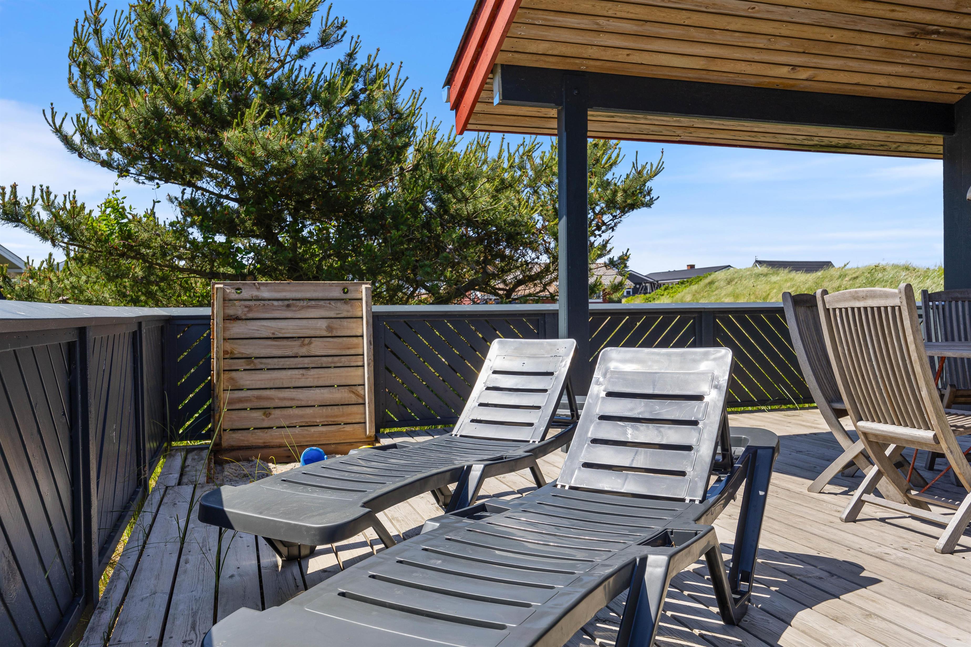 Sommerhuset i Bjerregård ligger på en 1923 m2 stor naturgrund, hvor der både er plads til udendørs aktiviteter og afslapning. En grill og komfortable havemøbler indbyder til hyggelige grillaftener, mens liggestole står klar til afslappende timer i sommersolen. Rundt om huset finder I flere gode terrasseområder; herunder en lukket og delvist overdækket terrasse.