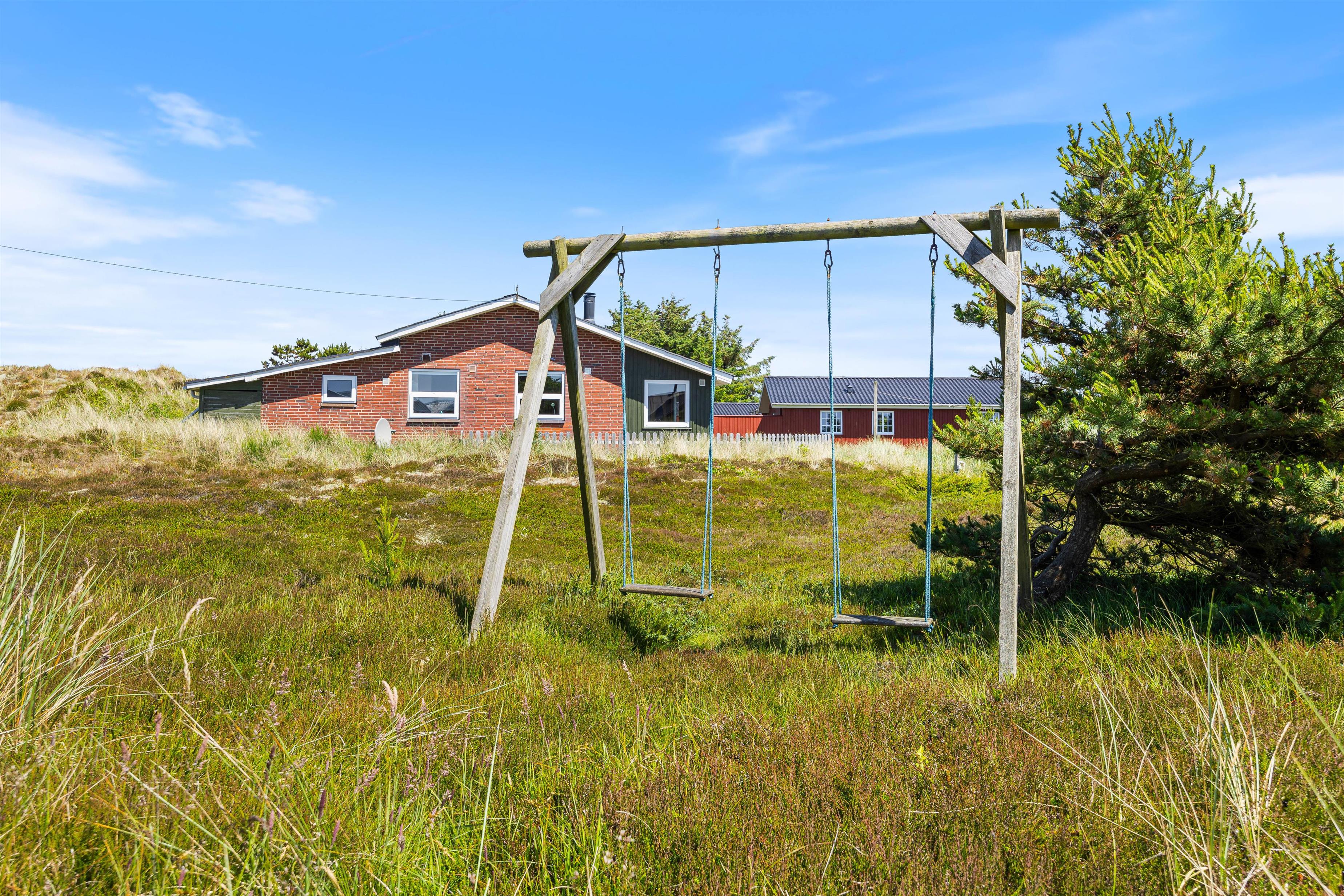 For de yngste gæster er der en sandkasse og en gynge, så de kan lege, mens I nyder eftermiddagskaffen i solen.