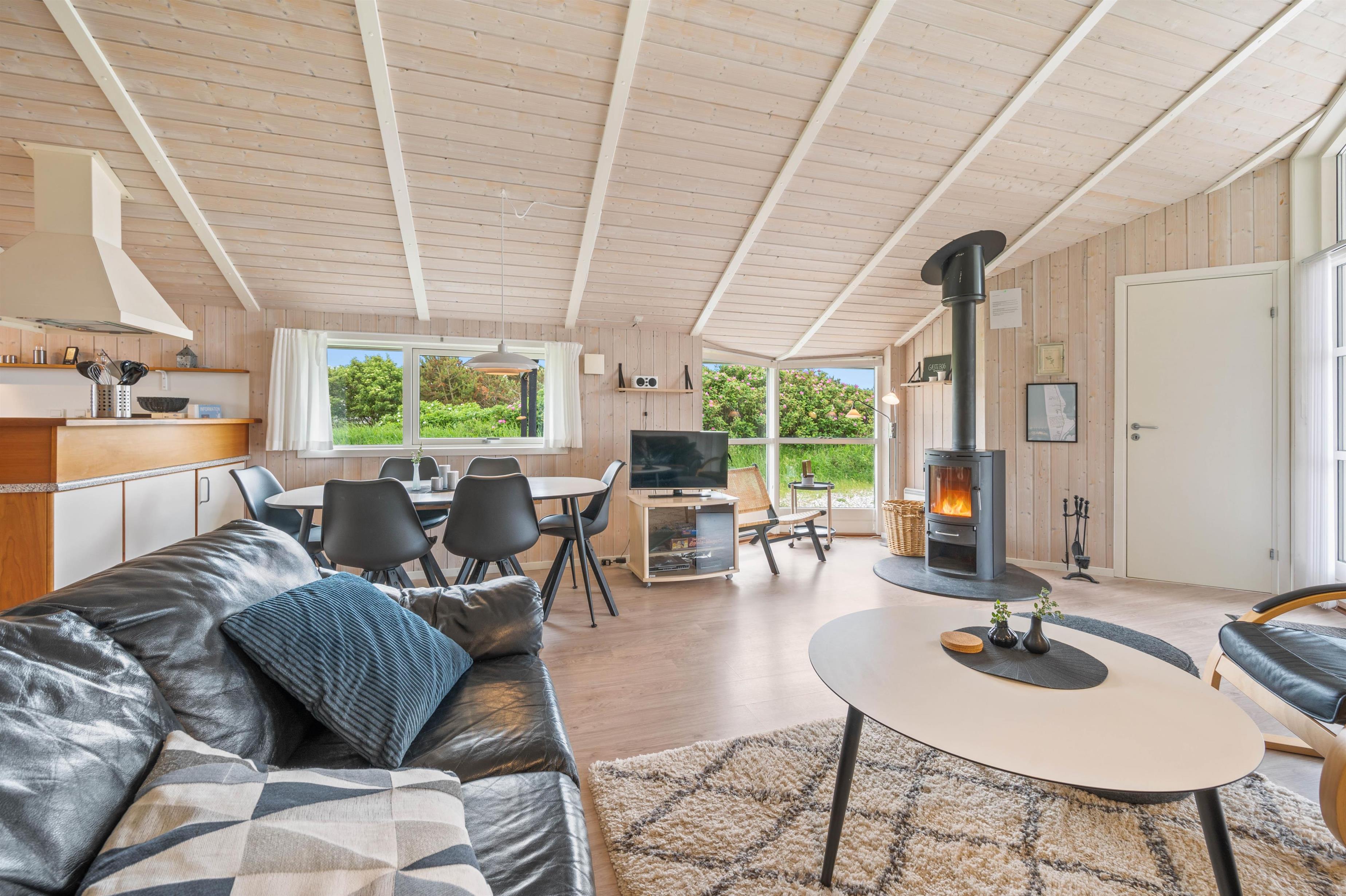 Med sine 77 velindrettede m² boligareal har I her mulighed for en dejlig afslappet ferie med fokus på hygge og samvær. Det lyse opholdsrum indbyder til samvær, mens brændeovnen sørger for hyggelig varme og en afslappet atmosfære. Den moderne varmepumpe sørger for behagelige rumtemperaturer året rundt.