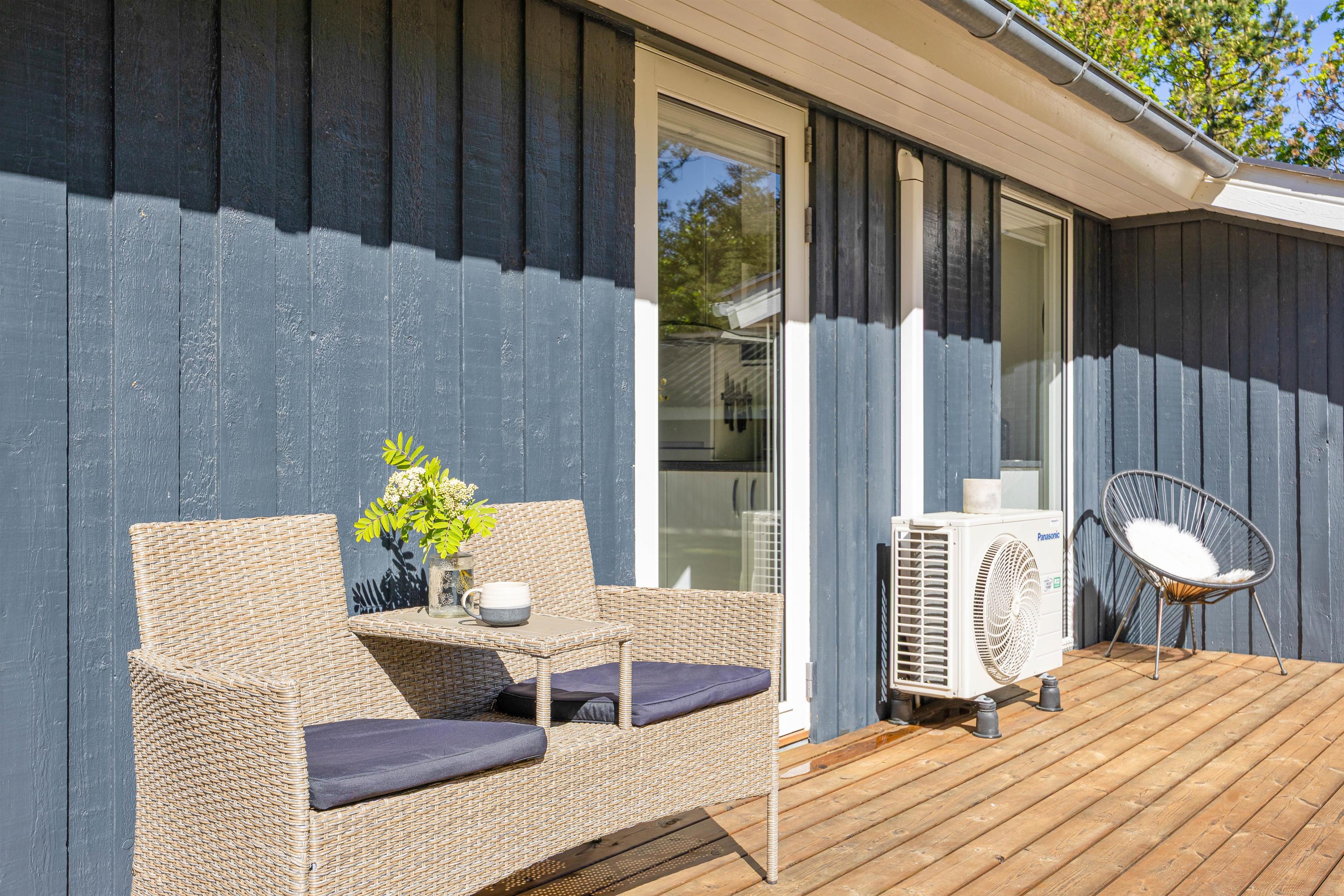 Sommerhuset er udstyret med en varmepumpe, som I med fordel kan benytte jer af.
