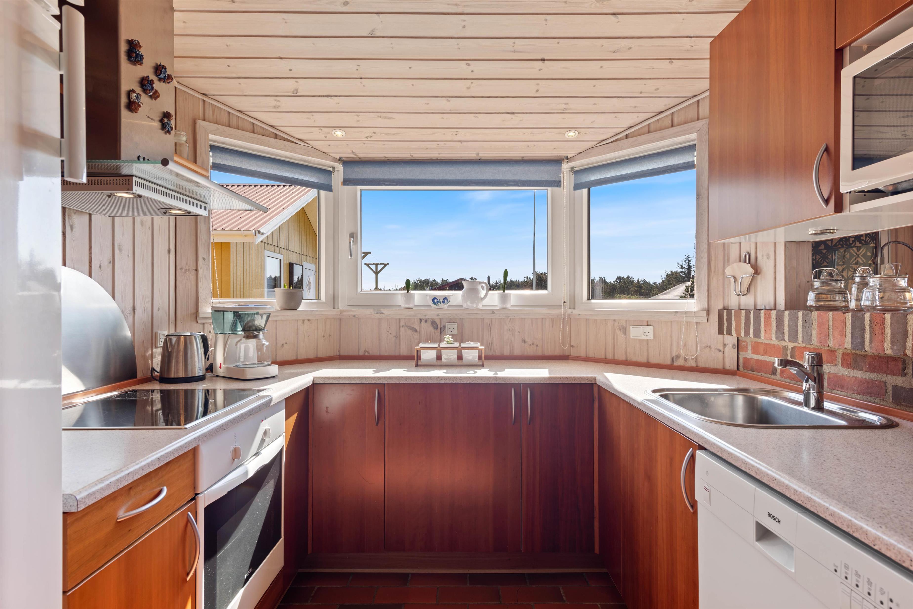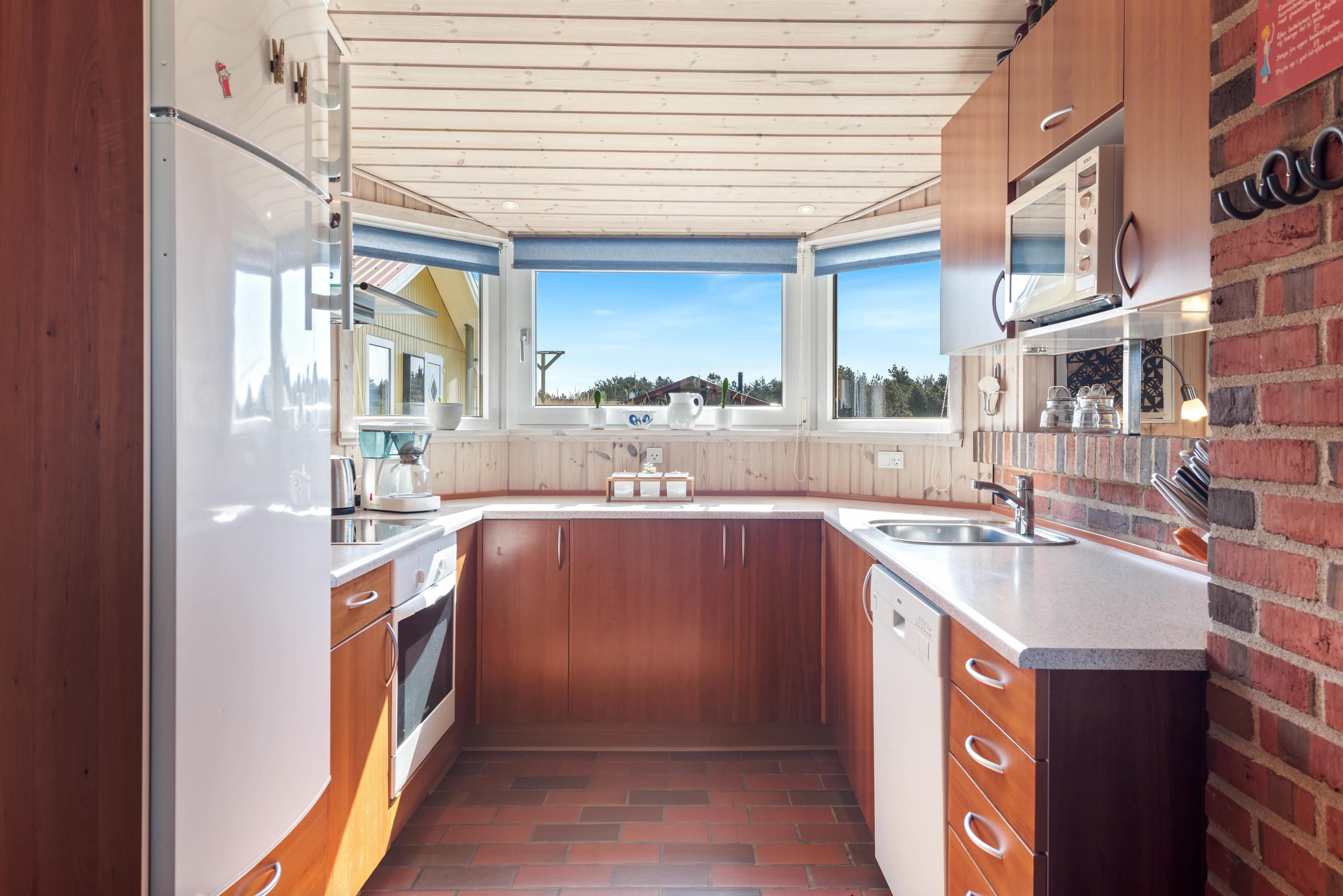 Feriehuset er helt ideelt til familien eller parret, der bare gerne vil have et pusterum fra hverdagen og slappe helt af. Feriehuset er indrettet med et fint køkken, så I sammen kan hygge Jer med madlavningen. Måske menuen står på noget ekstra lækkert i ferien? Og efter middagen overtager opvaskemaskinen opvasken, så I kan nyde en gåtur eller slappe af på terrassen.
