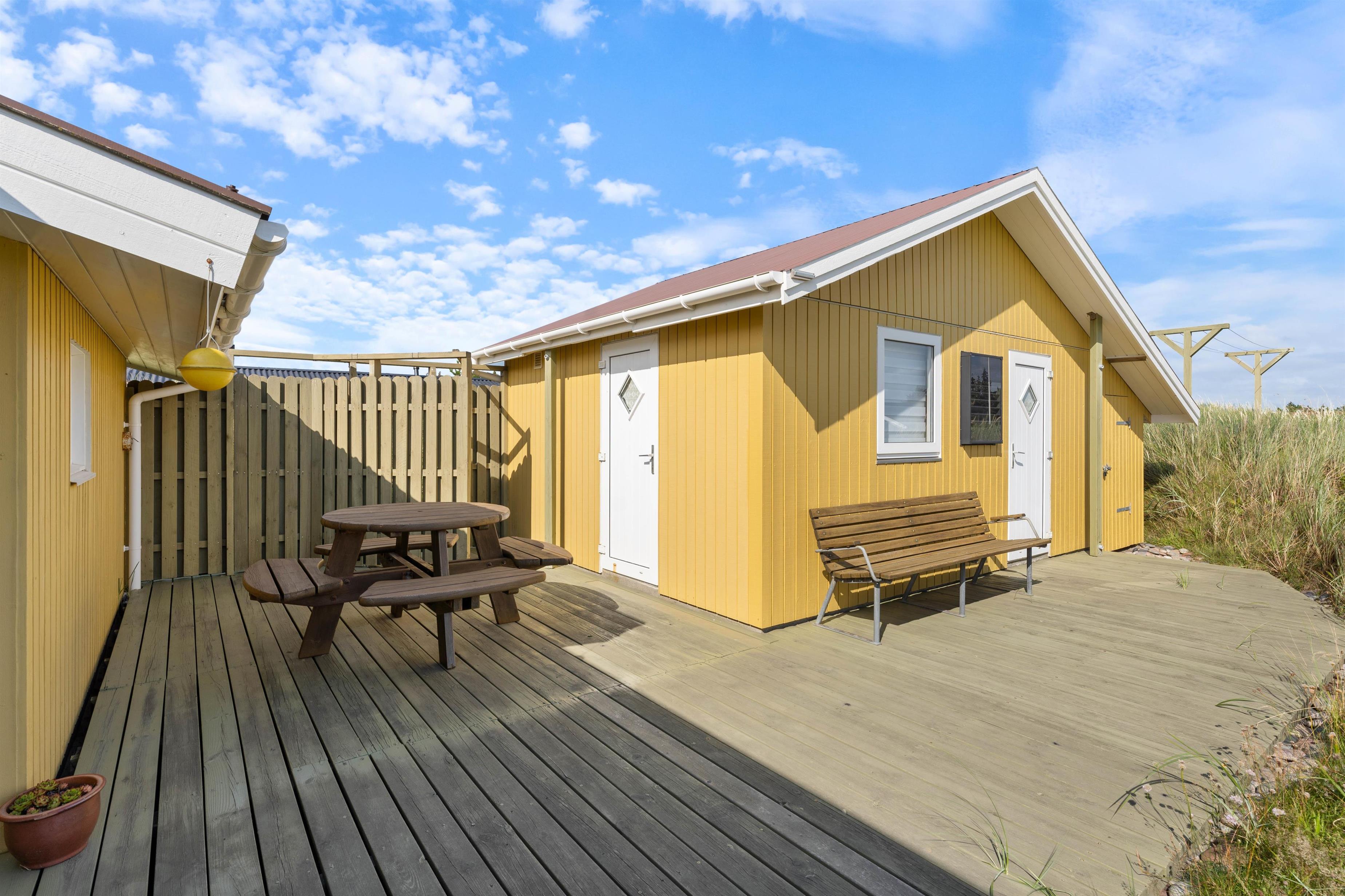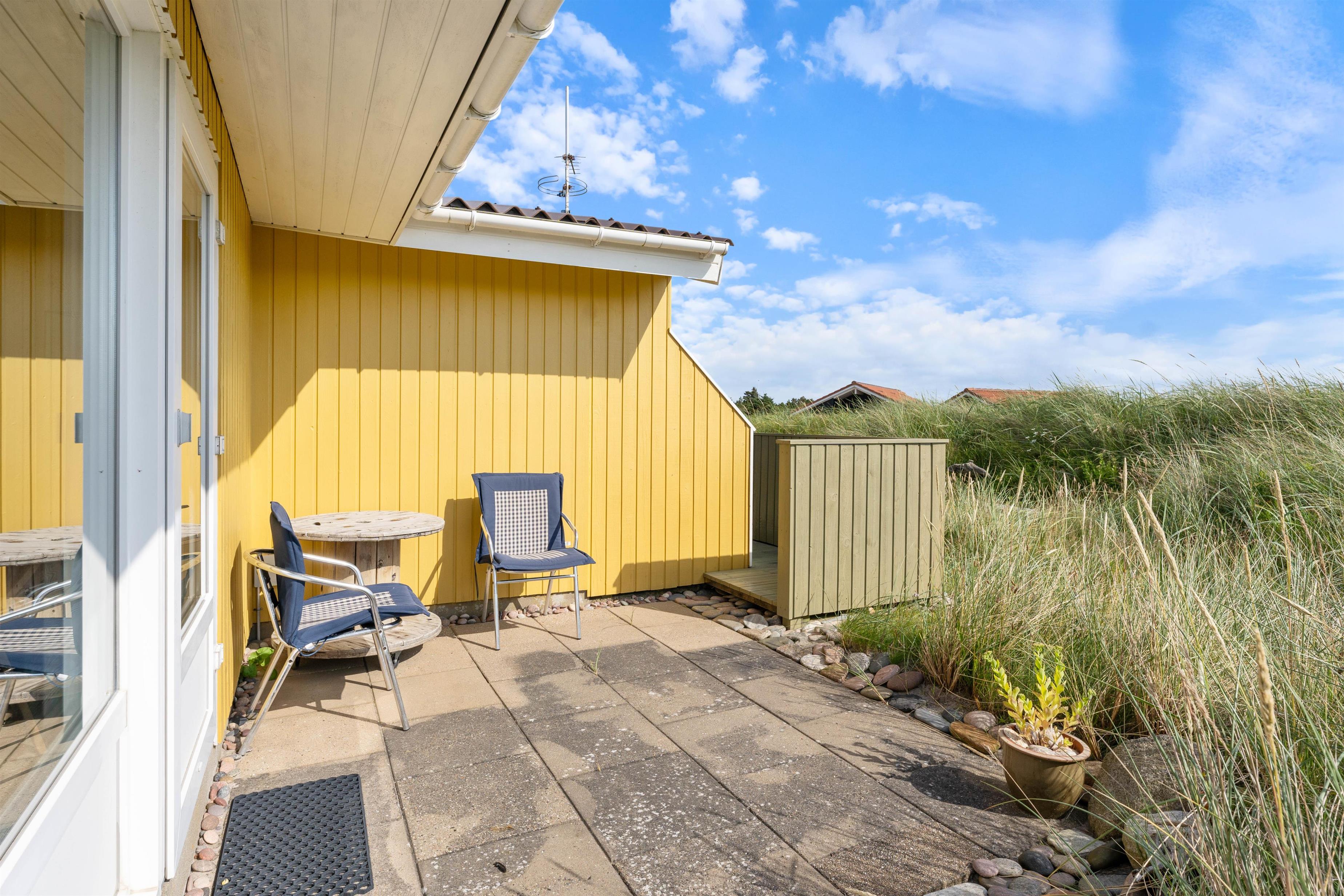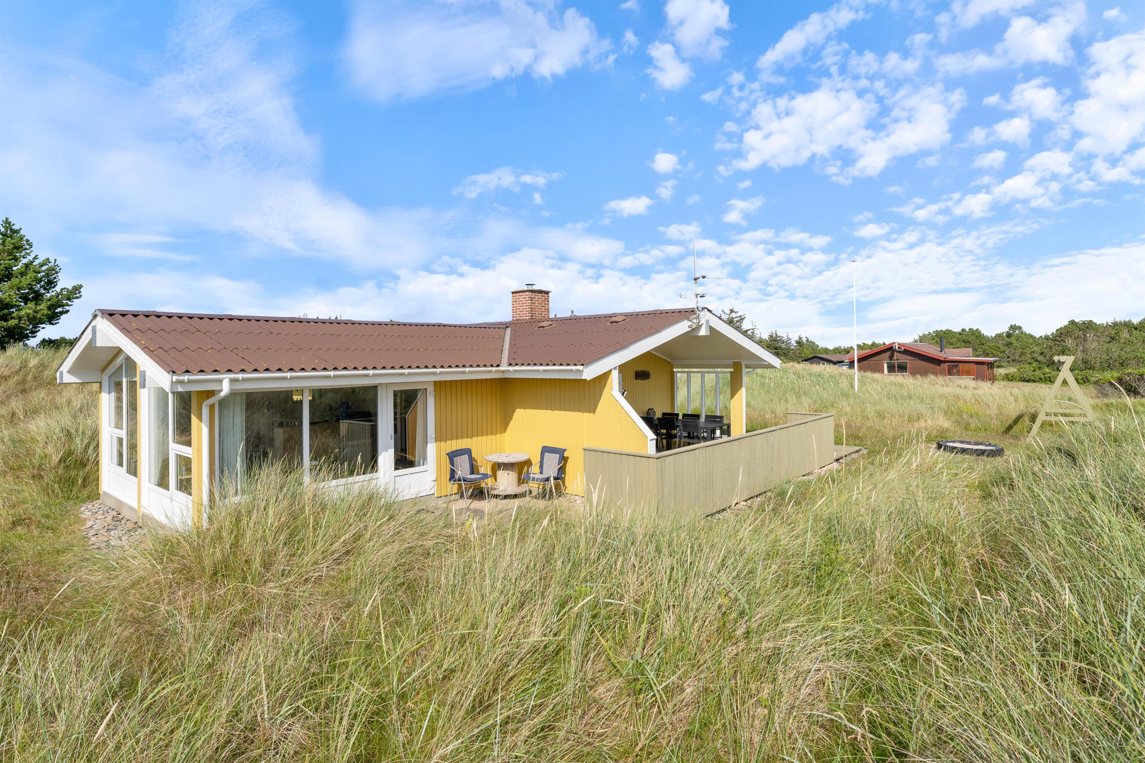 Hyggeligt feriehus, der ligger i et roligt, skønt naturområde, hvor du rigtig kan slappe af og nyde gåture til Vesterhavet. Og med den skønne udestue har du mulighed for at nyde omgivelserne hele året rundt, men på de dejlige solskinsdage vil du sikkert benytte dig af de gode terrasser.