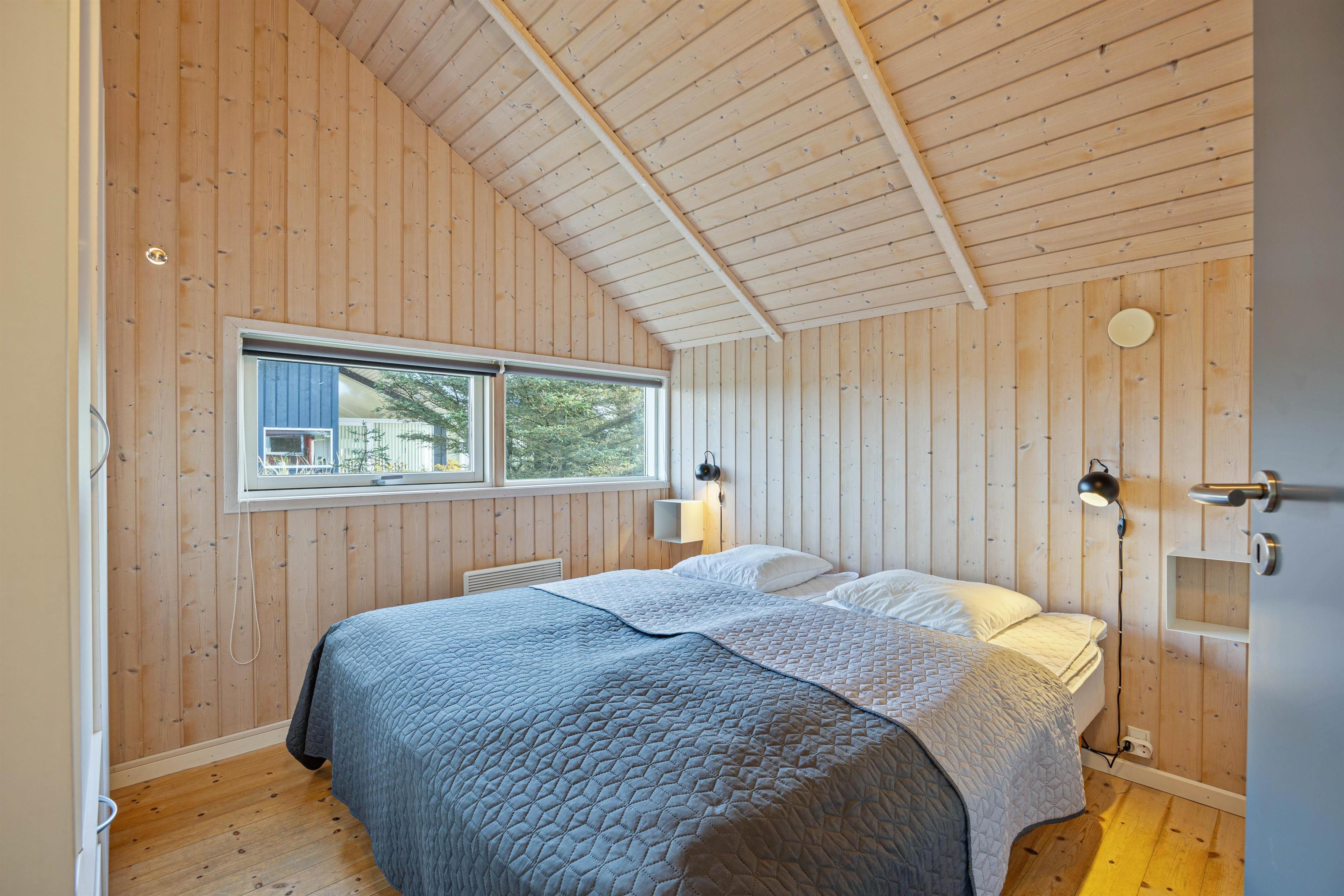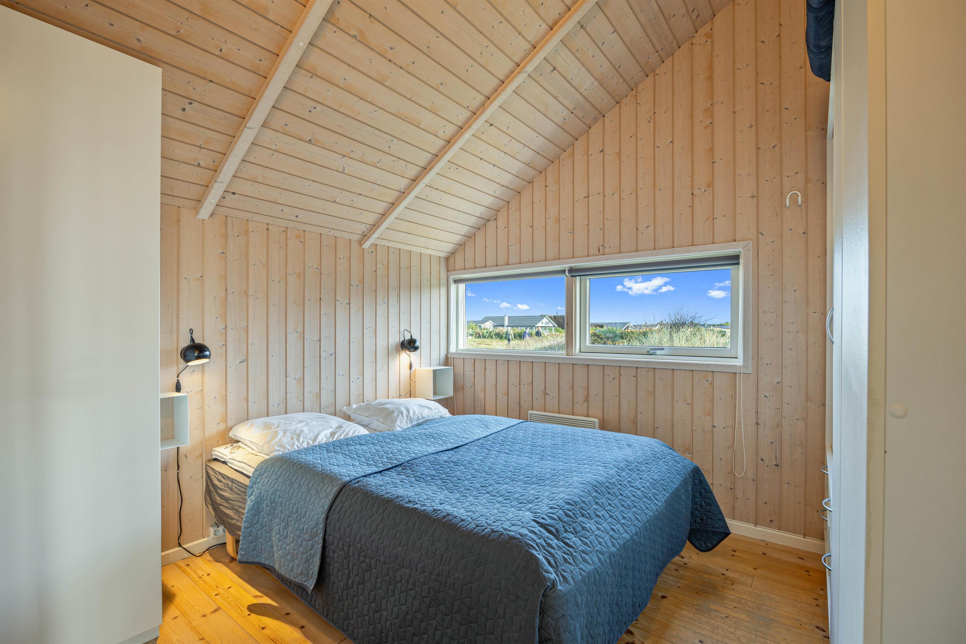 Overalt i dette feriehus er I omgivet af lyse vægge og lofter, som sammen med det strålende lysindfald og den smagfulde møblering giver en følelse af afslapning og ro. Det funktionelle køkken med en fryser og opvaskemaskine står i åben forbindelse med den hyggelige stue. I den kombinerende stue og spisestue er der plads til jer alle! Her luner brændeovnen, mens den afslappende feriestemning understreges med en god film i fjernsynet.