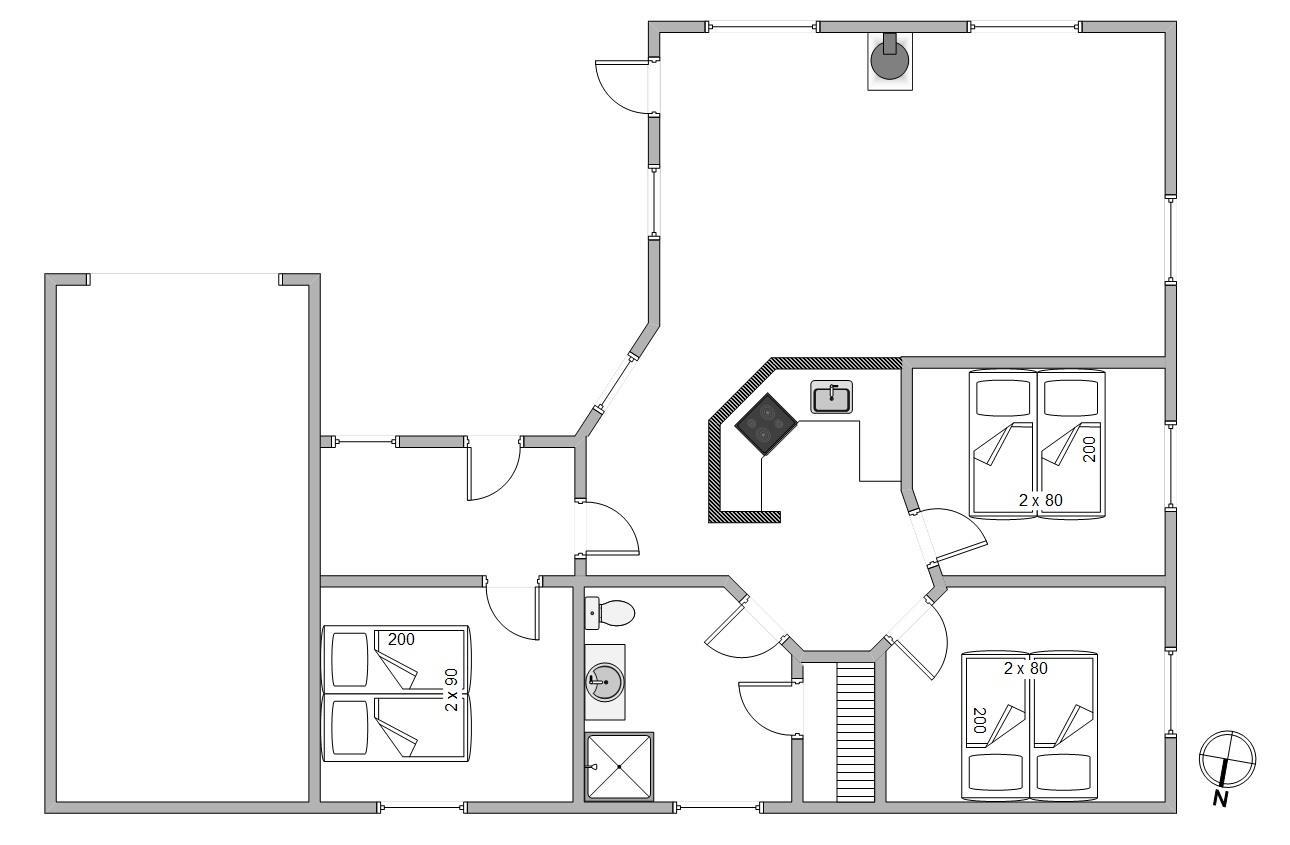 Sommerhuset har 3 fine dobbeltværelser med komfortable senge og på badeværelset er der gulvvarme og en sauna. Desuden er der en vaskemaskine, så I kan vaske tøj, hvis det bliver nødvendigt.