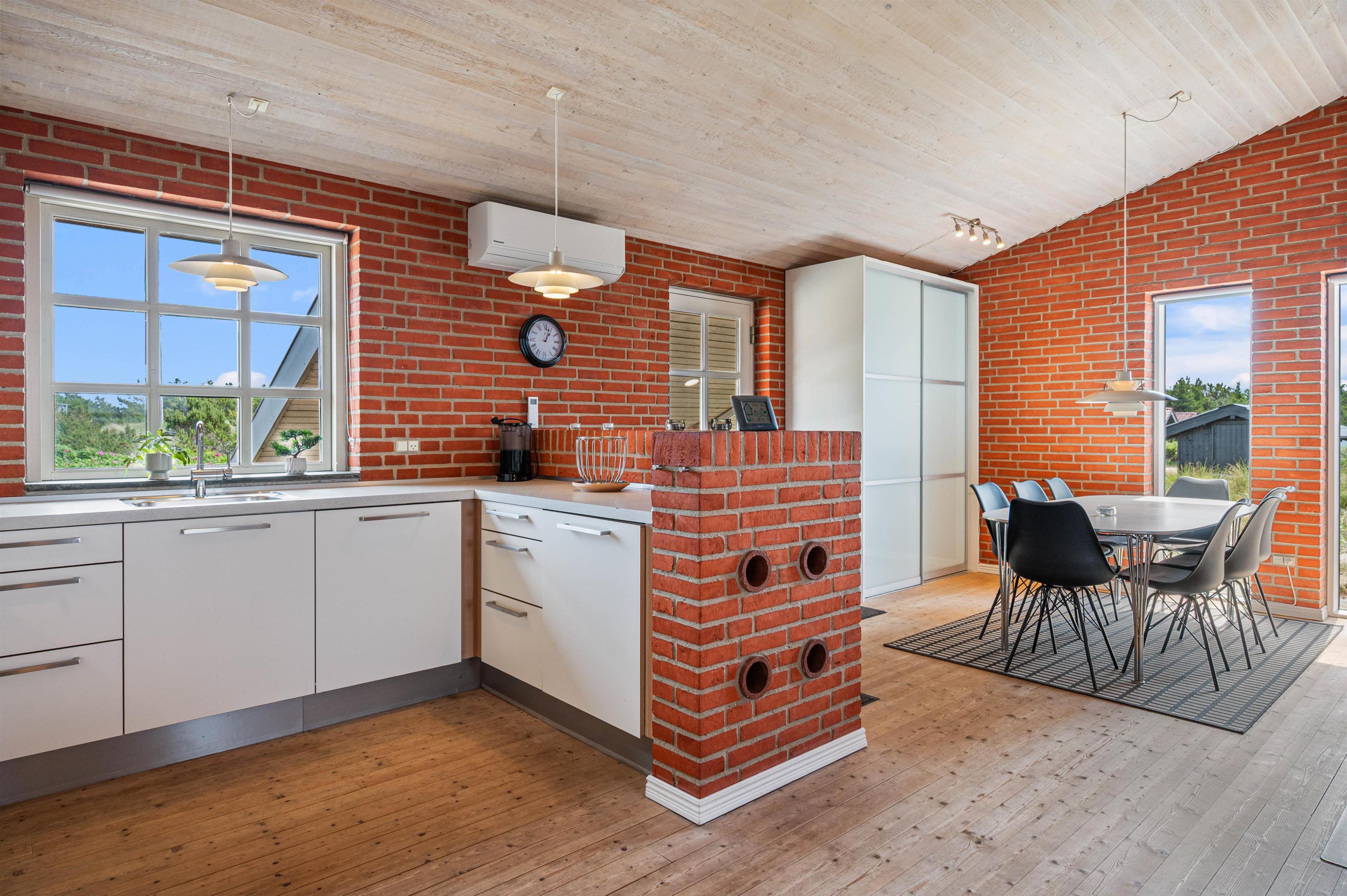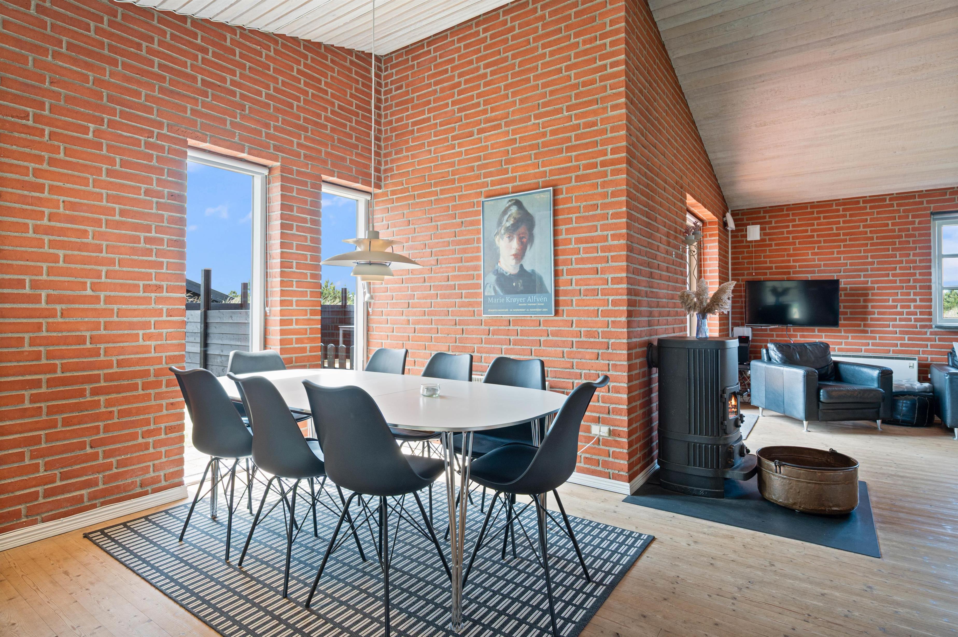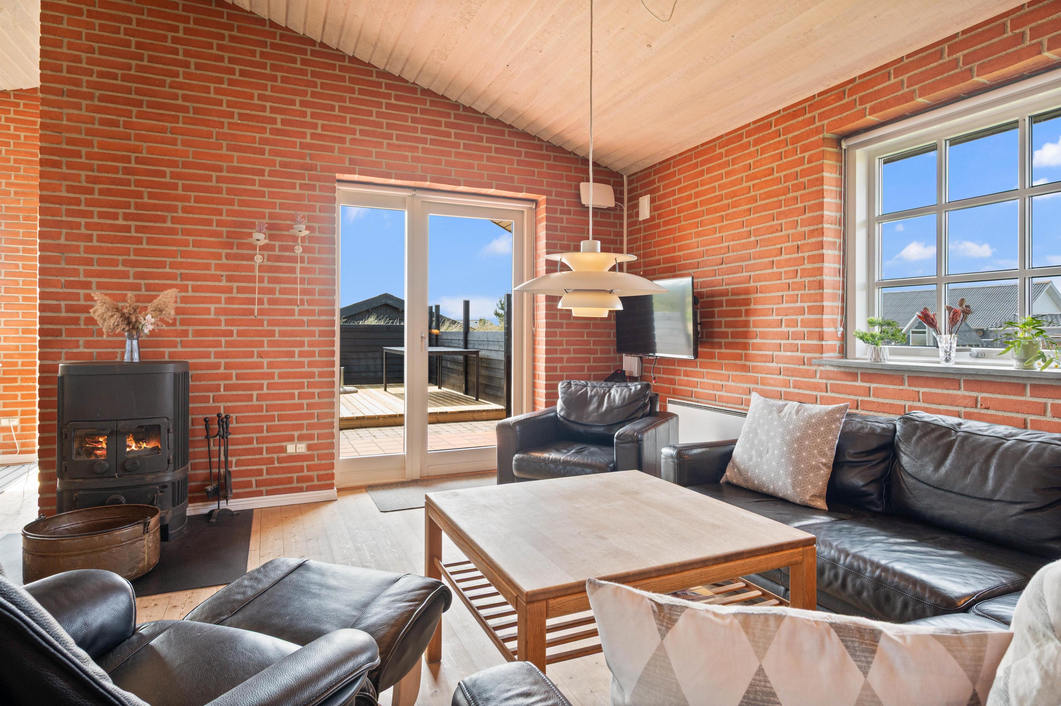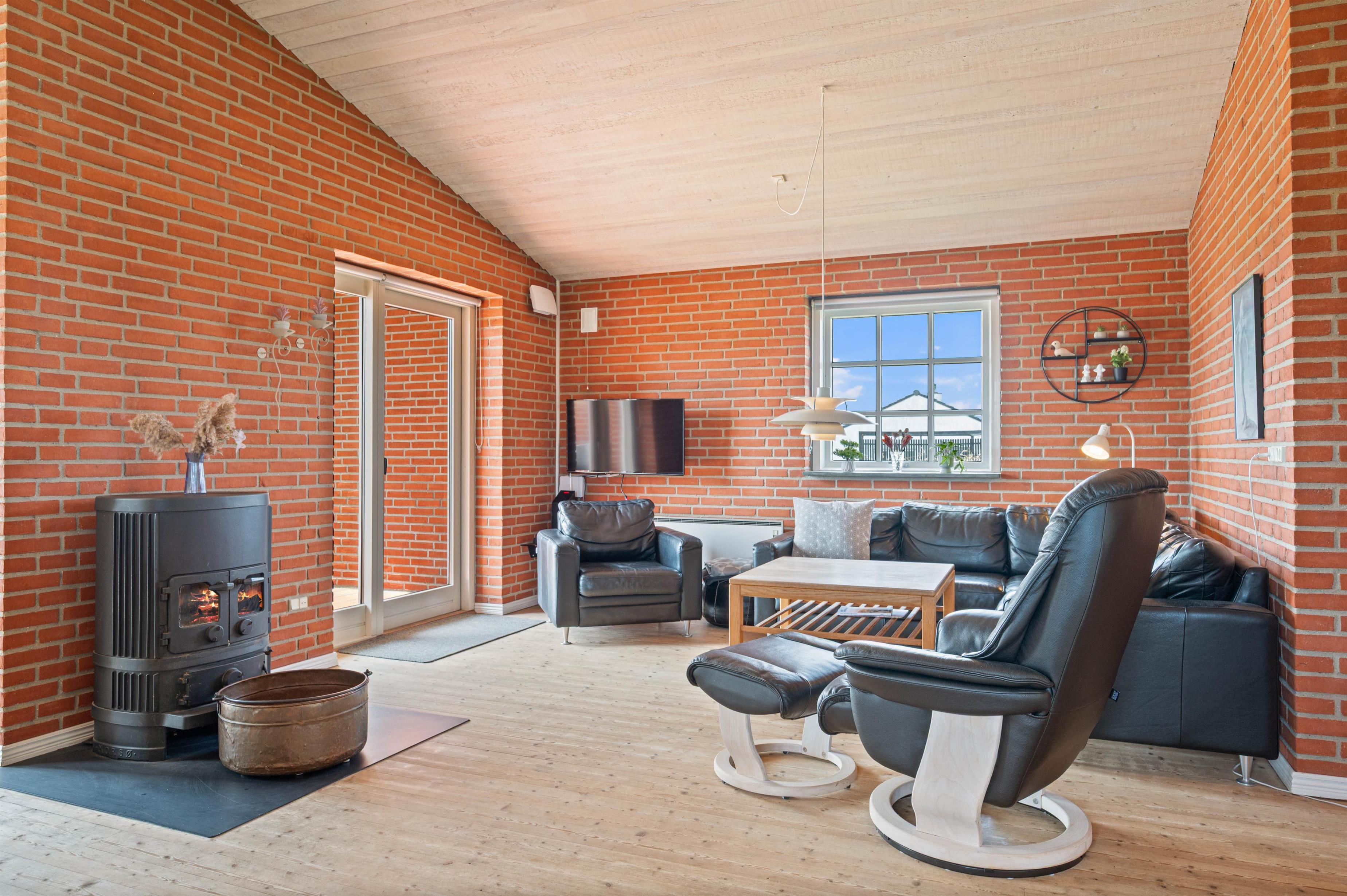 På en kølig sommeraften kan I tage et spil kort i stuen, mens brændeovnen spreder varme og sætter prikken over i’et for den rette feriestemning. Desuden er der også varmepumpe i sommerhuset.