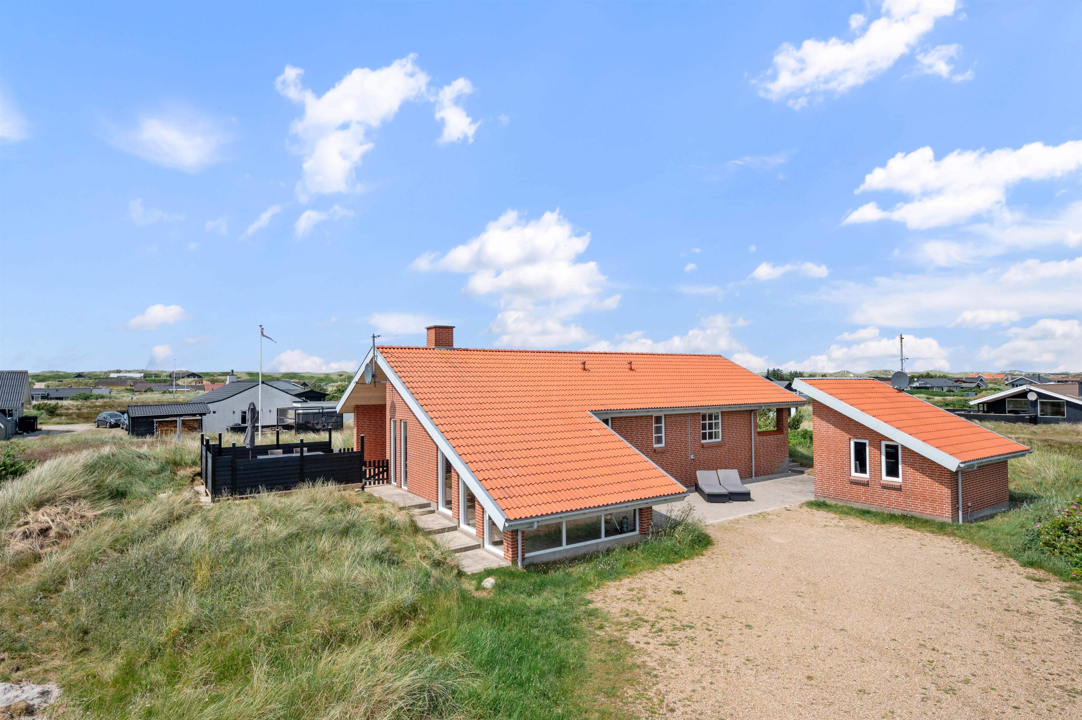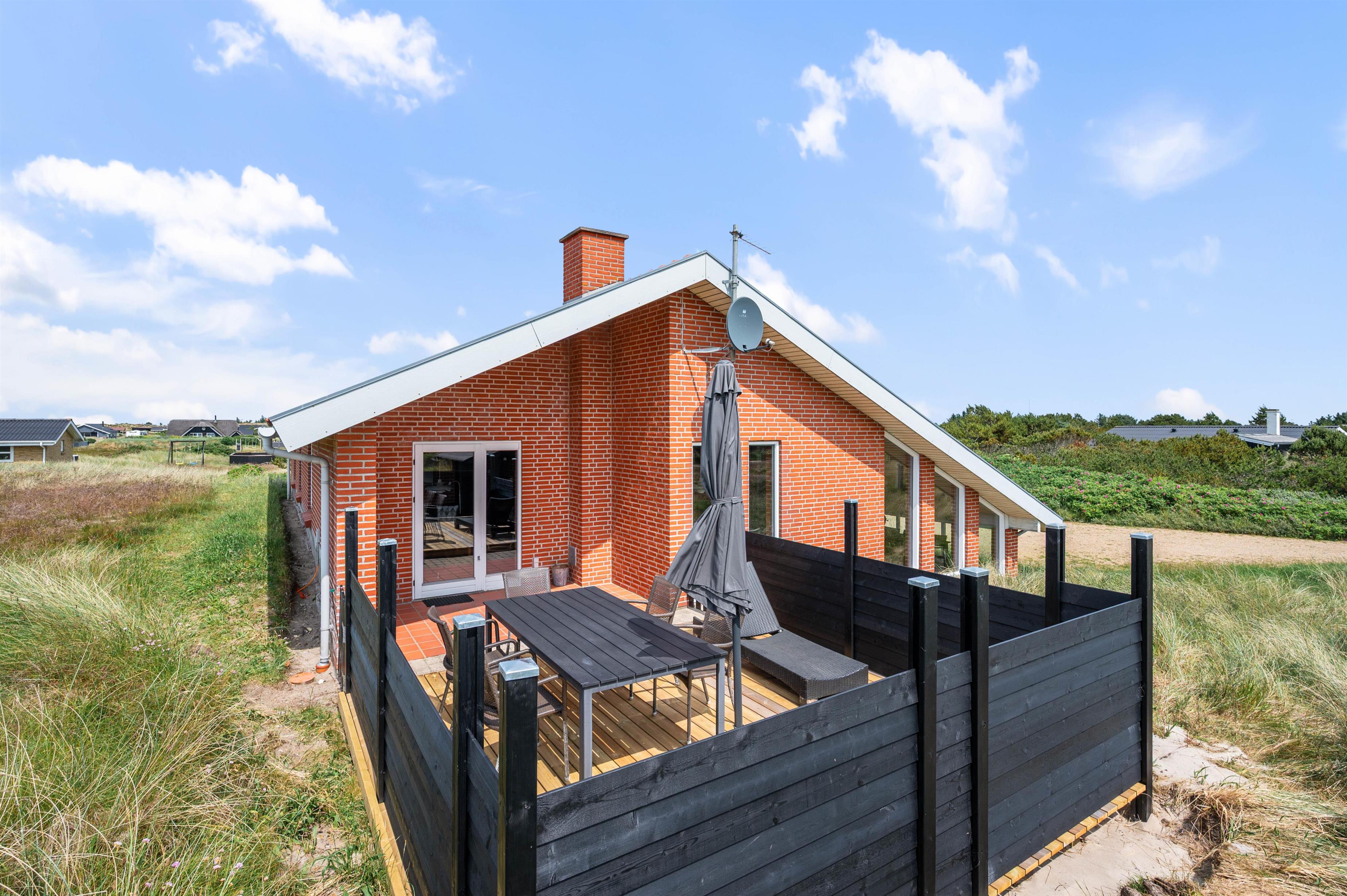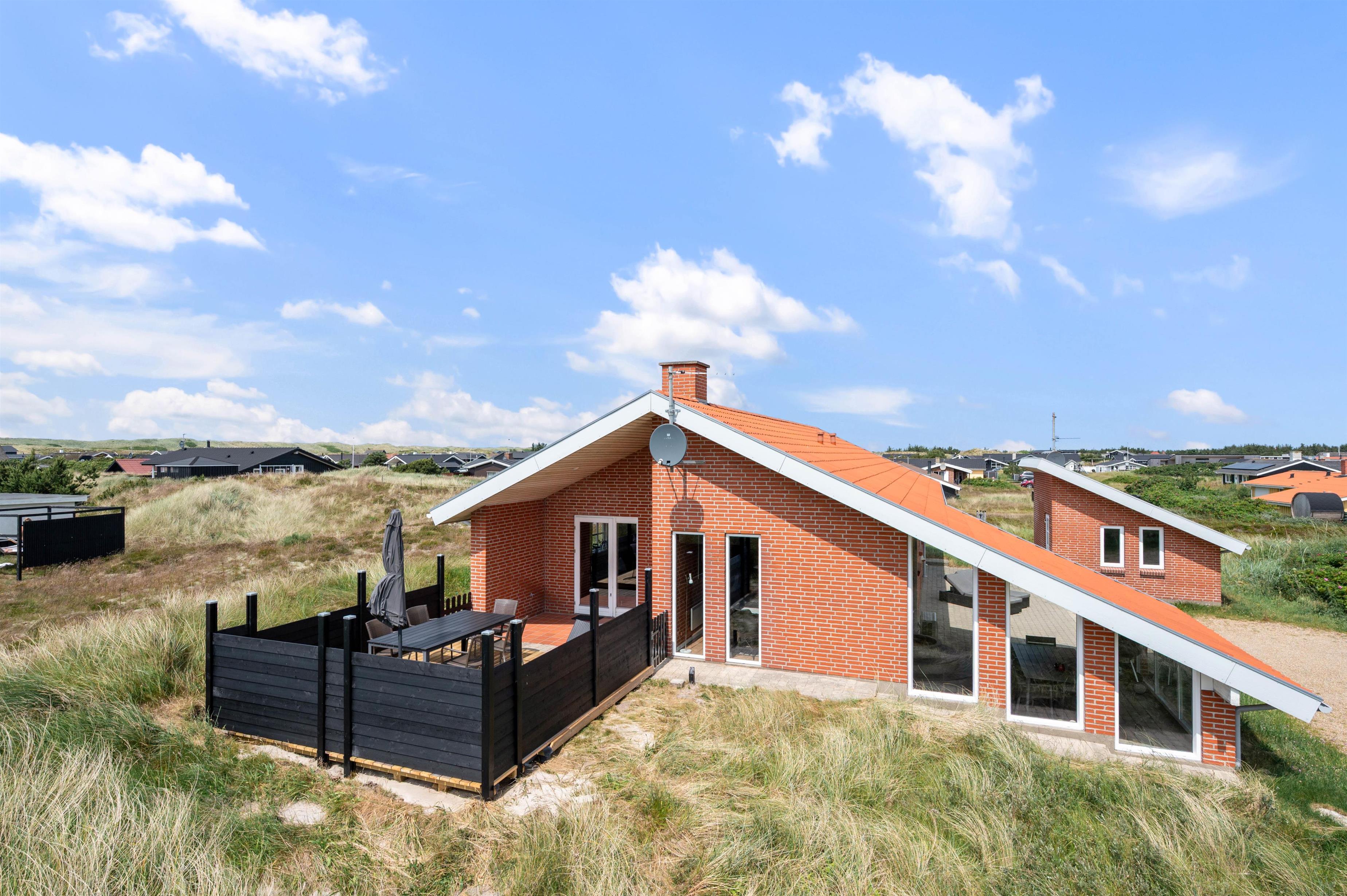 På Rauhesvej 24 i Bjerregård finder I dette skønne og smagfuldt indrettede sommerhus til 6 personer og 2 hunde. Sommerhuset danner rammerne for en dejlig ferie ved Vesterhavet, hvor hele familien kan samles til hyggelige stunder. Sommerhuset er arkitekttegnet, og her går kvalitet og naturmaterialer op i en højere enhed. Fra sommerhuset har I blot 550 meter til stranden, og efter en forfriskende tur i de blå bølger, kan I nyde varmen i saunaen.
