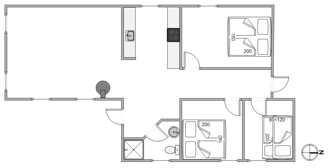 Efter en dejlig dag og aften i naturen kan I gå til ro i husets hyggelige værelser, der er møbleret med henholdsvis 2 x dobbeltsenge og en praktisk køjeseng. Morgendagens aktiviteter kan påbegyndes med en rask gåtur efter morgenbrød hos købmanden, der ligger i en gåafstand på 1000 meter.