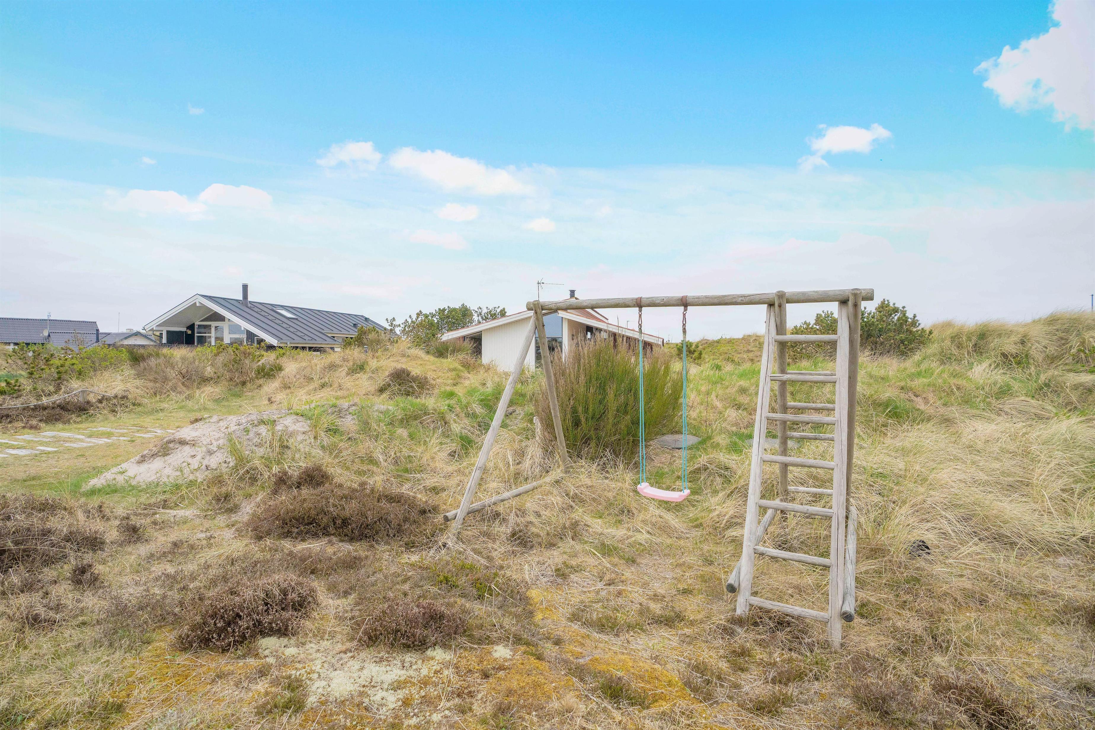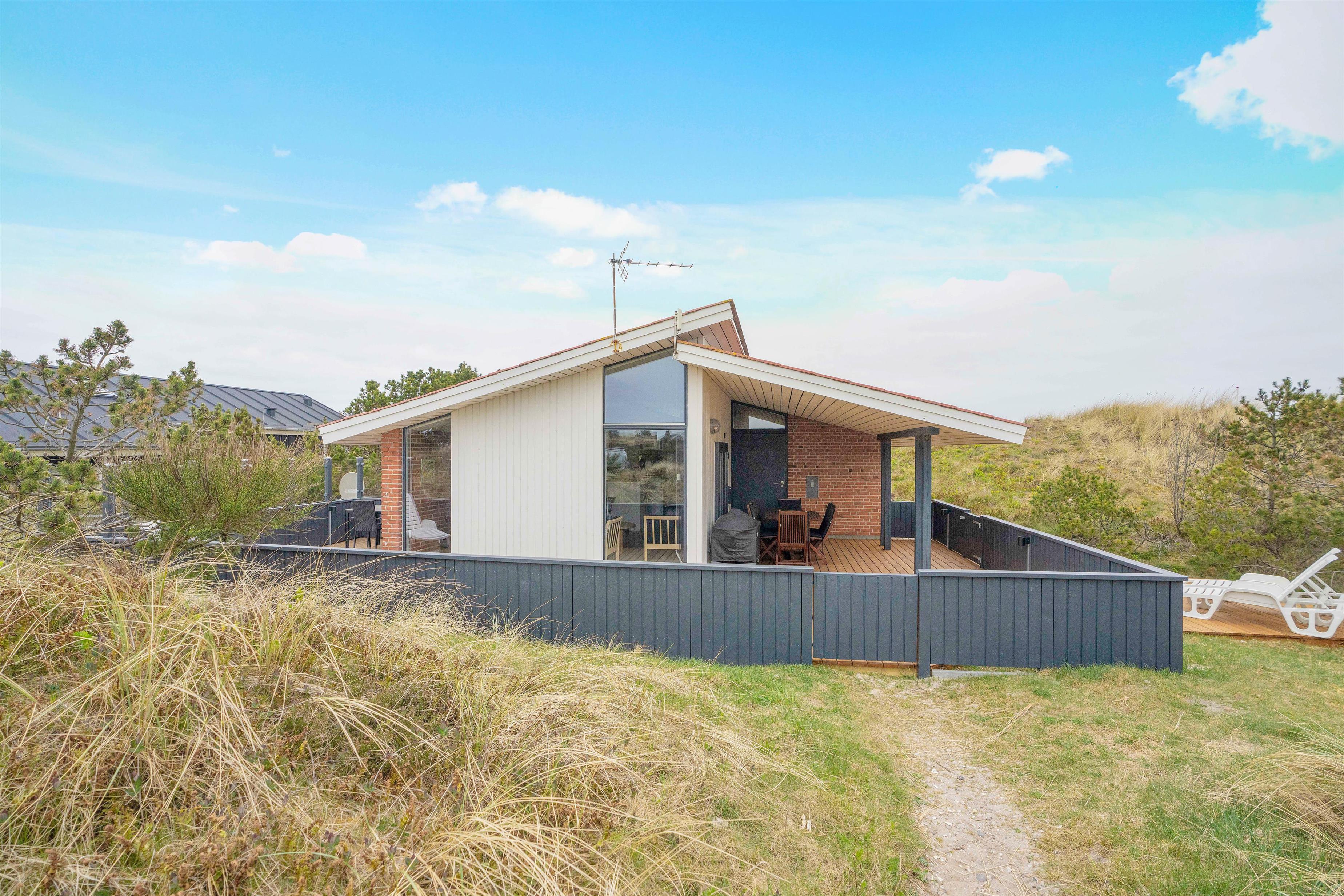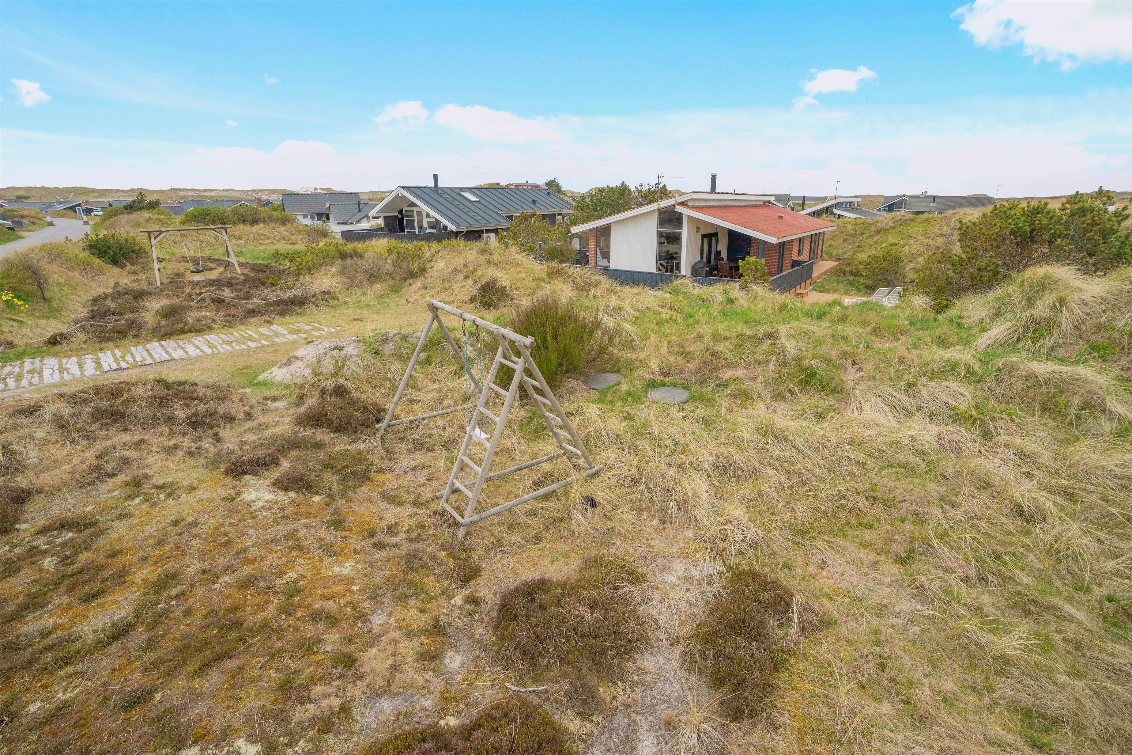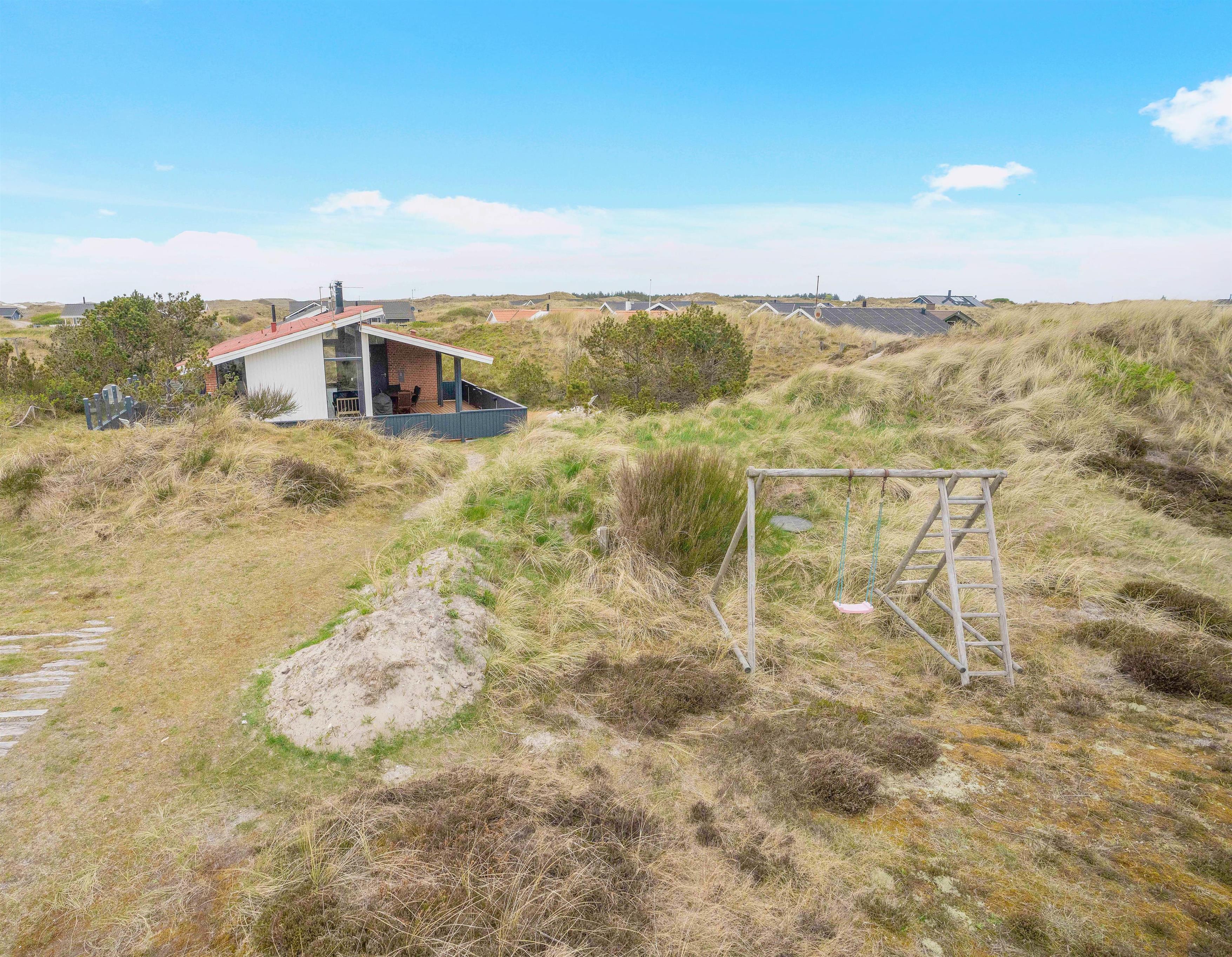 Med en naturskøn beliggenhed i klitterne finder I dette charmerende sommerhus til 6 personer. På de hyggelige terrasser omgivet af naturgrund kan I ugeneret slappe af i harmoni med naturen, mens børnene tager sig en gyngetur eller leger på de skønne terrasser.