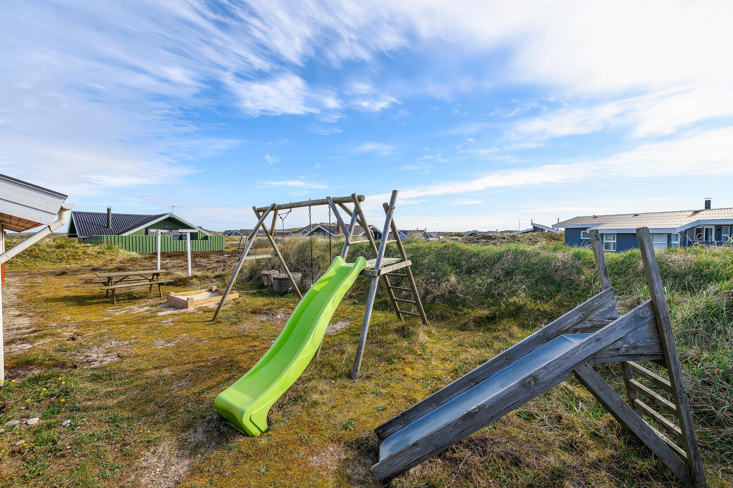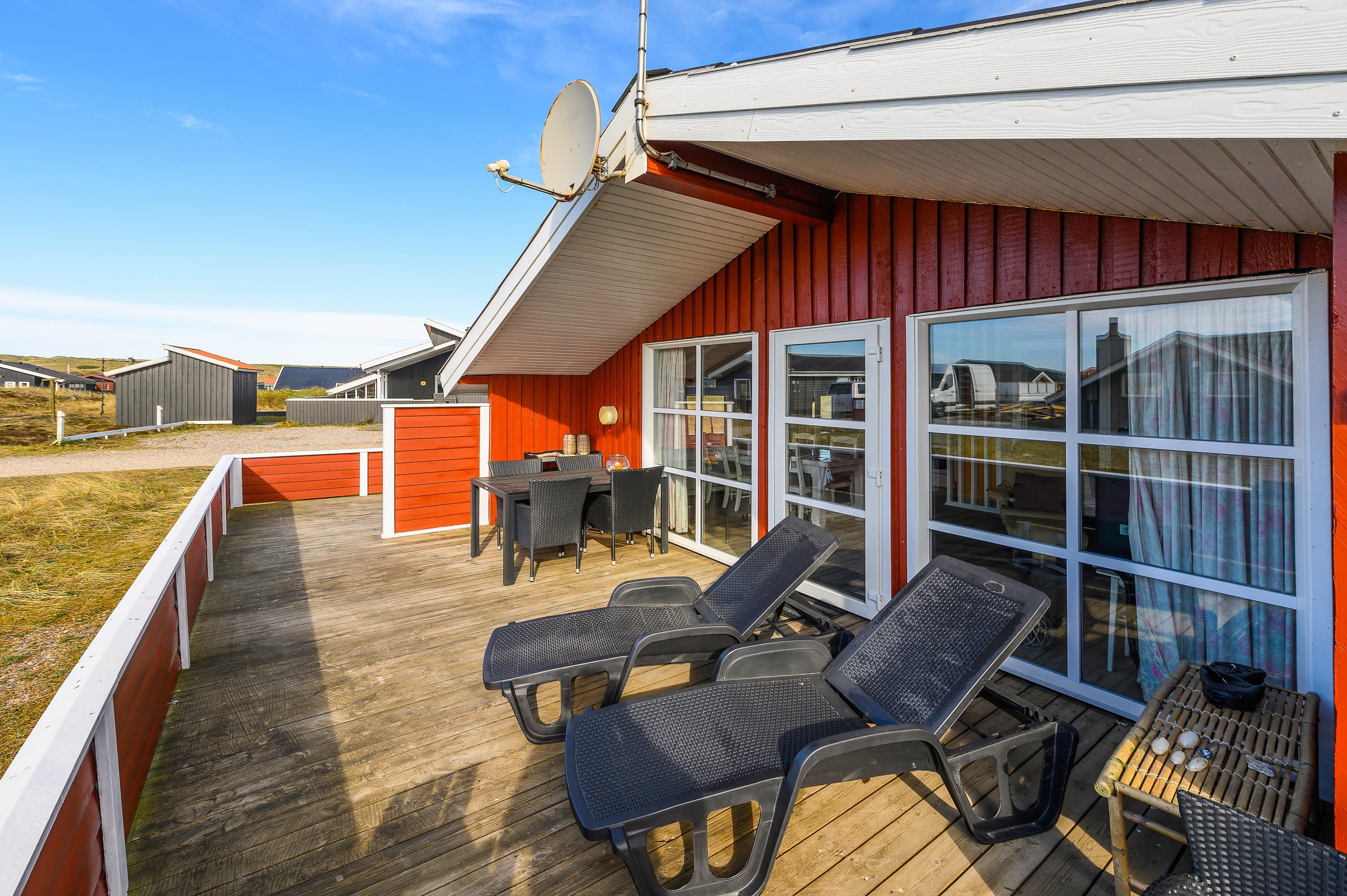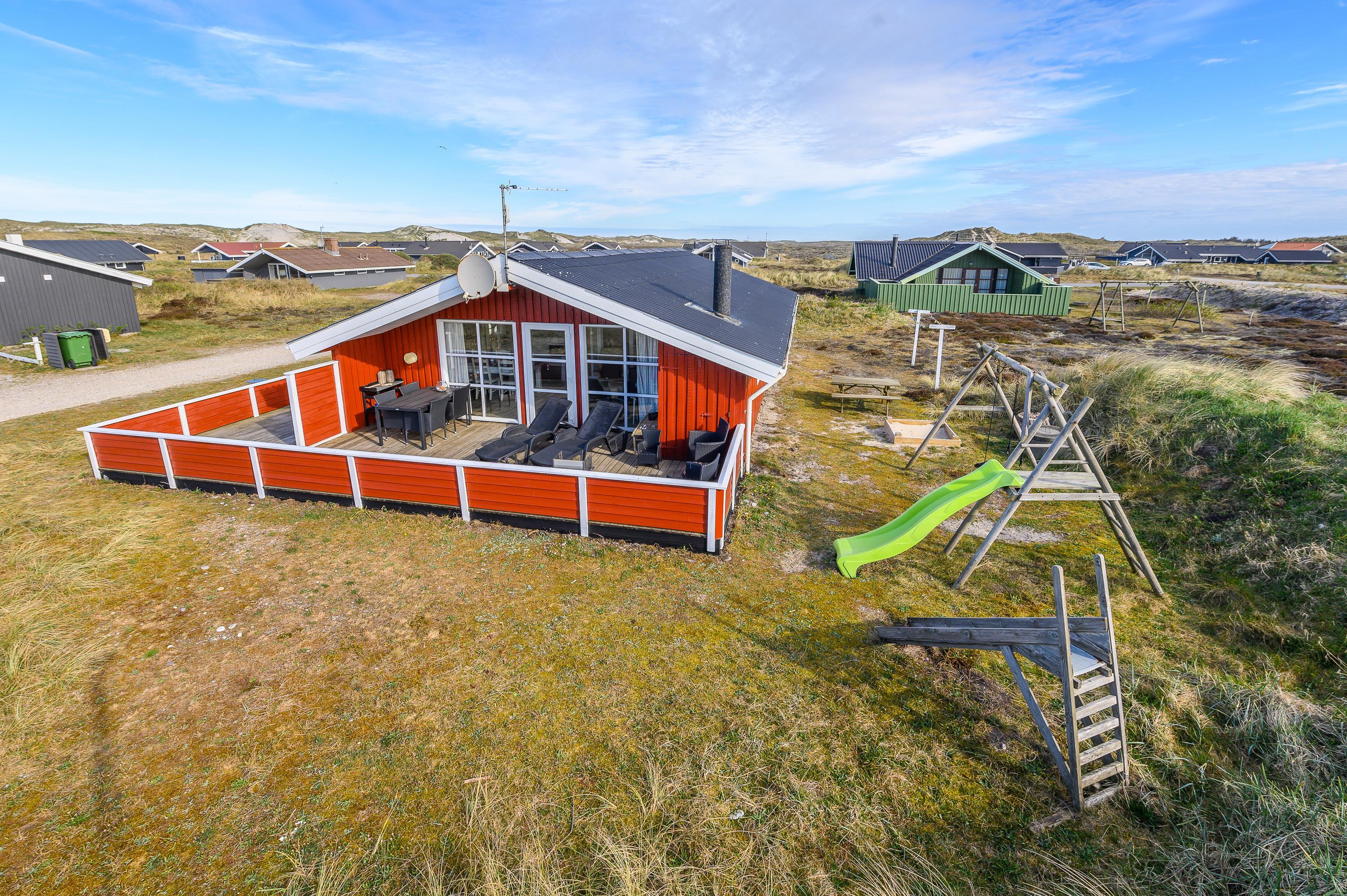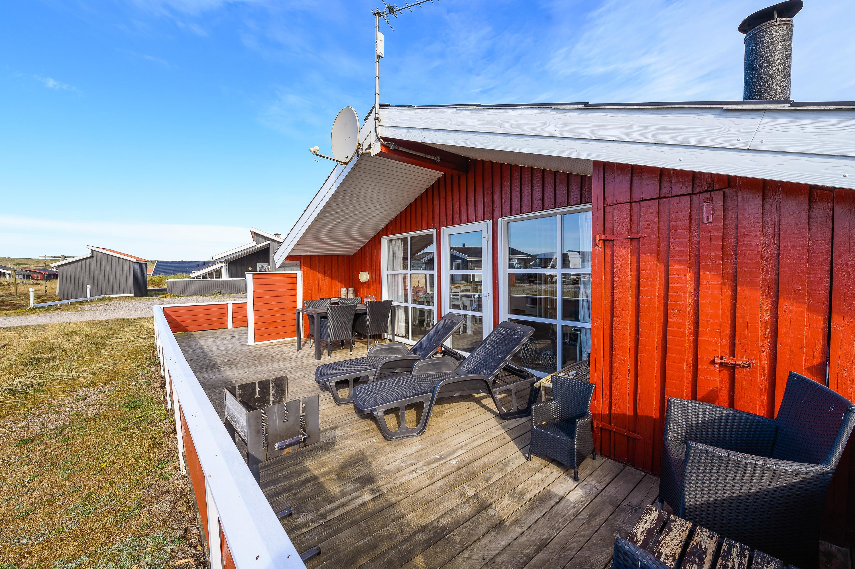Nyd ferien ved Vestkysten på den helt lukkede terrasse. Her kan maden tilberedes på sommerhusets grill, mens børnene leger på den store naturgrund med gynger og sandkasse. Sommerhuset ligger kun 250 meter fra den fine sandstrand i Bjerregård, og området byder på adskillige oplagte udflugtsmål til f.eks. fiskerbyen Hvide Sande, badebyen Søndervig eller den gamle, hyggelige købstad Ringkøbing.