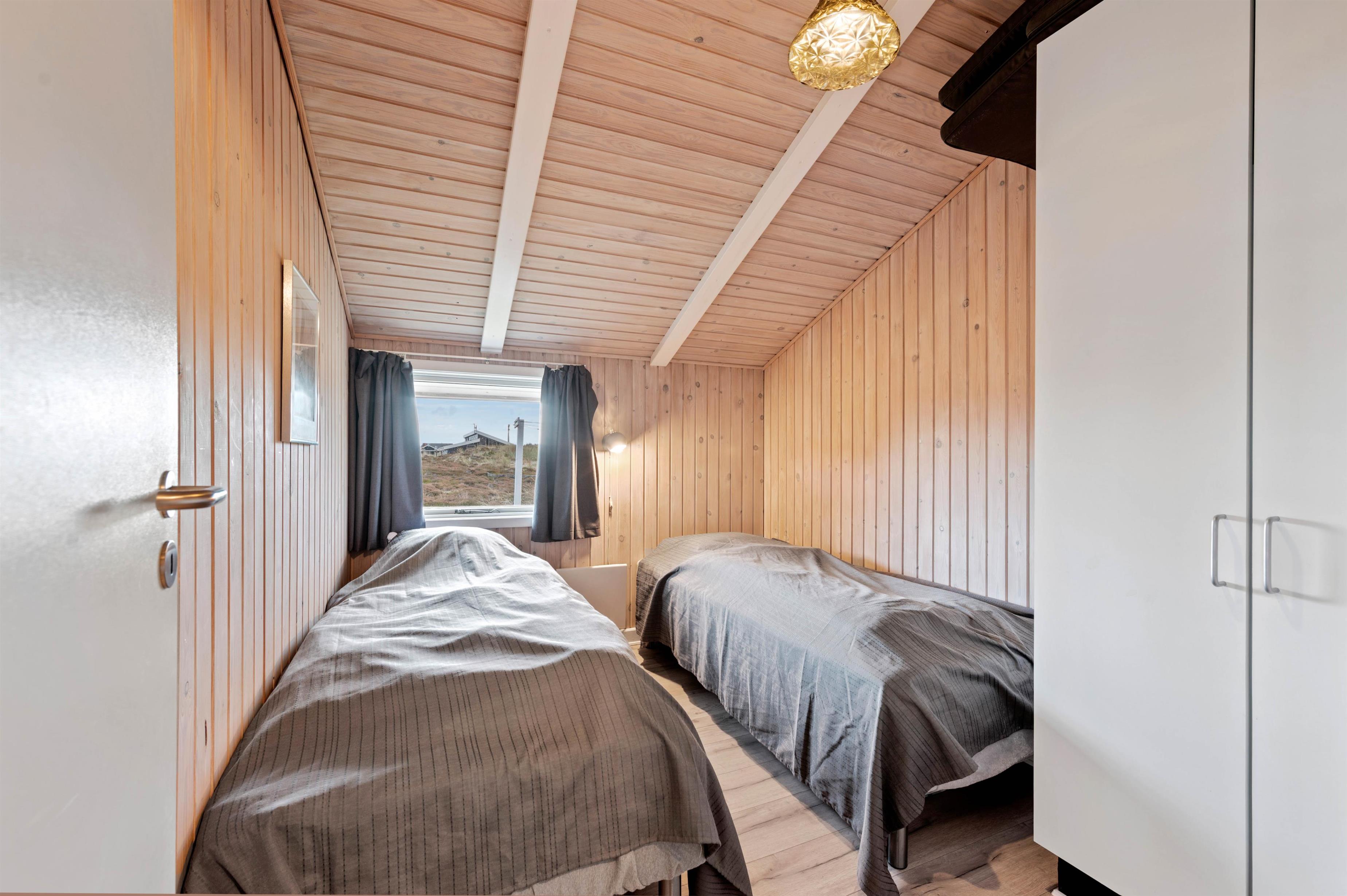 Sommerhusets 6 sovepladser er fordelt på 3 soveværelser. 2 af værelserne er indrettet med dobbeltsenge, mens det tredje værelse har 2 enkeltsenge. Medbringer I hund, er den naturligvis også velkommen i feriehuset på Bjerregårdsvej 432.