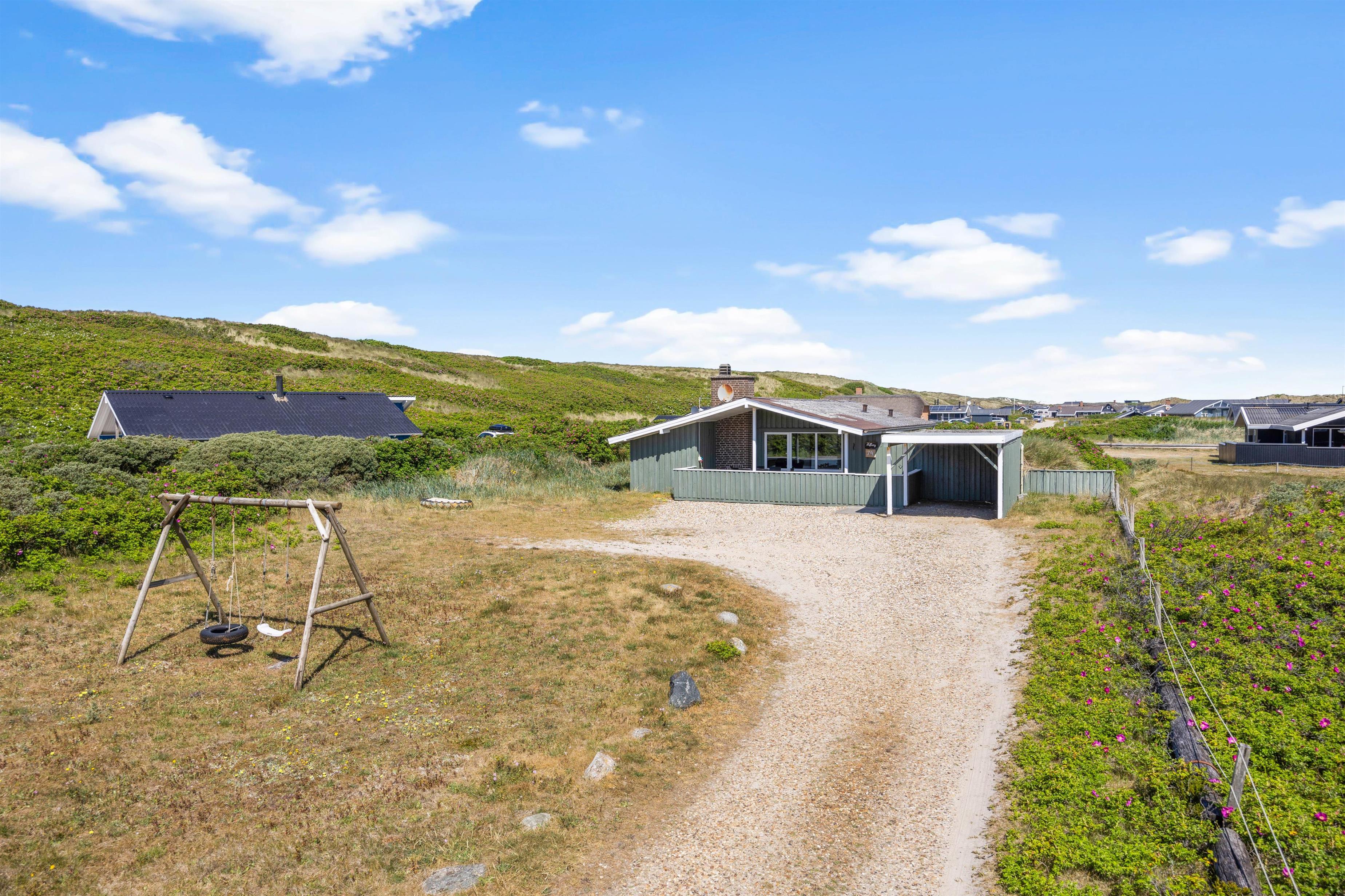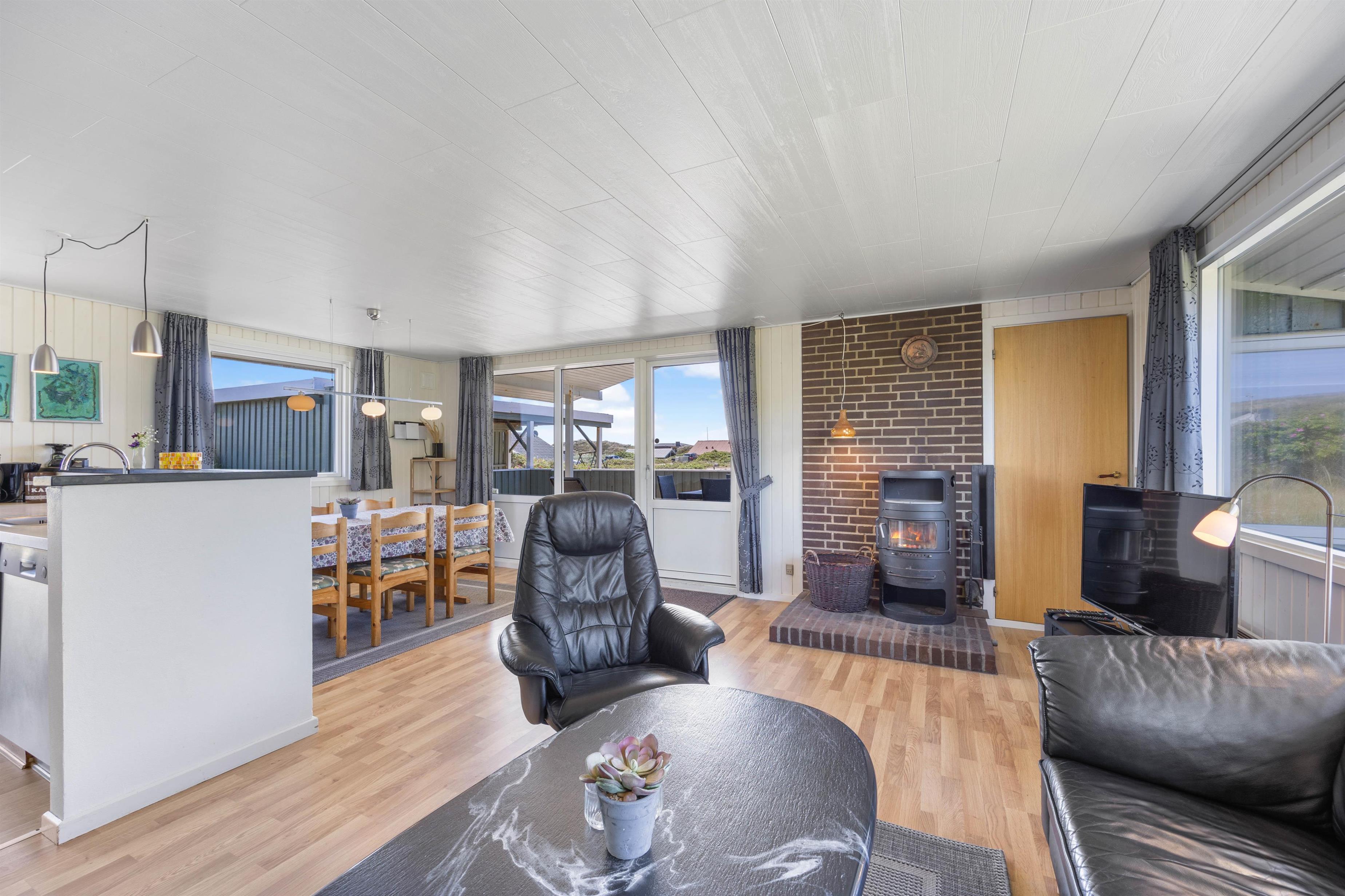 På Rauhesvej 74 finder I dette hyggelige sommerhus med en fantastisk beliggenhed i yderste klitrække. Herfra er der blot 50 meter til Vesterhavet og den fine sandstrand, som indbyder til lange gåture med fødderne i vandet. Dette 2-stjernede feriehus til 4 personer har 2 terrasser, hvoraf den ene er lukket og udstyret med en udendørspejs. Jeres hunde er desuden hjertelig velkomne i feriehuset.
