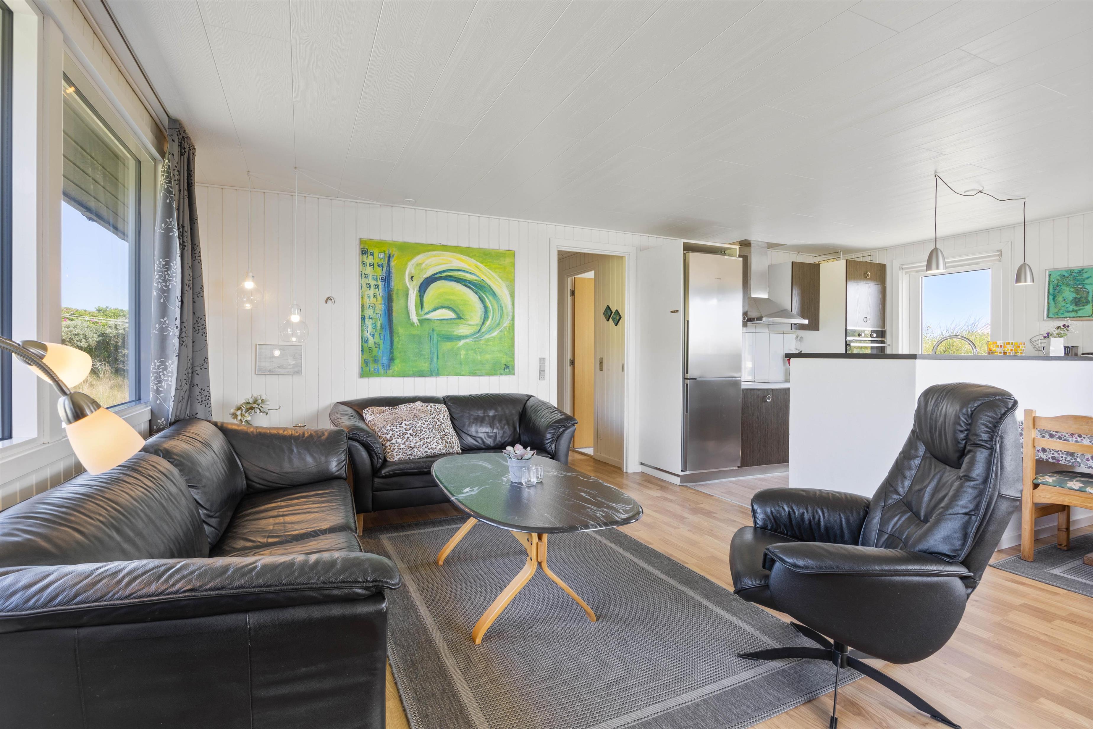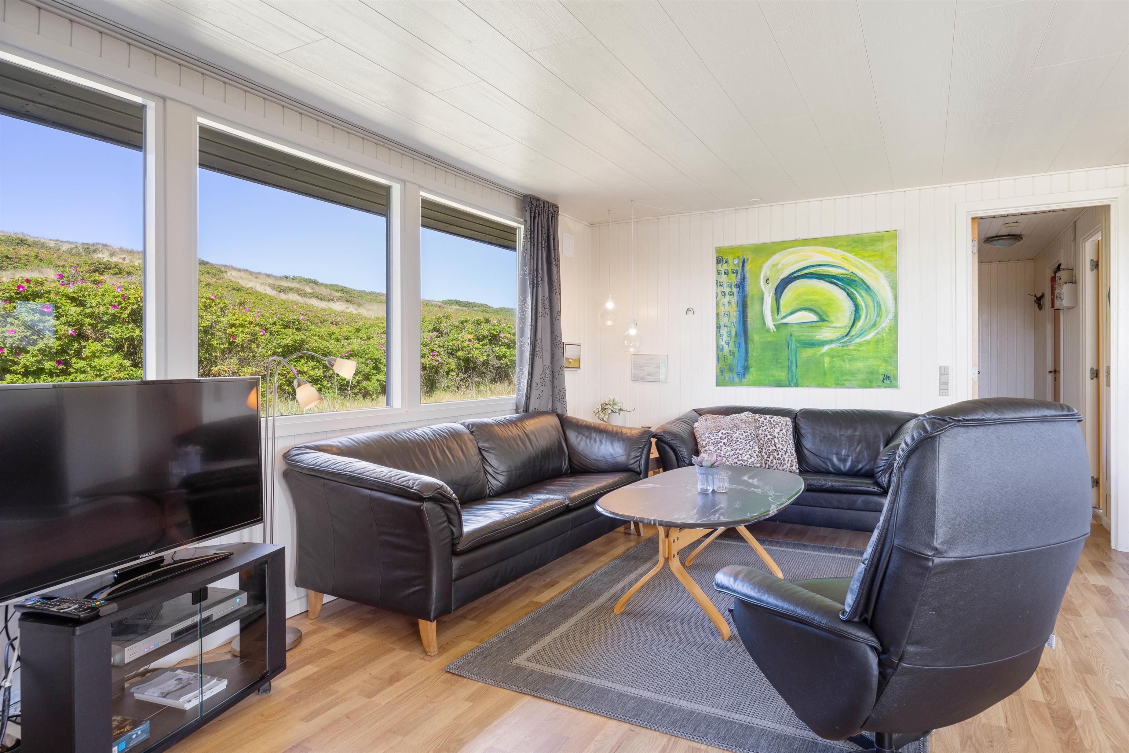 Sommerhuset har den bedst tænkelige beliggenhed i sidste klitrække kun 50 meter fra Vesterhavet og den dejlige sandstrand – Det perfekte udgangspunkt for en afslappende ferie og med den smukke vestjyske natur lige uden for døren.