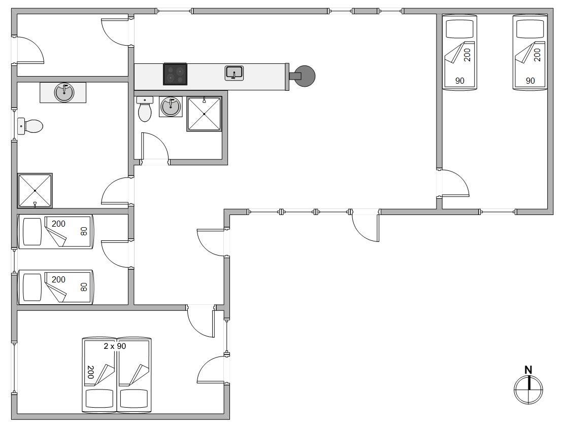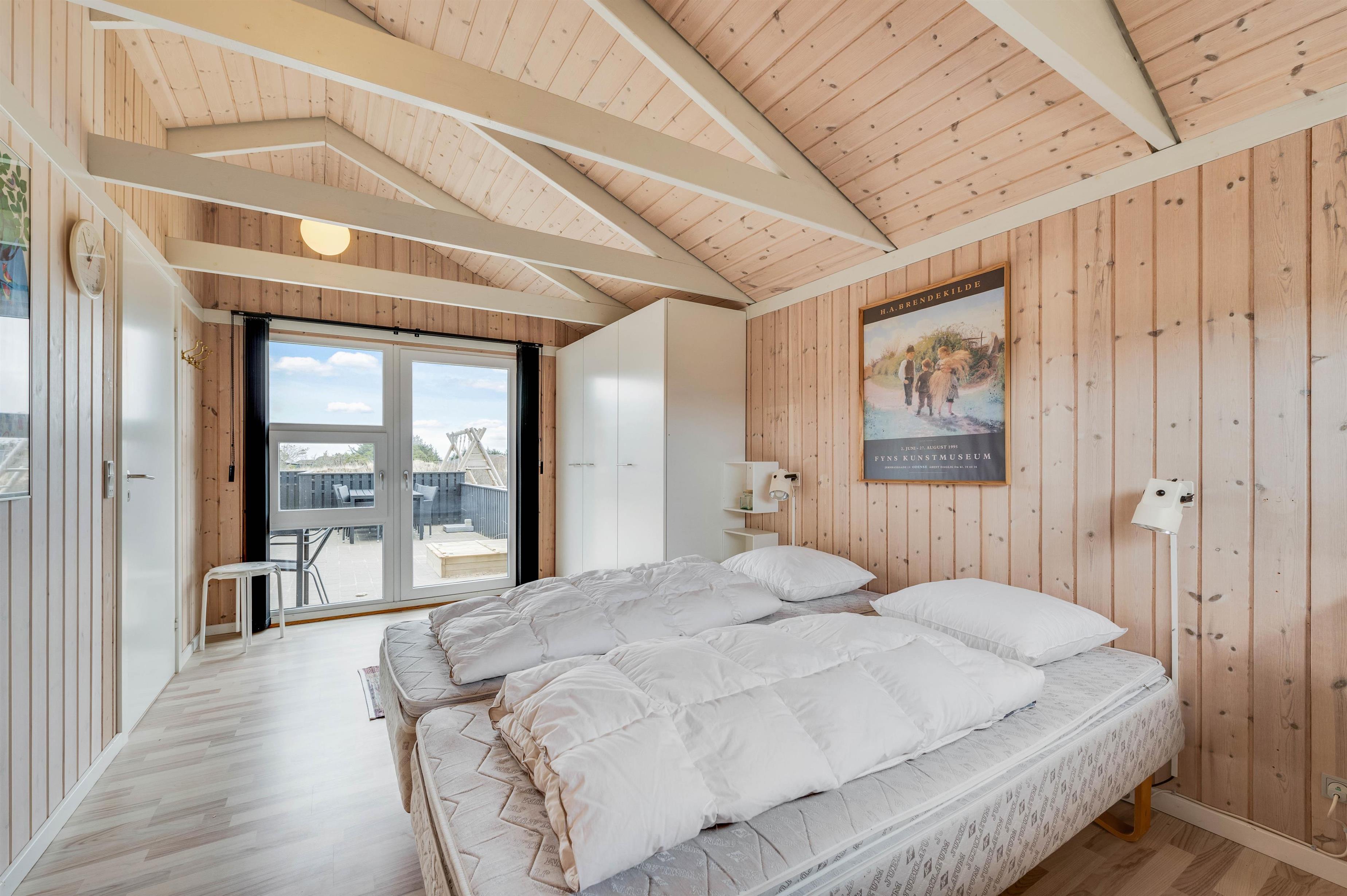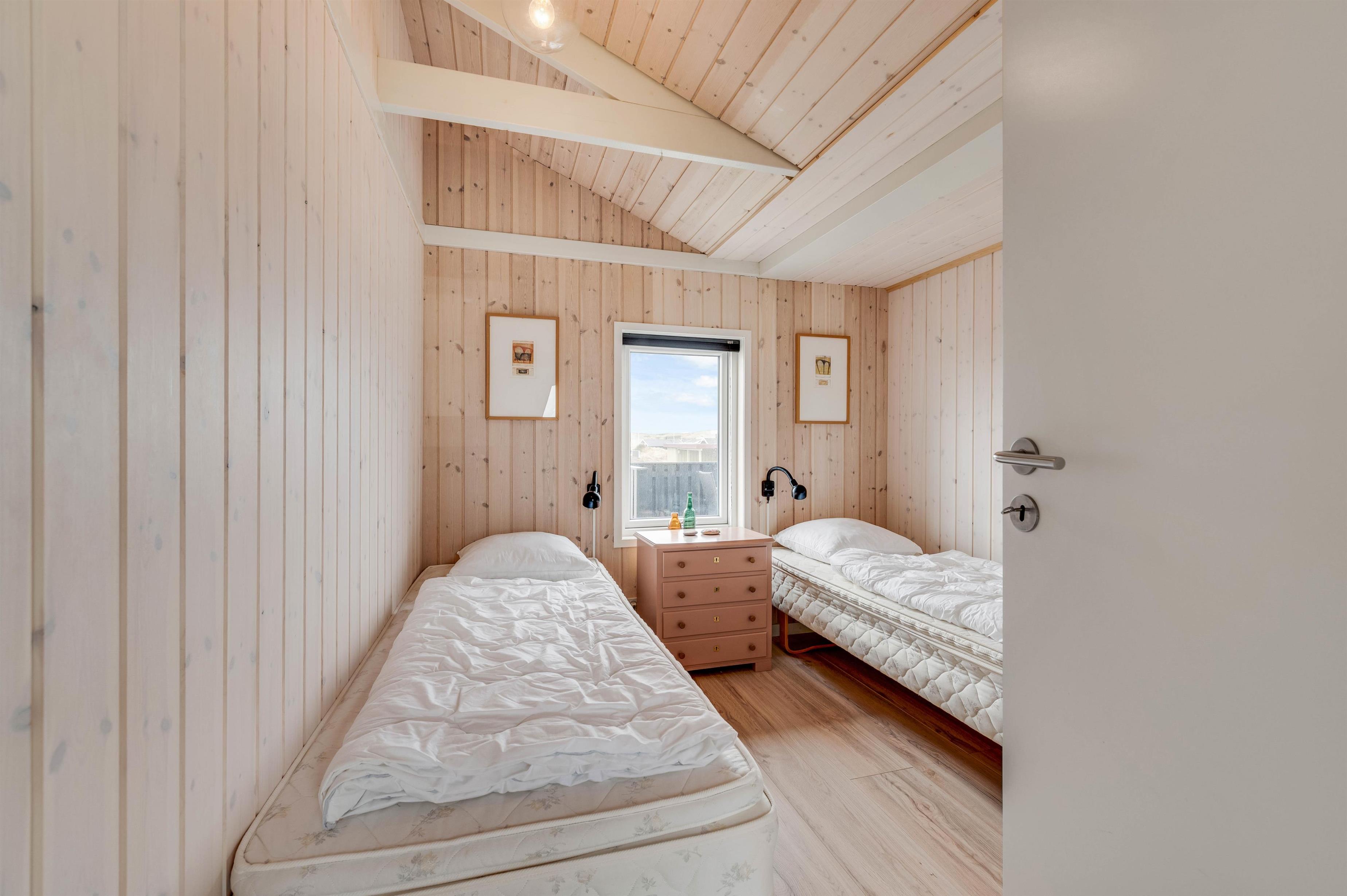 Feriehusets 6 sovepladser fordeler sig på 3 rummelige værelser, hvoraf det ene er indrettet med en dobbeltseng. På de sidste 2 soveværelser er der komfortable enkeltsenge, hvor der kan samles fornyet energi til morgendagens aktiviteter.