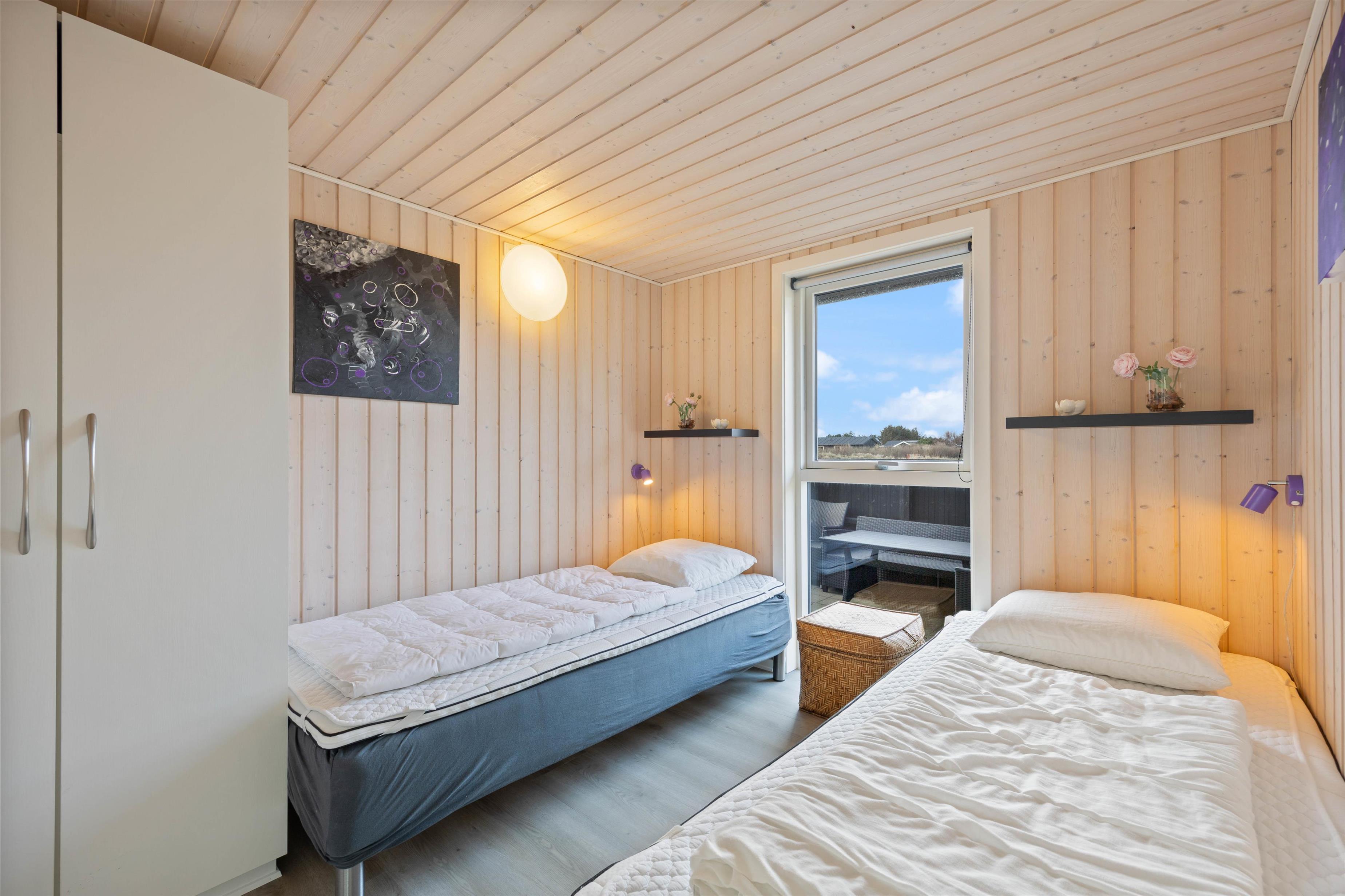 I forbindelse med det store badeværelse kan du få wellness i sauna og spabad, hvor du kan lade kroppen blive varmet godt igennem og bare slappe helt af – perfekt efter en tur ved stranden. Tag dig bare god tid – der er et badeværelse mere, som resten af husets beboere kan benytte imens. De 3 soveværelser er fordelt i huset, så I ikke kommer til at forstyrre hinanden. De 6 komfortable sengepladser er fordelt med henholdsvis 2 dobbeltsenge og 2 enkeltsenge, så I kan indrette jer som I ønsker.