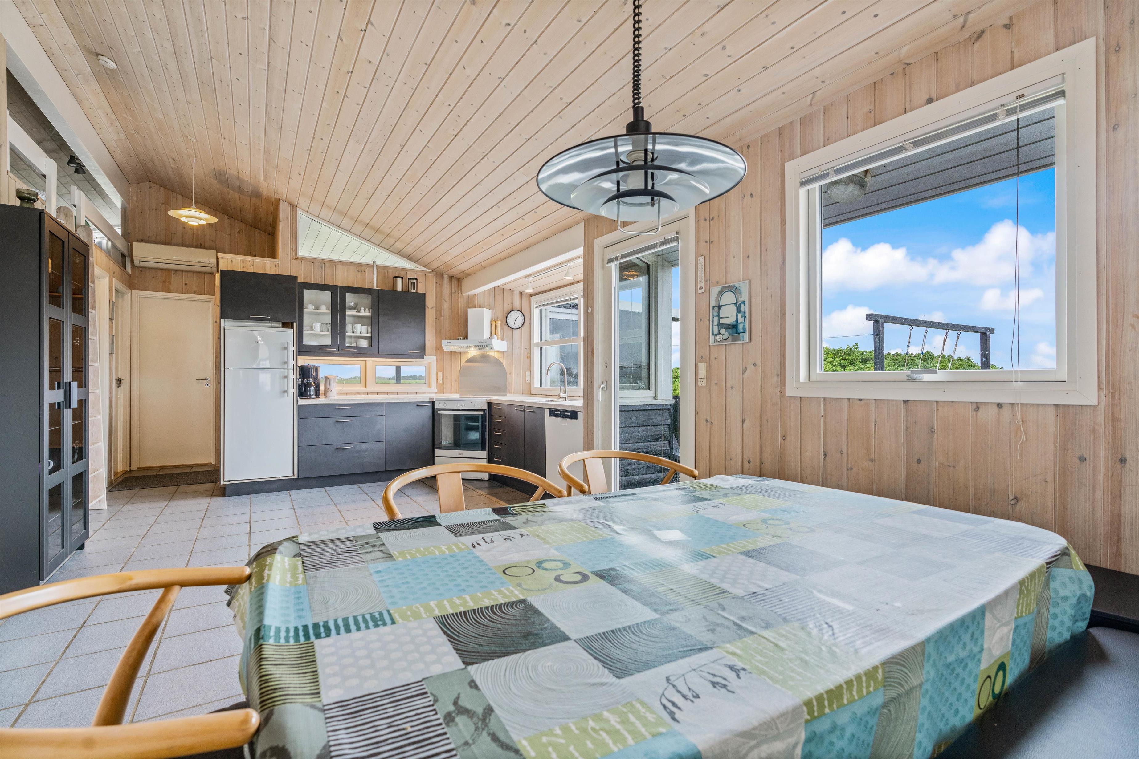 Her er rig mulighed for at nyde gode stunder med familie og venner! Her er et dejligt alrum, hvor den lyse stue ligger i forlængelse. Her er en hyggelig indretning med gode behagelige møbler. I køkkenet kan I sammen lave mad, se film i stuen eller læse en god bog foran den varme brændeovn, der spreder glæde på de køligere dage. Den energibesparende luft til luft varmepumpe sørger for et behageligt indeklima.