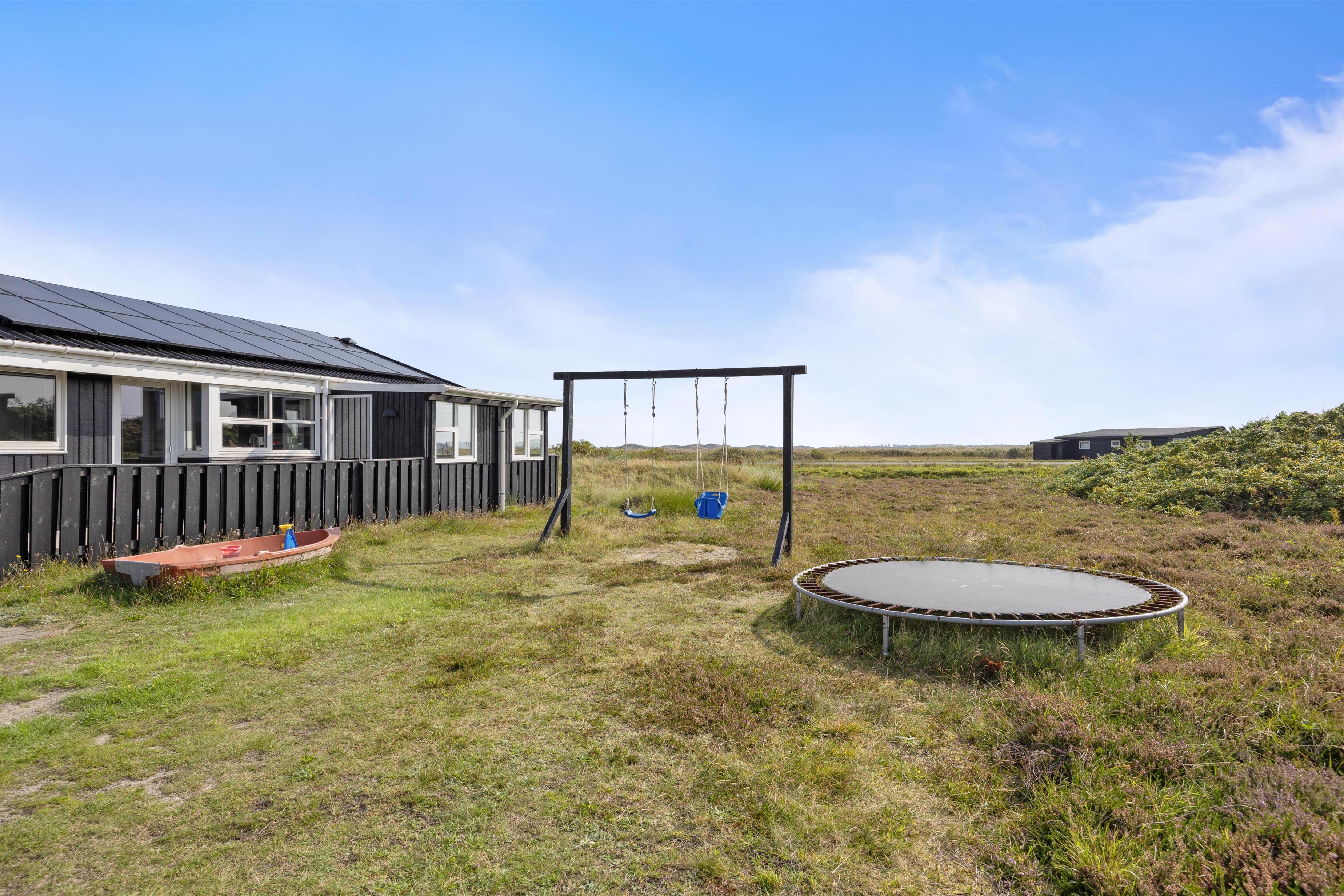 Feriehuset ligger i den sydlige ende af Ringkøbing Fjord, og området indbyder til gode gåture i naturskønne omgivelser. Efter en lille gåtur befinder I jer på den brede sandstrand ved Vesterhavet, der ligger 650 meter fra sommerhuset. Her kan I slentre langs vandet i timevis – uanset om solen skinner, en regnbyge passerer eller blæsten har godt fat.