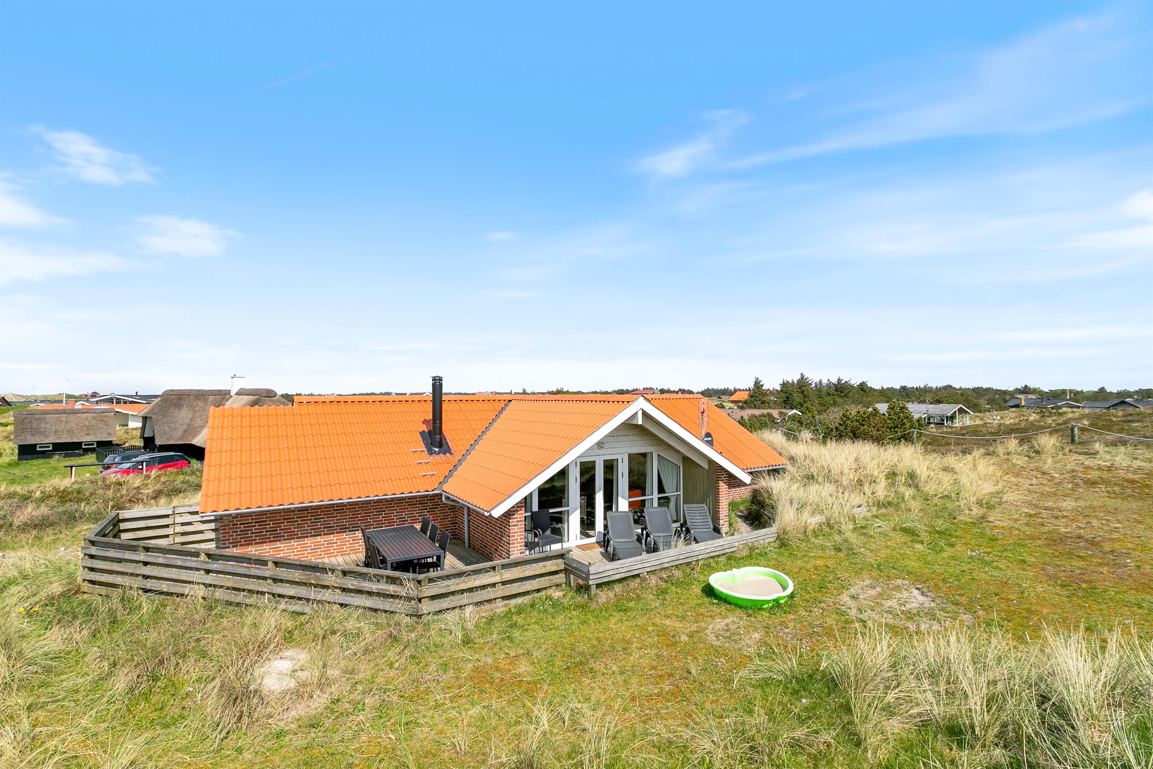 Her kan I holde en afslappende ferie i et hyggeligt sommerhus bygget i 1995 på en 1.400 m2 stor naturgrund. Sommerhuset har 3 soveværelser, alle med loft til kip og flisegulv. 2 af værelserne har dobbeltseng og det sidste værelse er udstyret med en køjeseng, som uden tvivl er et hit blandt børnene.