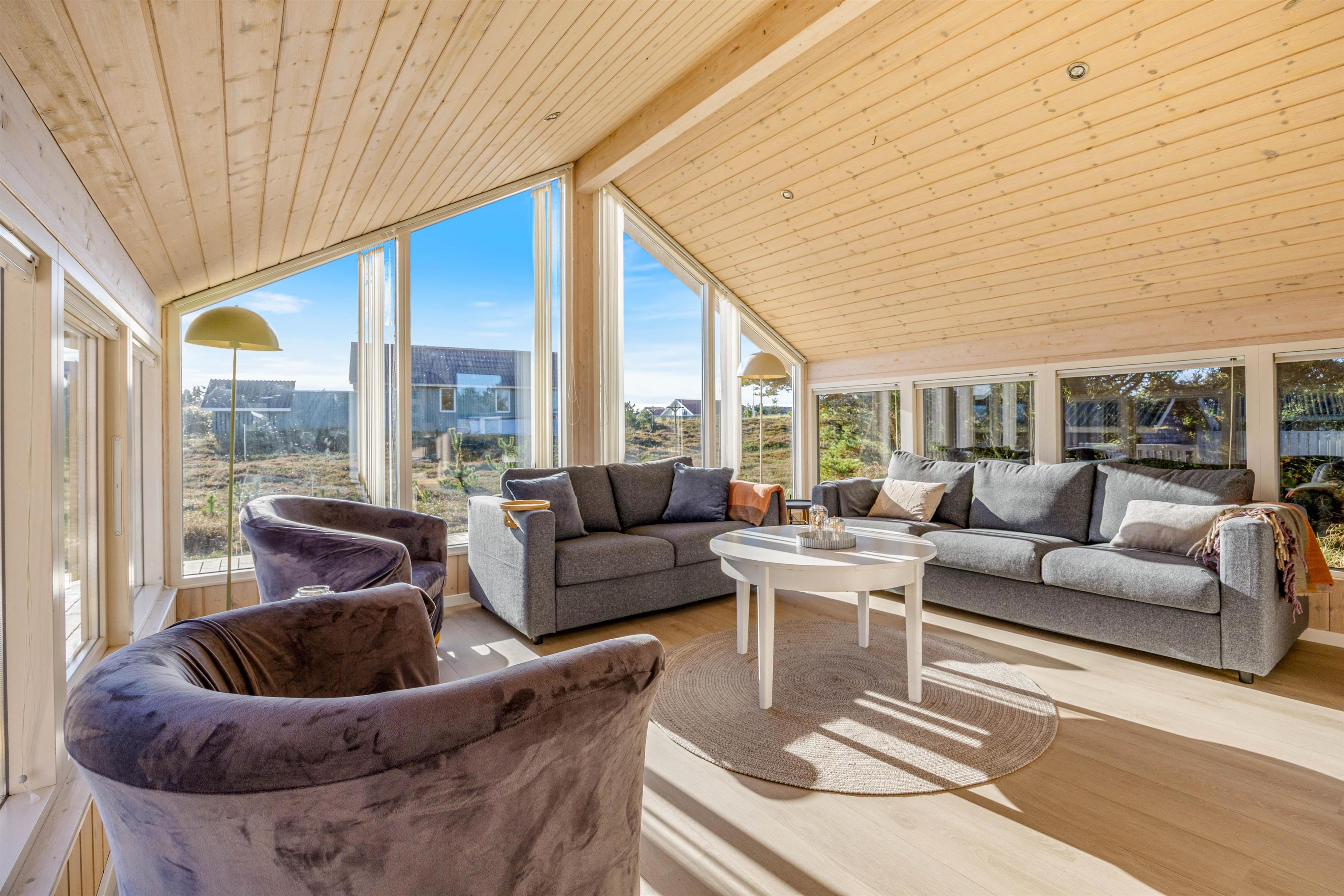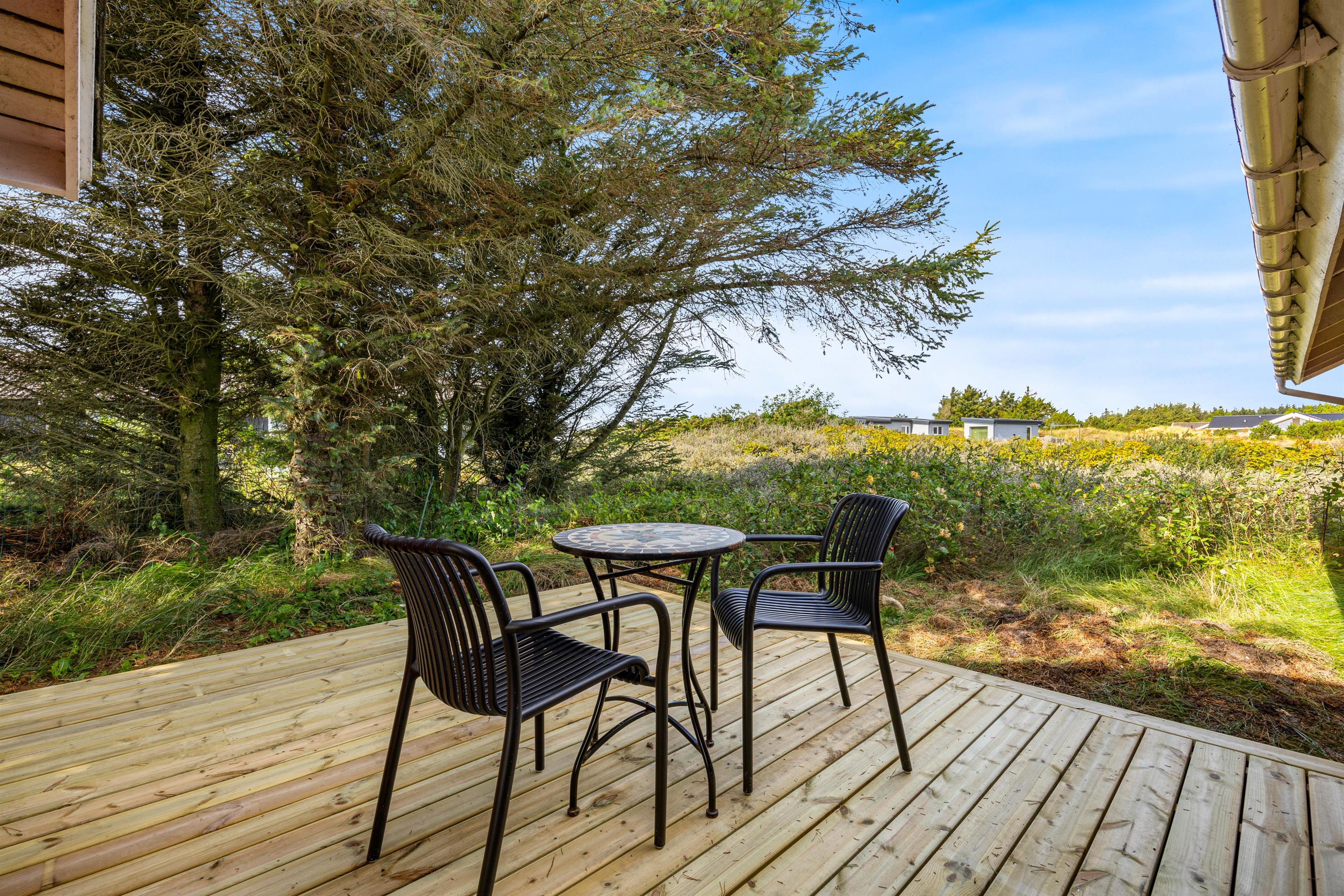 Til feriehuset hører en åben terrasse, hvor I kan nyde den friske havluft. Her kan I spise morgenmad i solen eller slappe af efter en lang gåtur. På naturgrunden er der god plads til, at jeres hund kan færdes frit, og med stranden kun 700 meter væk når I hurtigt ud til Vesterhavet og kan mærke den særlige stemning, som kun Nordsøen kan byde på.