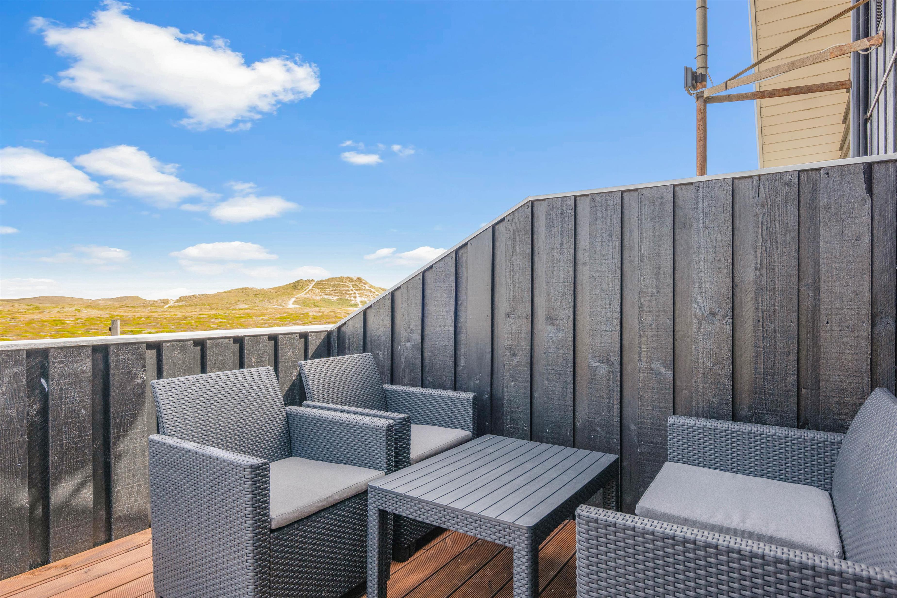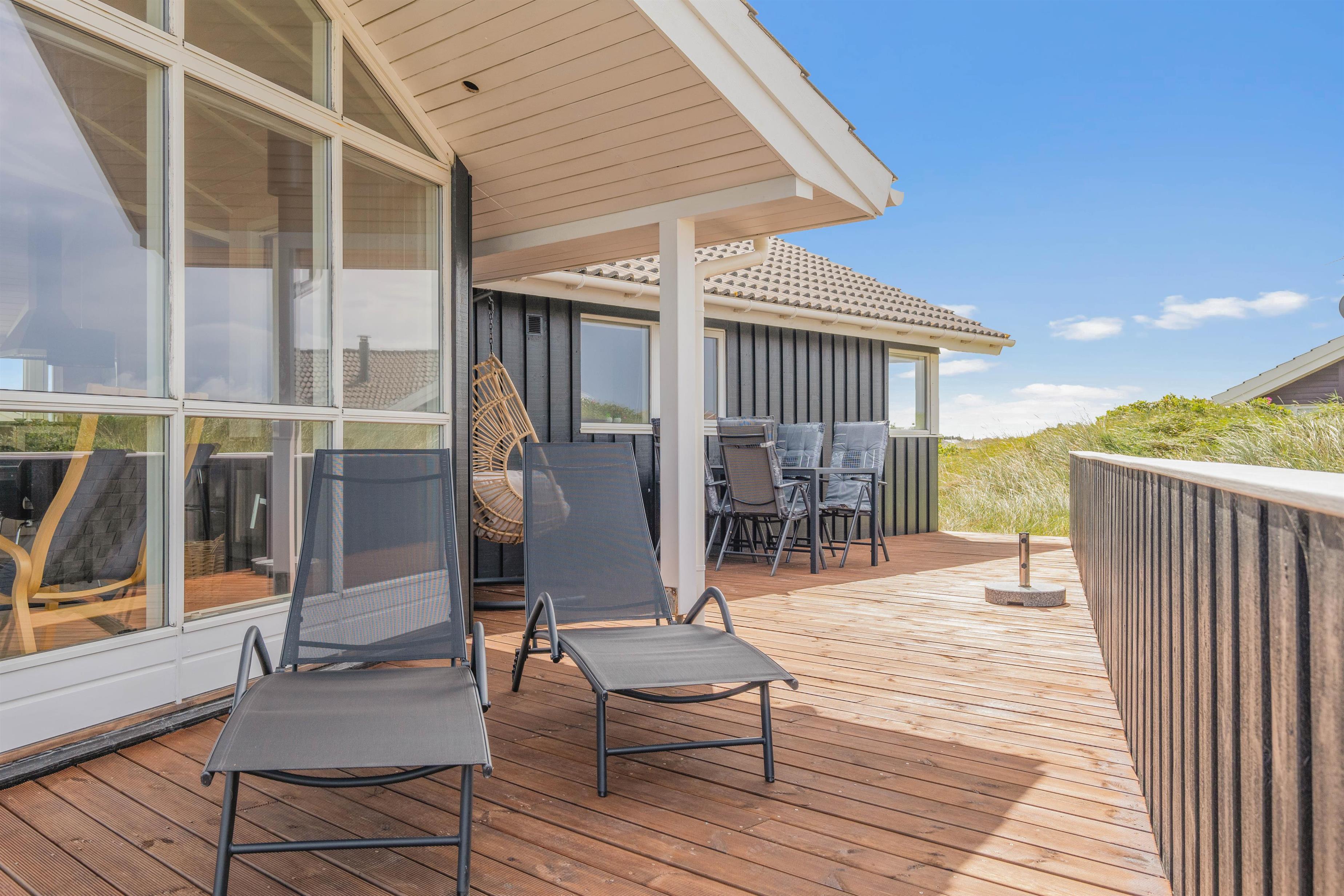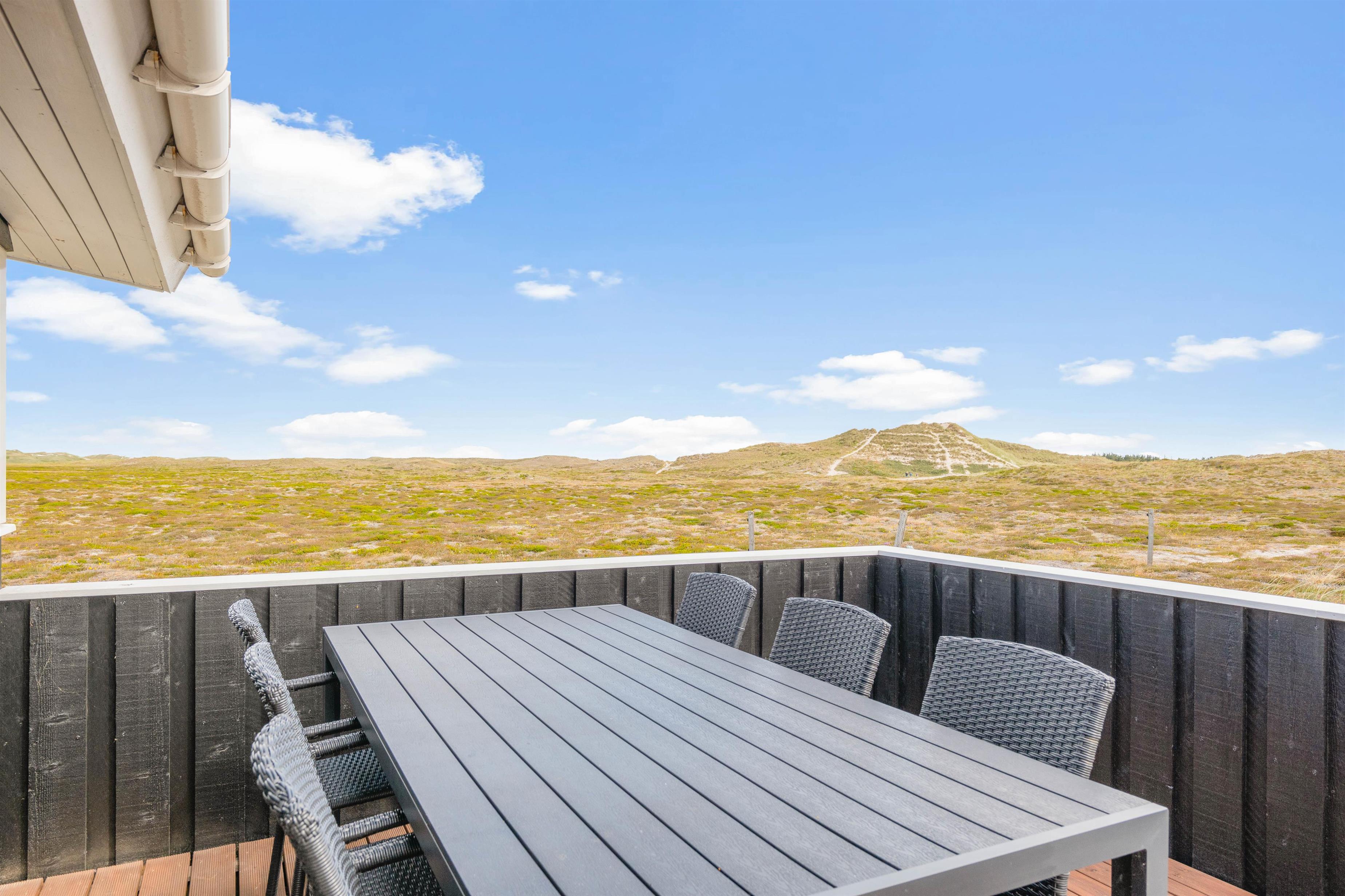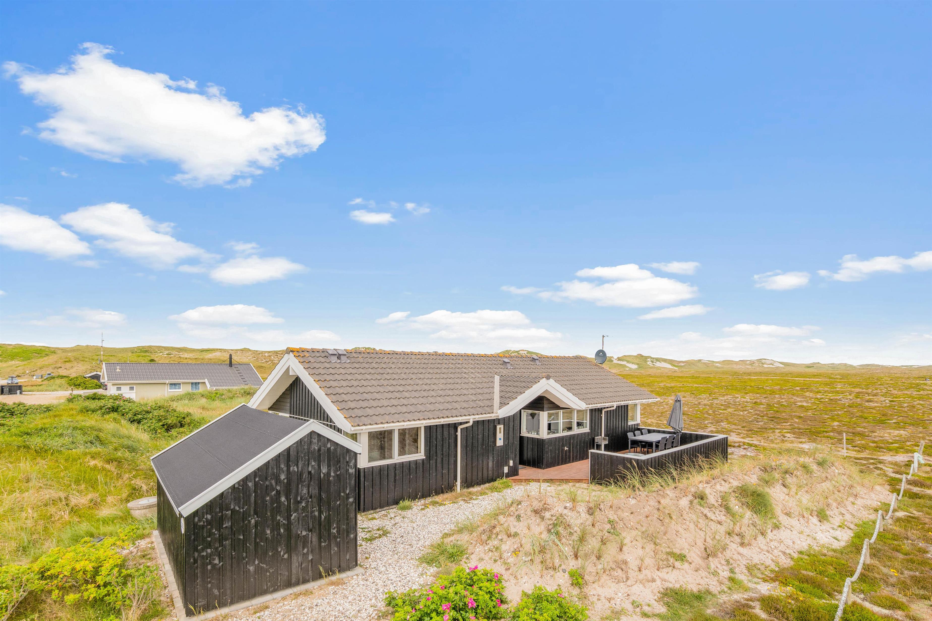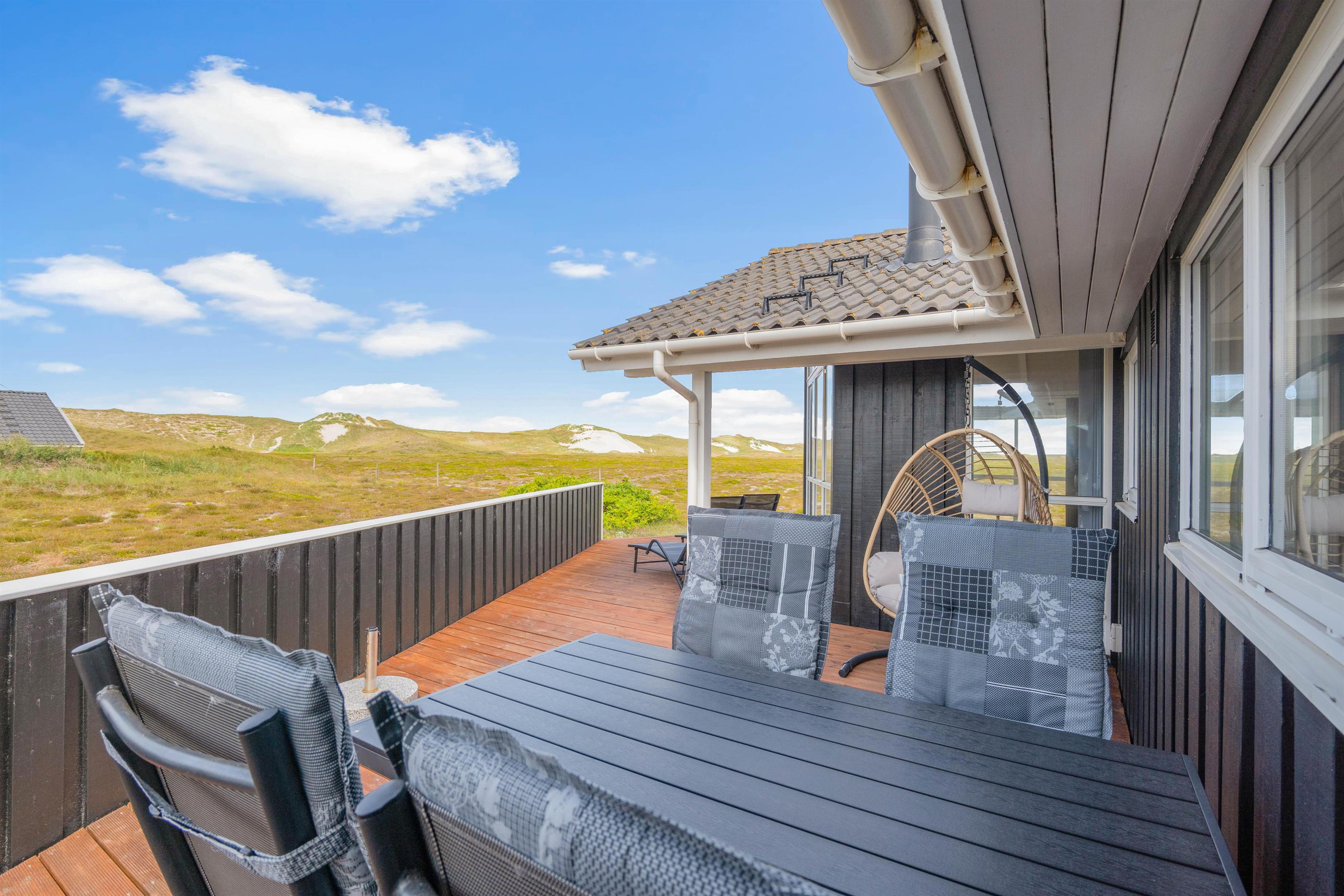 Fra stuen har i direkte udgang til en delvist afskærmet terrasse, hvor I kan nyde solen med et køligt glas vin, mens havet bruser i baggrunden. Børnene kan lege i sandkassen og brænde krudt af på den store naturgrund. Grunden indeholder også et skur med god plads til for eksempel et par cykler.