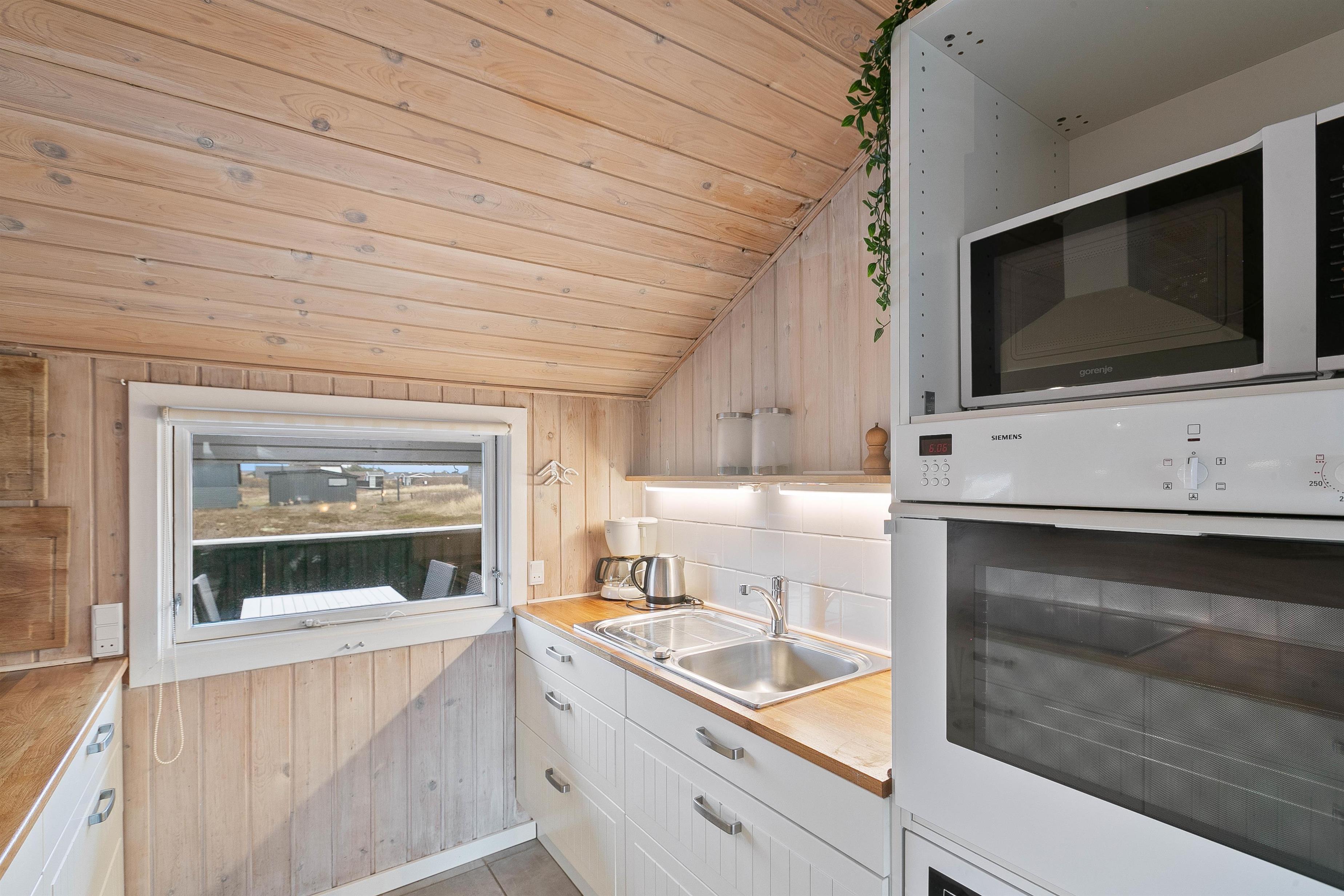 Der er plads til 6 personer her – fordelt på 3 soverum, hvoraf de to er med dobbeltsenge og et værelse er med enkeltsenge. I forbindelse med badeværelset finder I en sauna, hvor man rigtig kan blive gennemvarm - måske efter en lang dag i klitlandskabet og ved stranden.