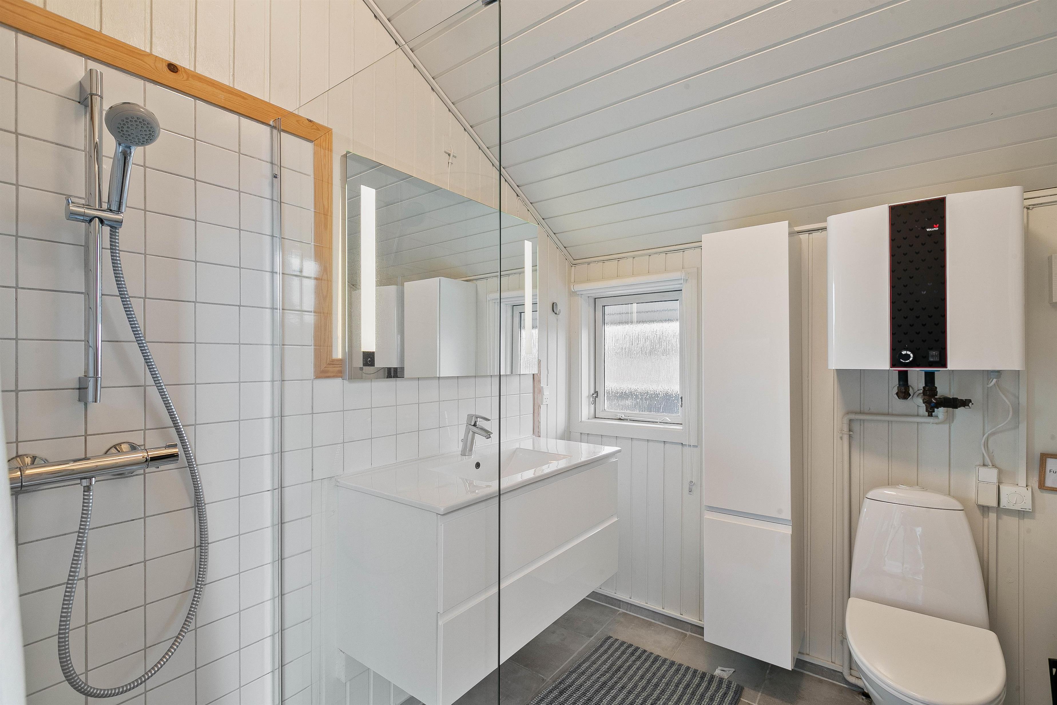 Indretningen er overalt holdt i lyse farver og hyggelig skandinavisk stil. På de køligere dage kan man nyde en spændende bog eller en god film – og tænde op i brændeovnen eller varmepumpen. TVét i stuen er et Apple TV, hvor du kan streame dine yndlingskanaler direkte.