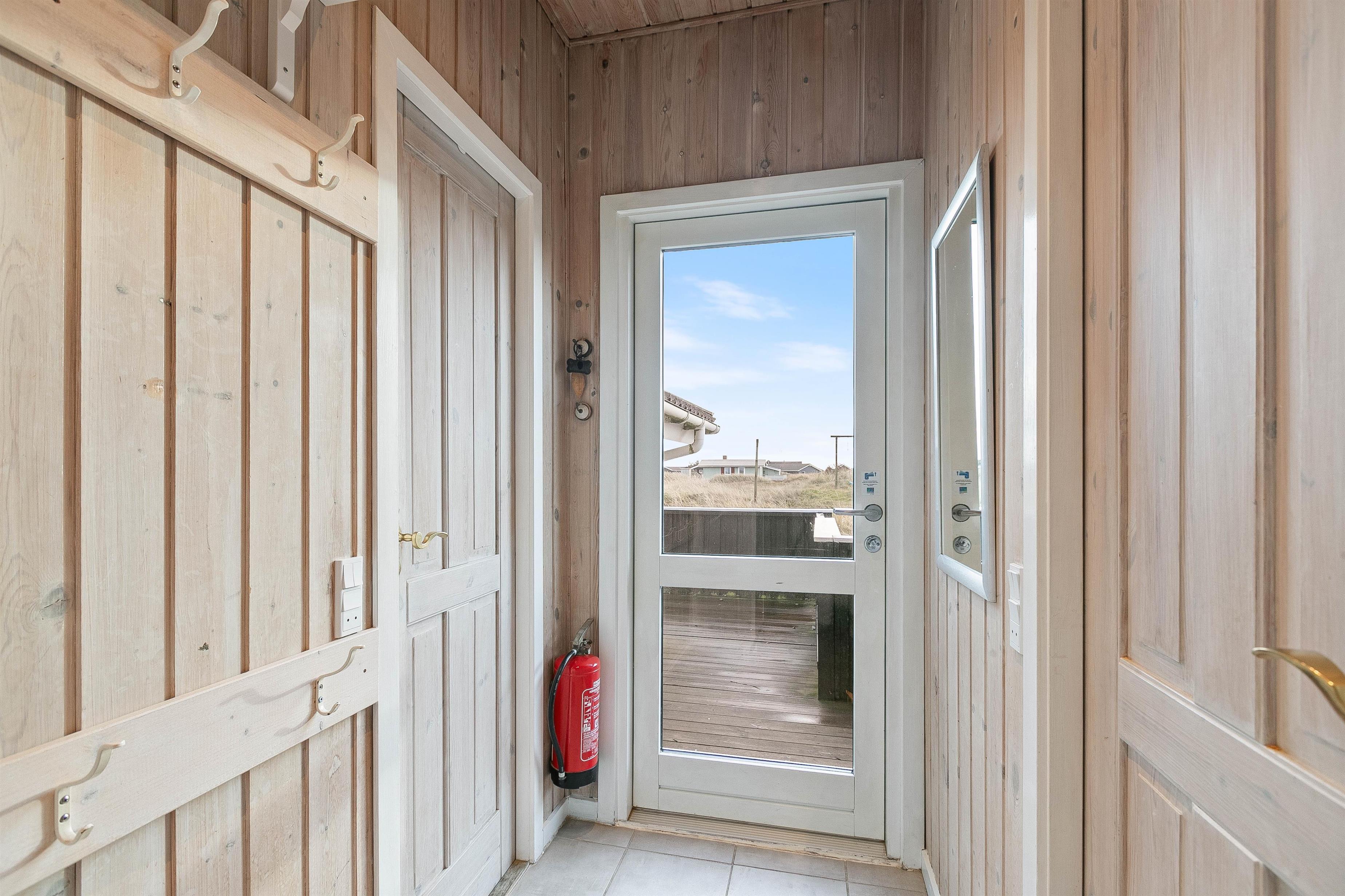 Rundt om feriehuset her på Arvidvej 348 er der en stor, lukket og dejlig træterrasse. Her kan man roligt lade børn og hunde lege frit. Den ultimative nydelse må være en veltilberedt grillmiddag på den vestvendte terrasse, hvor man kan nyde solnedgangen over klitterne og lytte til Vesterhavets afslappende brusen.
