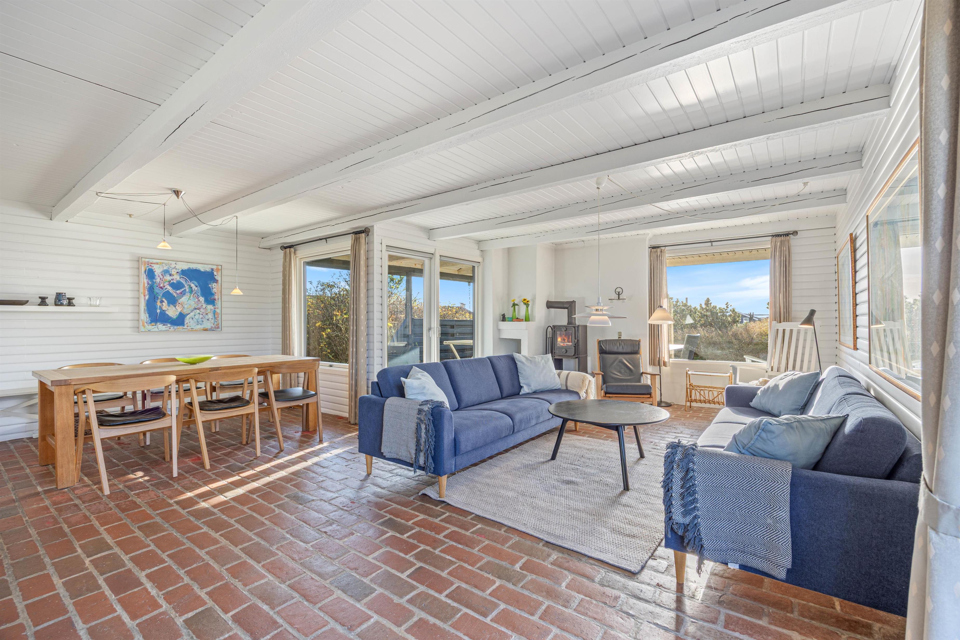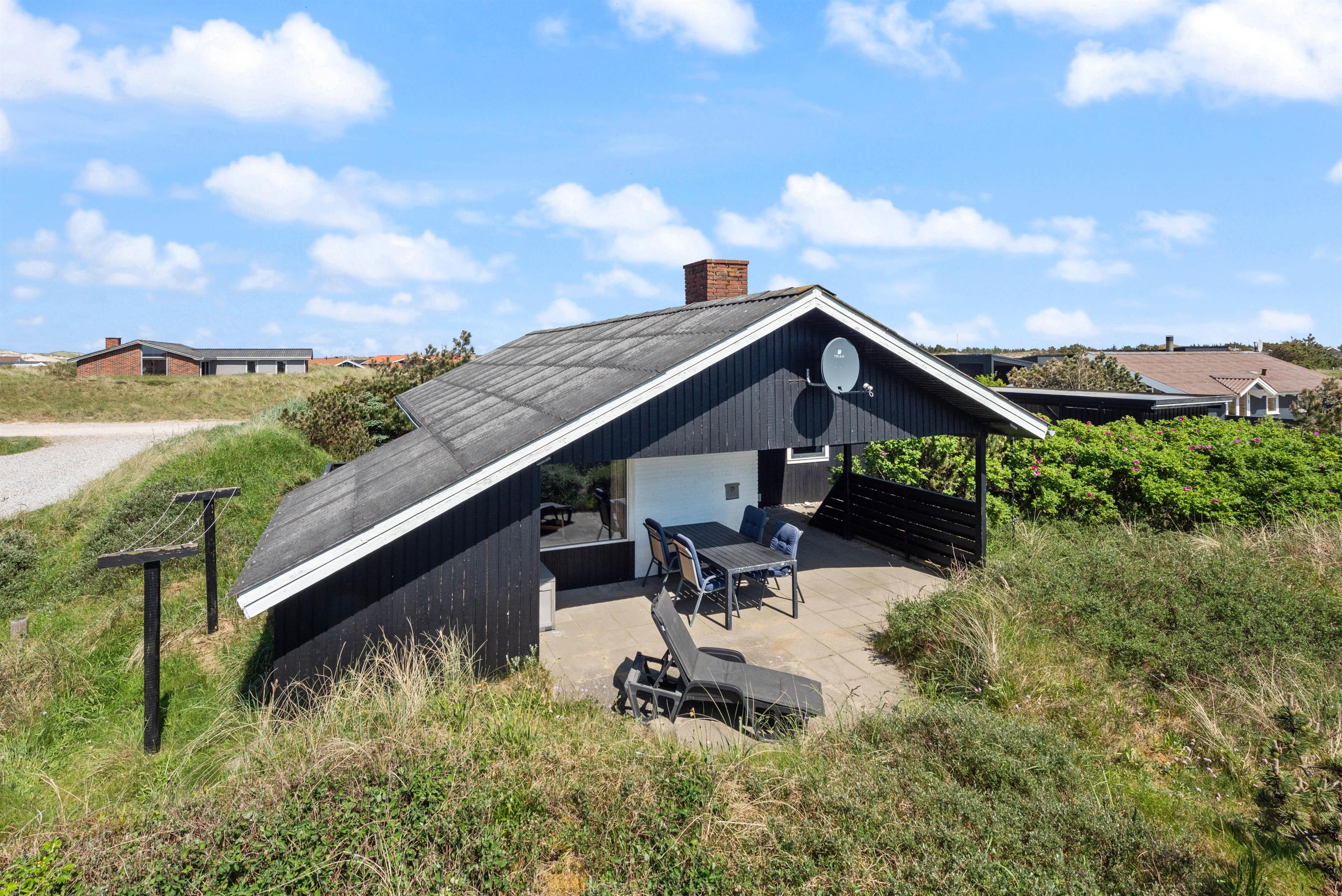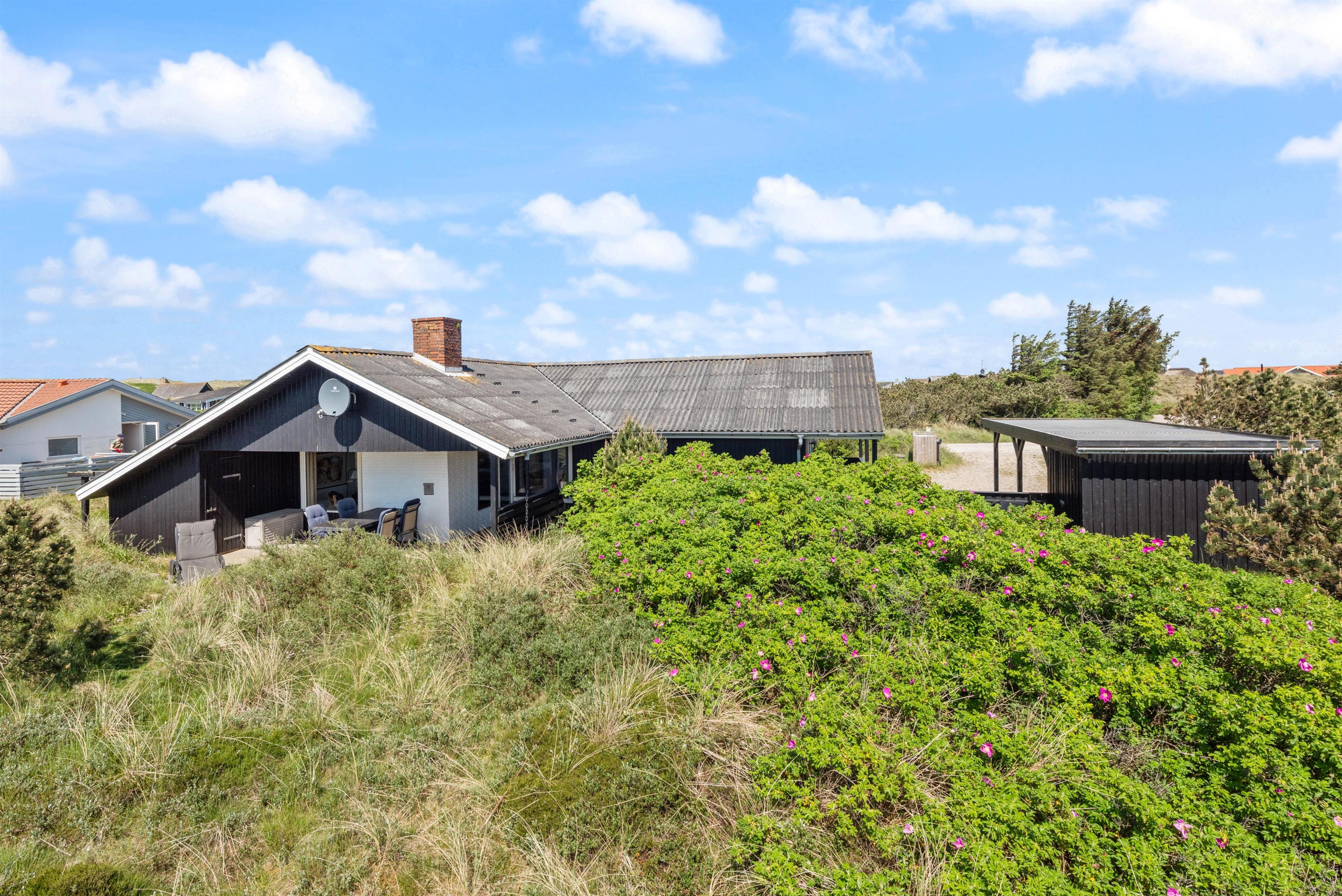 Dette hyggelige sommerhus ligger ved en af Danmarks flotteste strande i Bjerregård, cirka 15 kilometer syd for den hyggelige fiskerby Hvide Sande. Naturen er barsk og smuk, og inviterer til lange spadsereture på heden, i klitterne og ikke mindst ved den endeløse sandstrand.