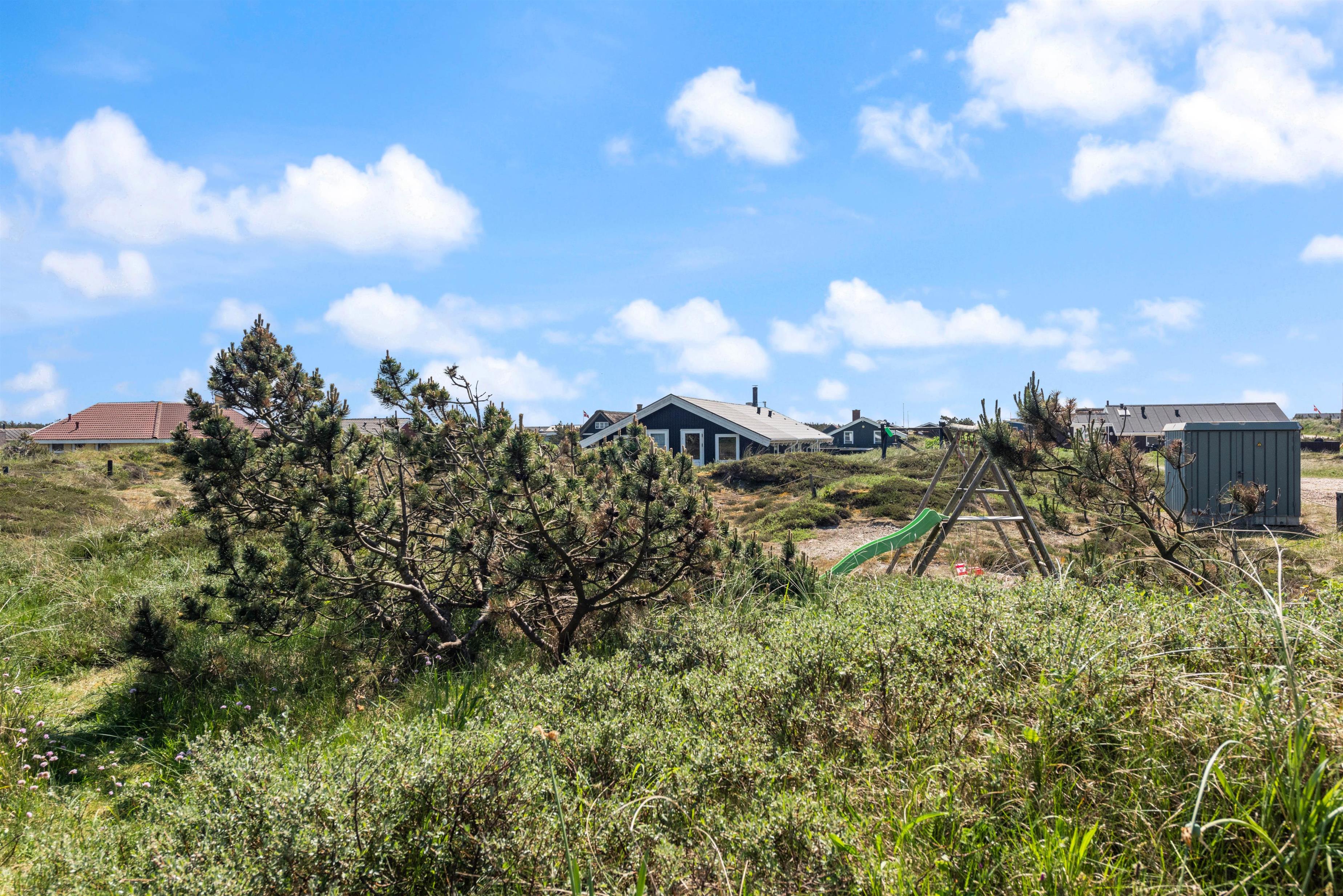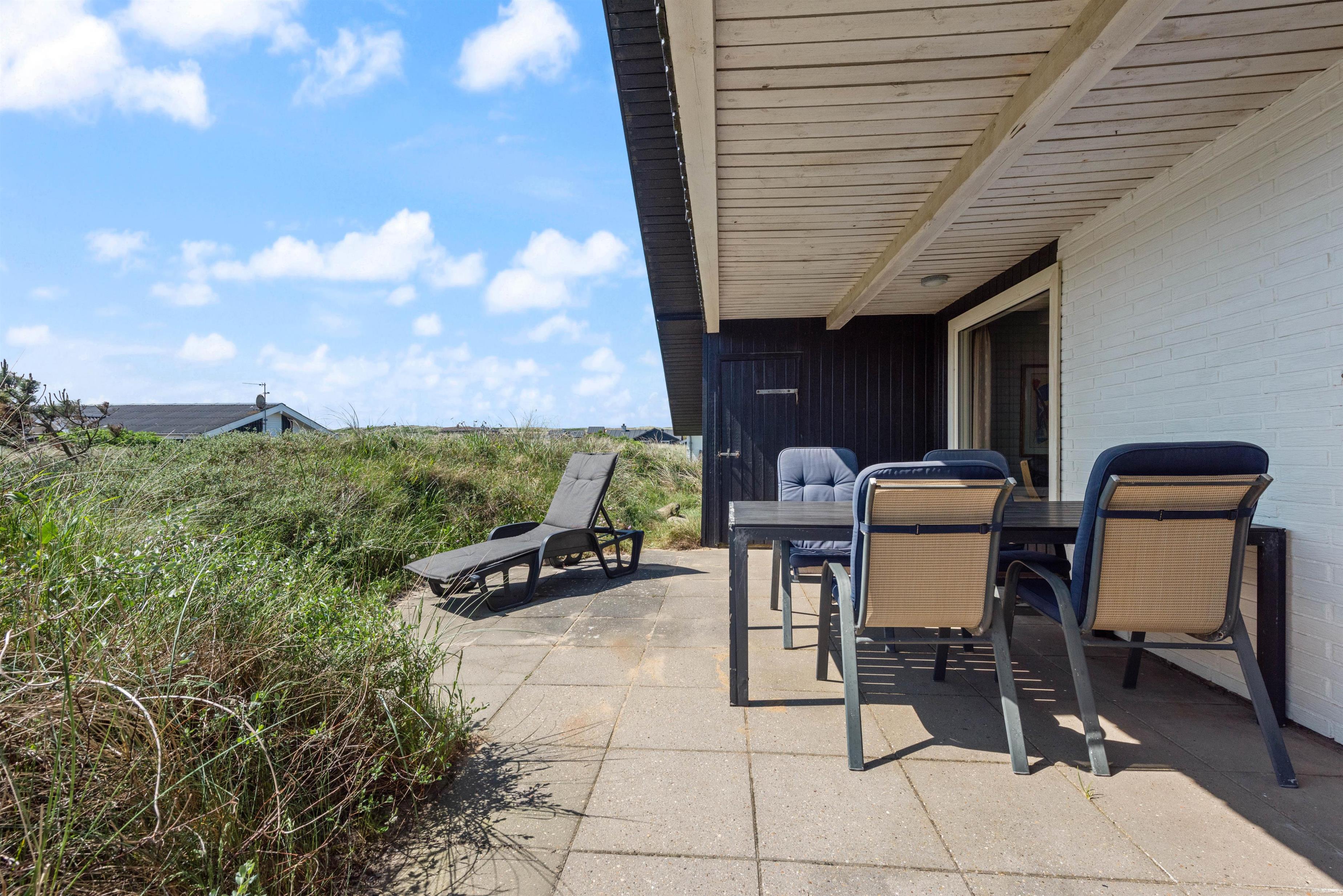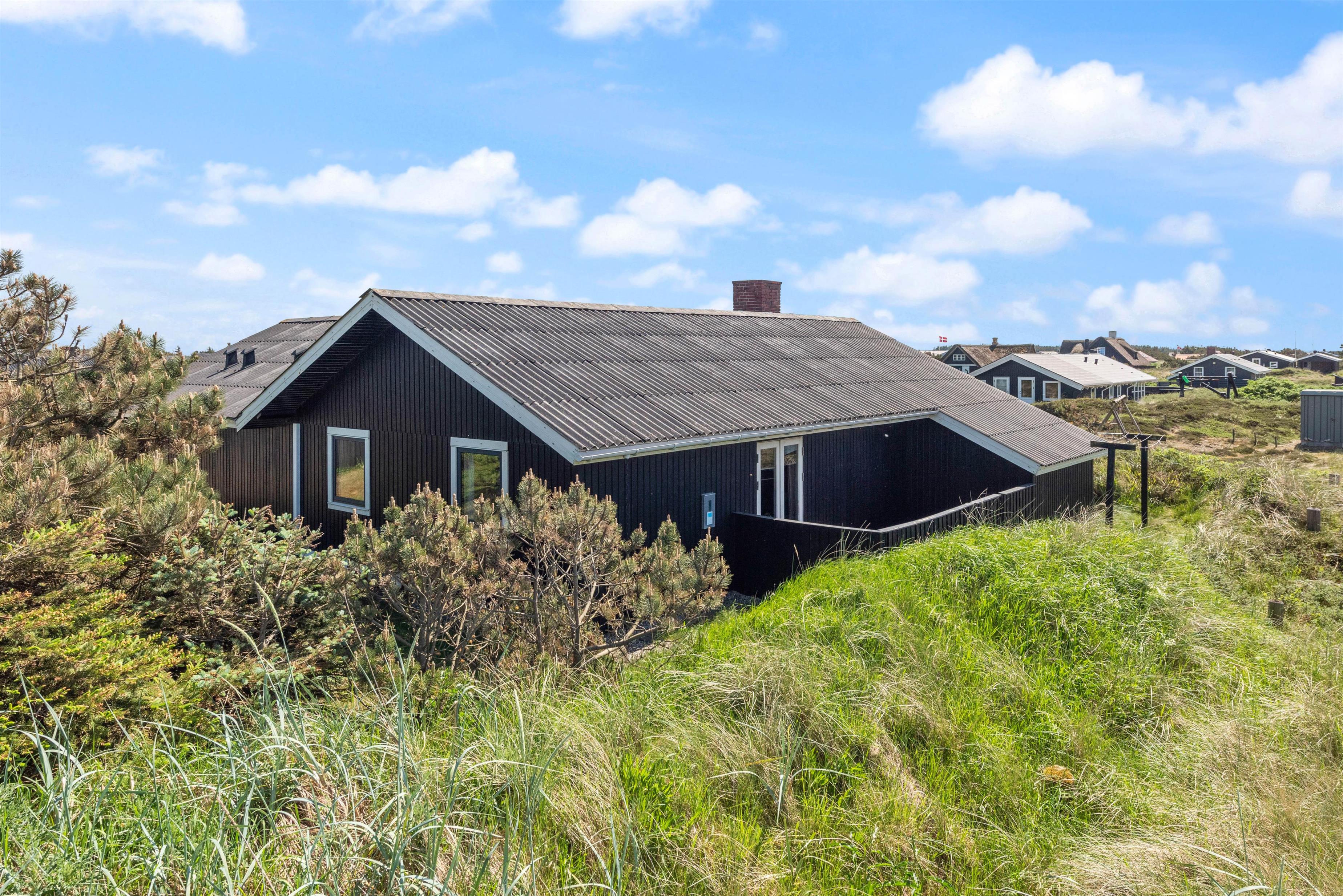 Dette hyggelige sommerhus ligger ved en af Danmarks flotteste strande i Bjerregård, cirka 15 kilometer syd for den hyggelige fiskerby Hvide Sande. Naturen er barsk og smuk, og inviterer til lange spadsereture på heden, i klitterne og ikke mindst ved den endeløse sandstrand.