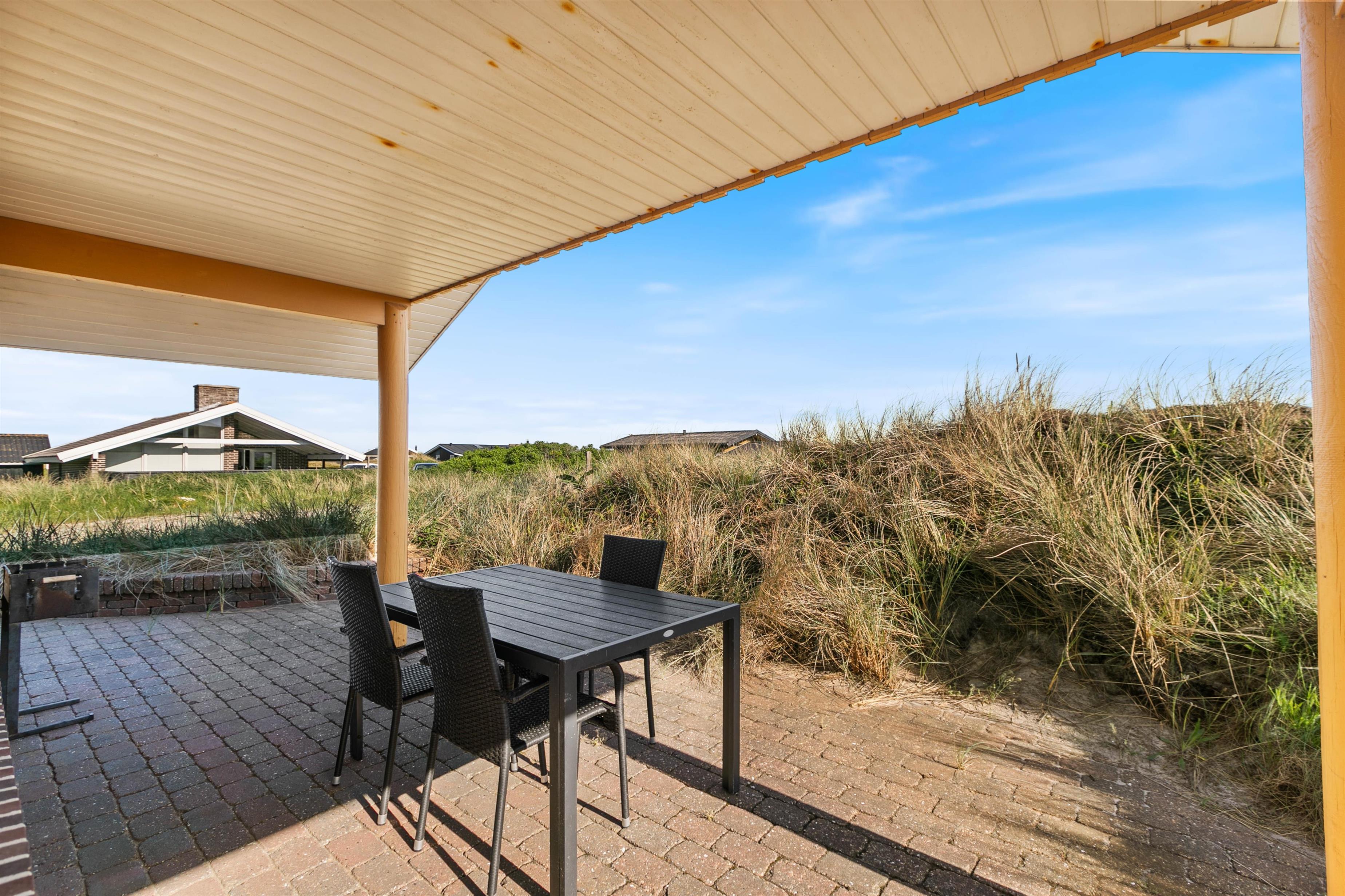 På den dejlige delvist overdækkede terrasse kan I rigtigt slappe af og nyde naturen. Her er der ro og læ for vinden og med gode havemøbler, liggestole og grill er der optimale forhold for solbadning og lange hyggelige grillaftener.