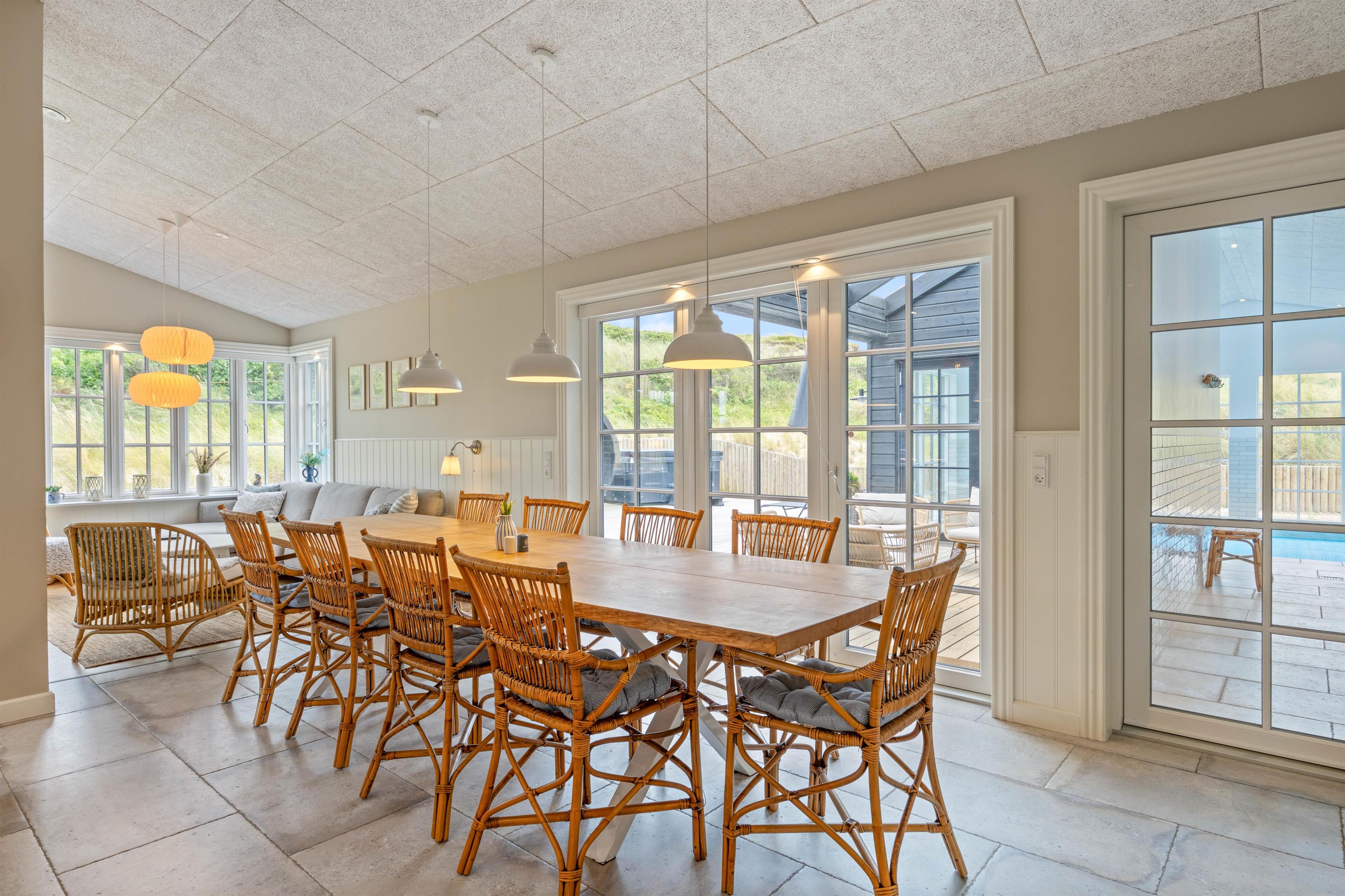 Kun 50 meter fra stranden finder du dette moderne sommerhus med egen pool, udespa og bordtennisbord. Her er ideelt til familie og venner i alle aldersklasser – uanset om man ønsker at boltre sig i aktiviteter, eller at slappe af indendørs, på terrassen eller i naturen.