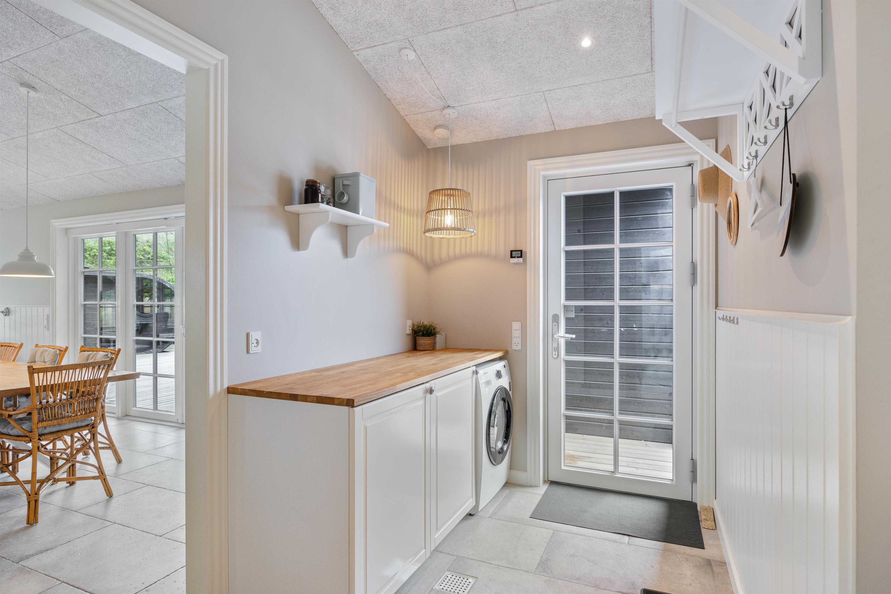 I poolområdet kan både børn og voksne boltre sig. Her er et separat badeværelse med toilet, vask, bruser og gulvvarme – ligesom i feriehusets to øvrige badeværelser. Skulle I få lyst til et slag bordtennis i stedet, er der også mulighed for dette. Der er 5 rummelige og lyse soveværelser, hvor I kan hvile rigtig godt ud i den friske vesterhavsluft. Vaskemaskine og tørretumbler er tilgængelige, så I behøver ikke at slæbe stakke af vasketøj med hjem.