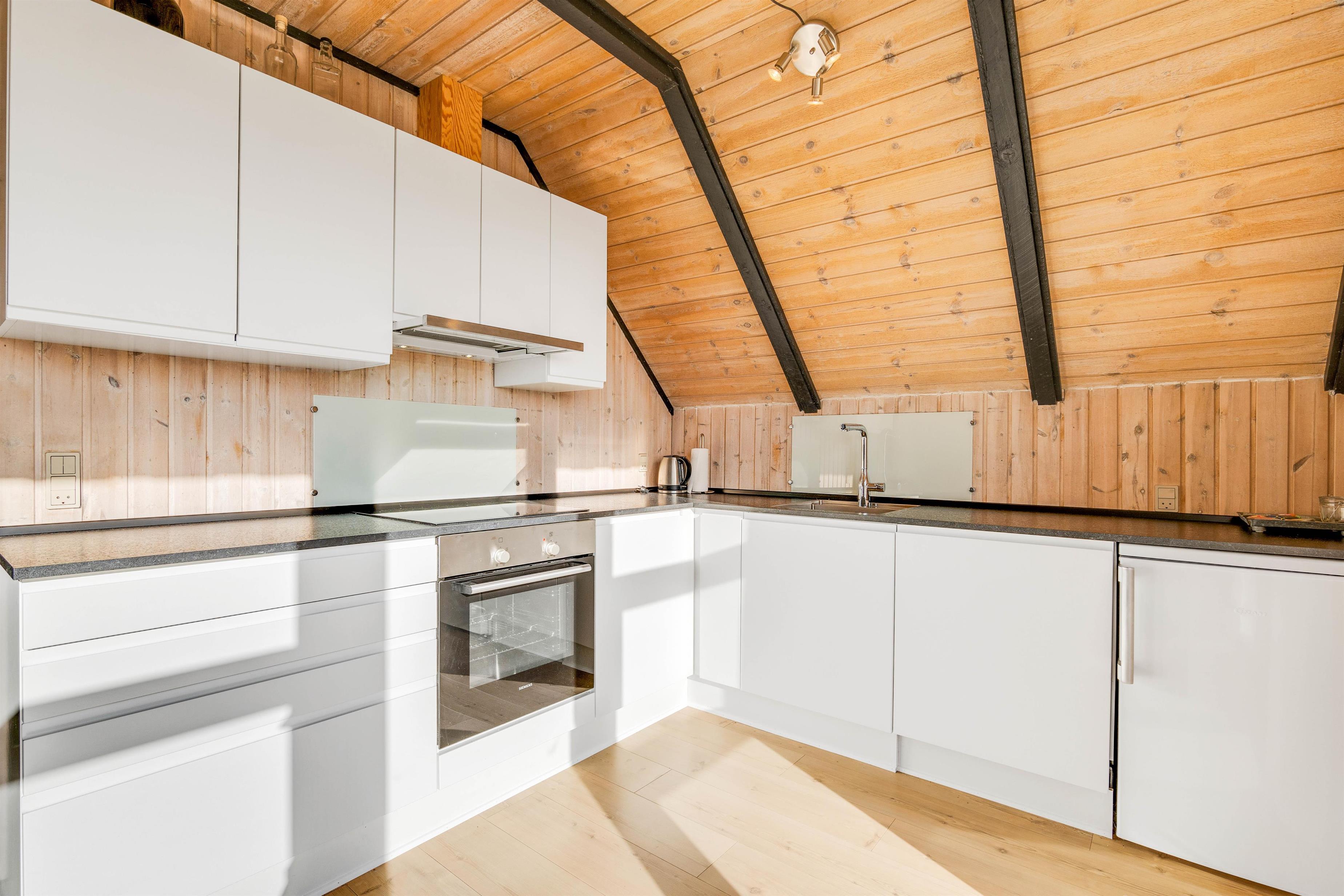 I feriehuset er der tænkt på alt det praktiske, og feriehuset er blandt andet udstyret med opvaskemaskine, mikroovn samt induktionskomfur. I depotrummet finder I både vaskemaskine og tørretumbler, hvilket gør ferien afslappet og feriepakningen nemmere. Når dagen går på hæld, kan I sætte jer til rette i sofaen med en god film, der kan streames via Chromecast.