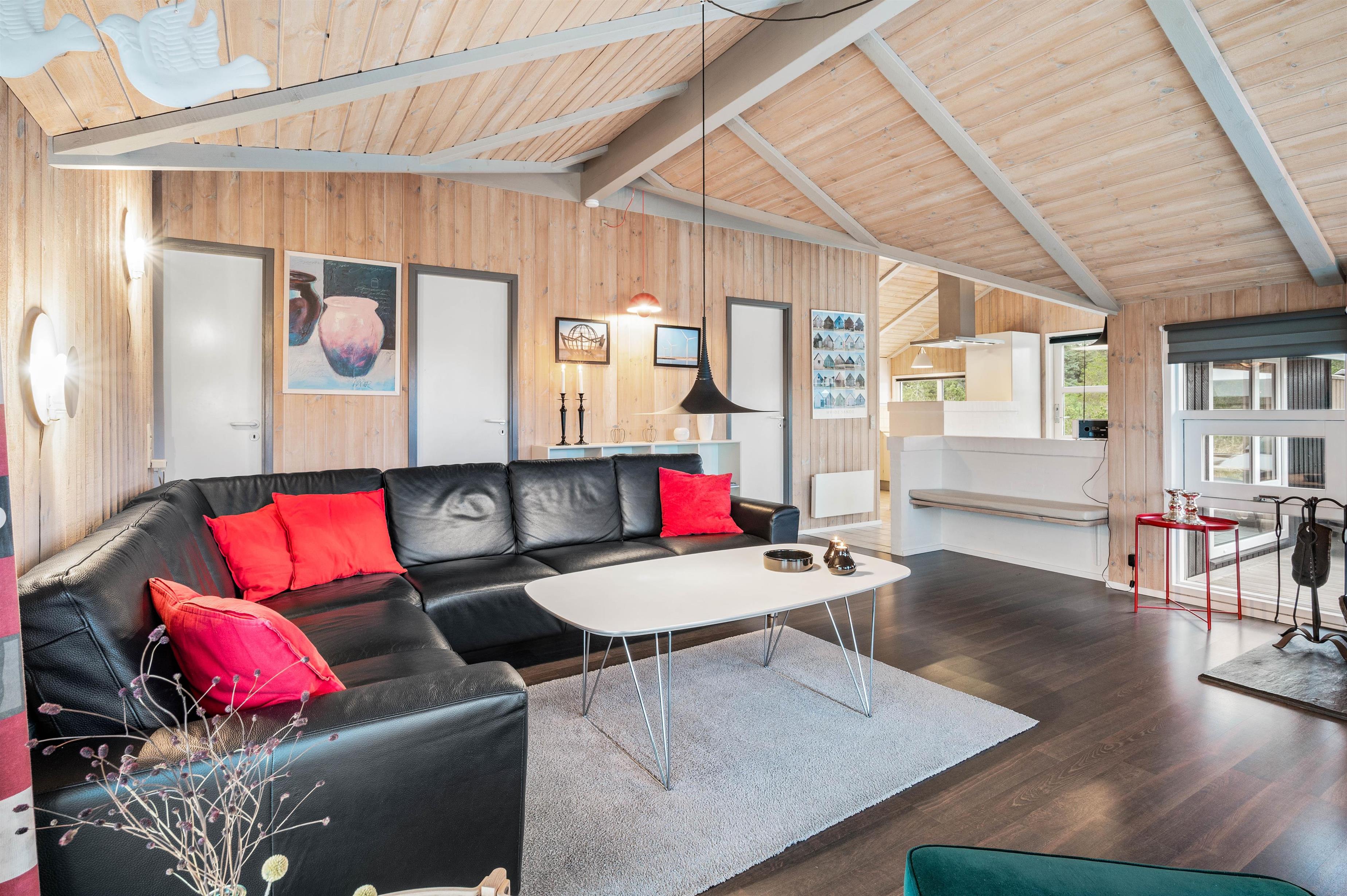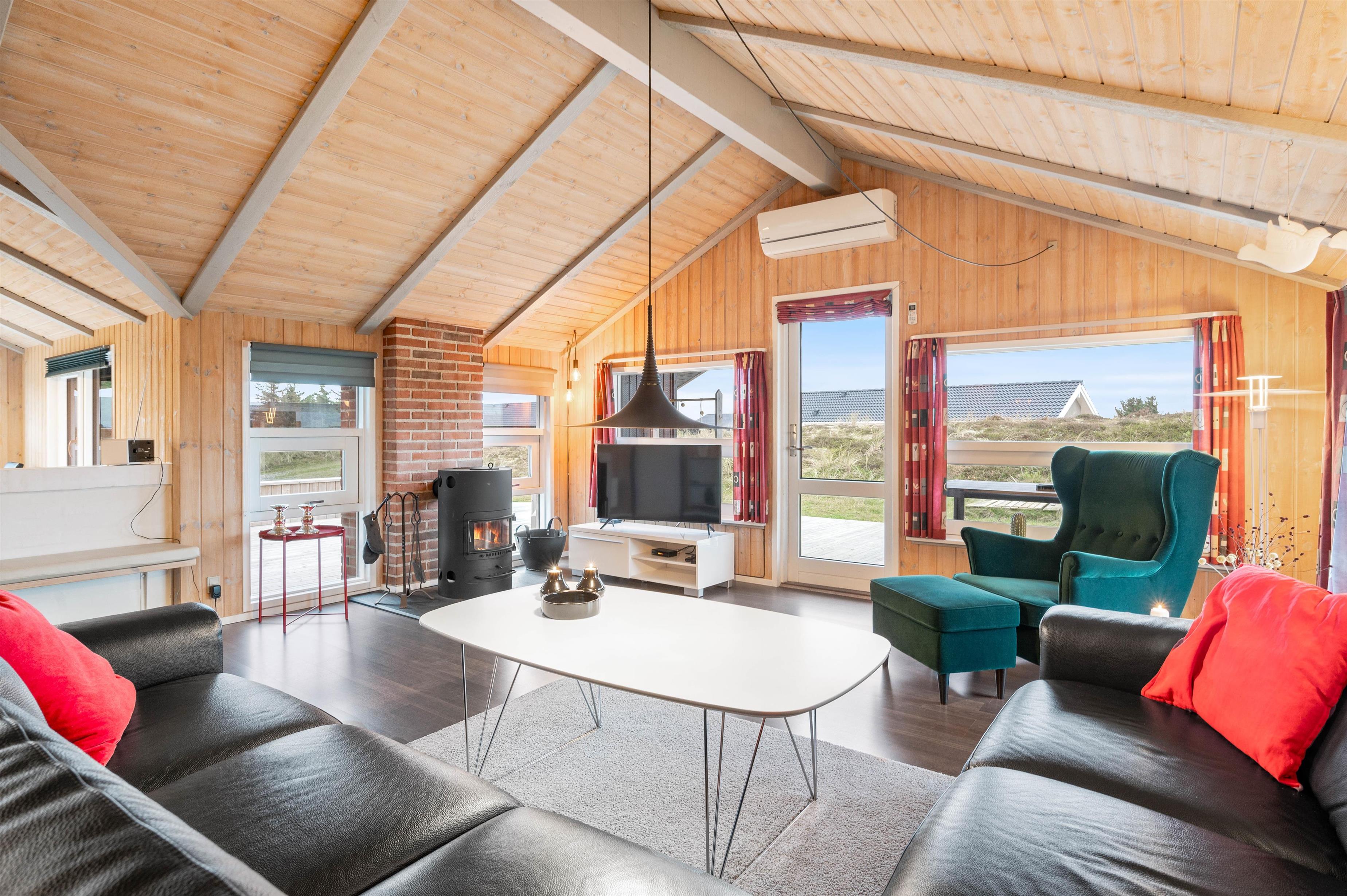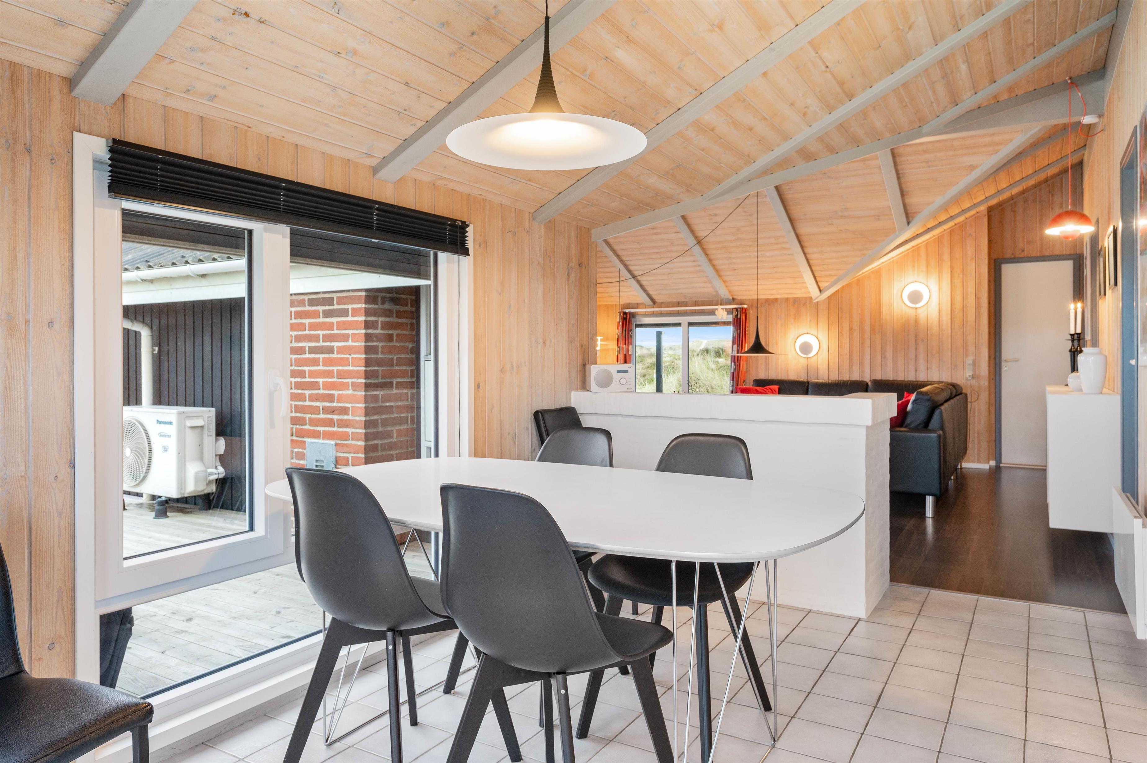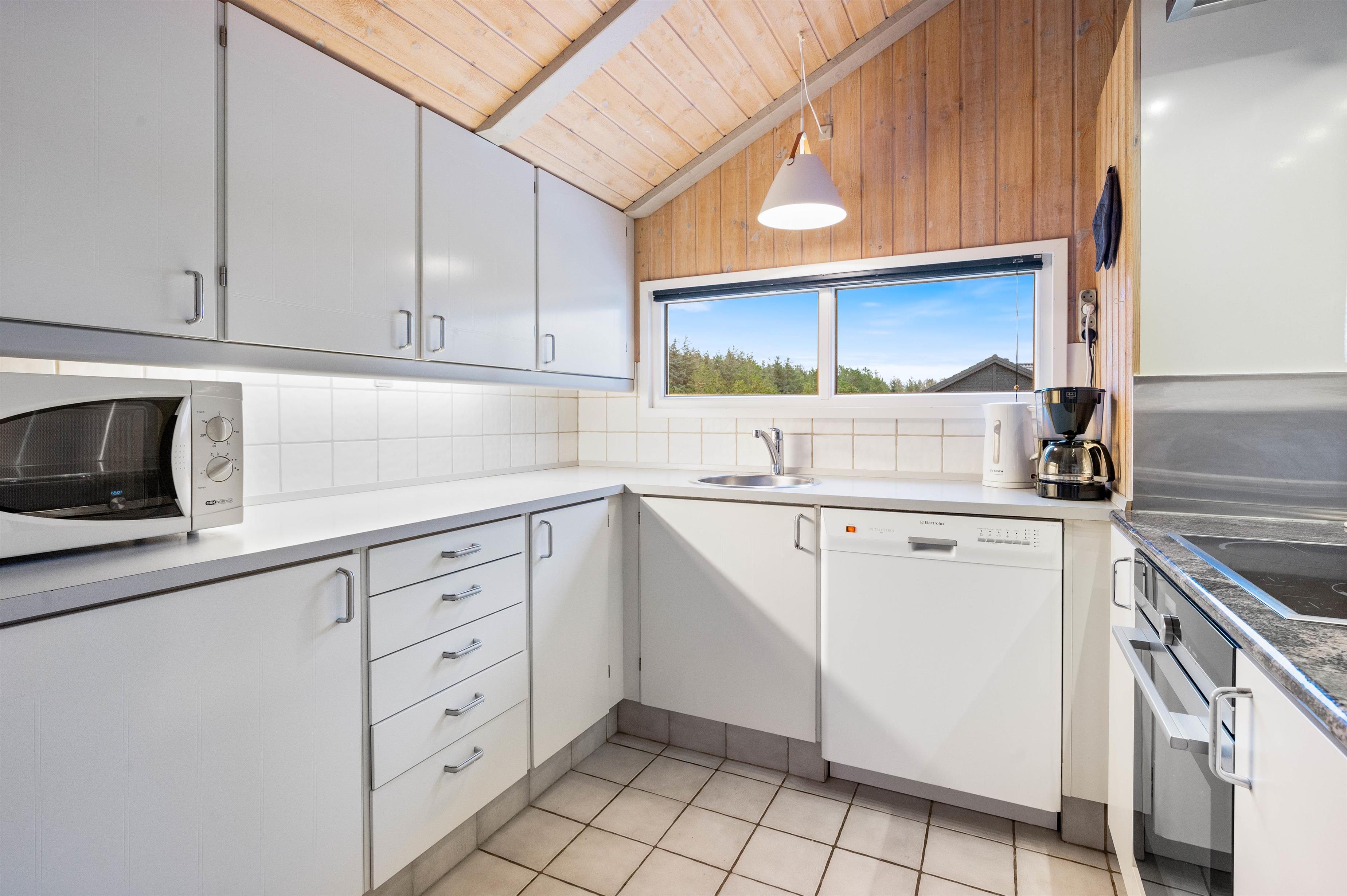 Gennem de store vinduer i stuen kan I nyde den flotte udsigt til det naturskønne klitlandskab. Det veludstyrede køkken har en opvaskemaskine, og sommerhuset er også udstyret med en vaskemaskine - så der hurtigt bliver taget hånd om de praktiske opgaver i dagligdagen.