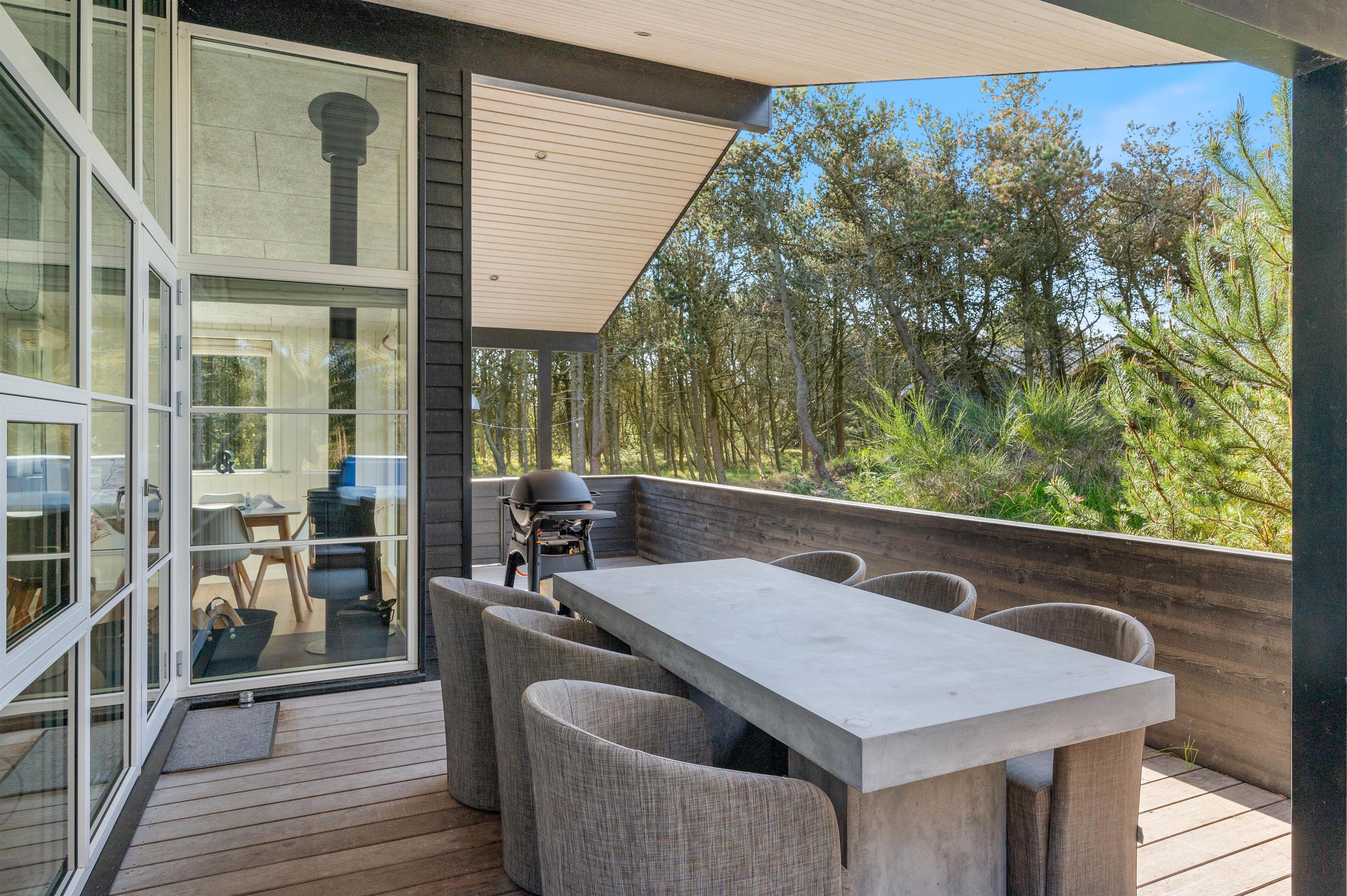 Beliggenheden i det skønne Bjerregård er rigtig god. De omkringliggende træer giver beskyttelse for vinden så udsigten mod syd kan nydes. Vesterhavet er kun ca. 10 minutters gang fra feriehuset. Hvide Sande er altid et populært stop, både for indkøb og byens restauranter, men også et yndet opholdssted for lystfiskere.