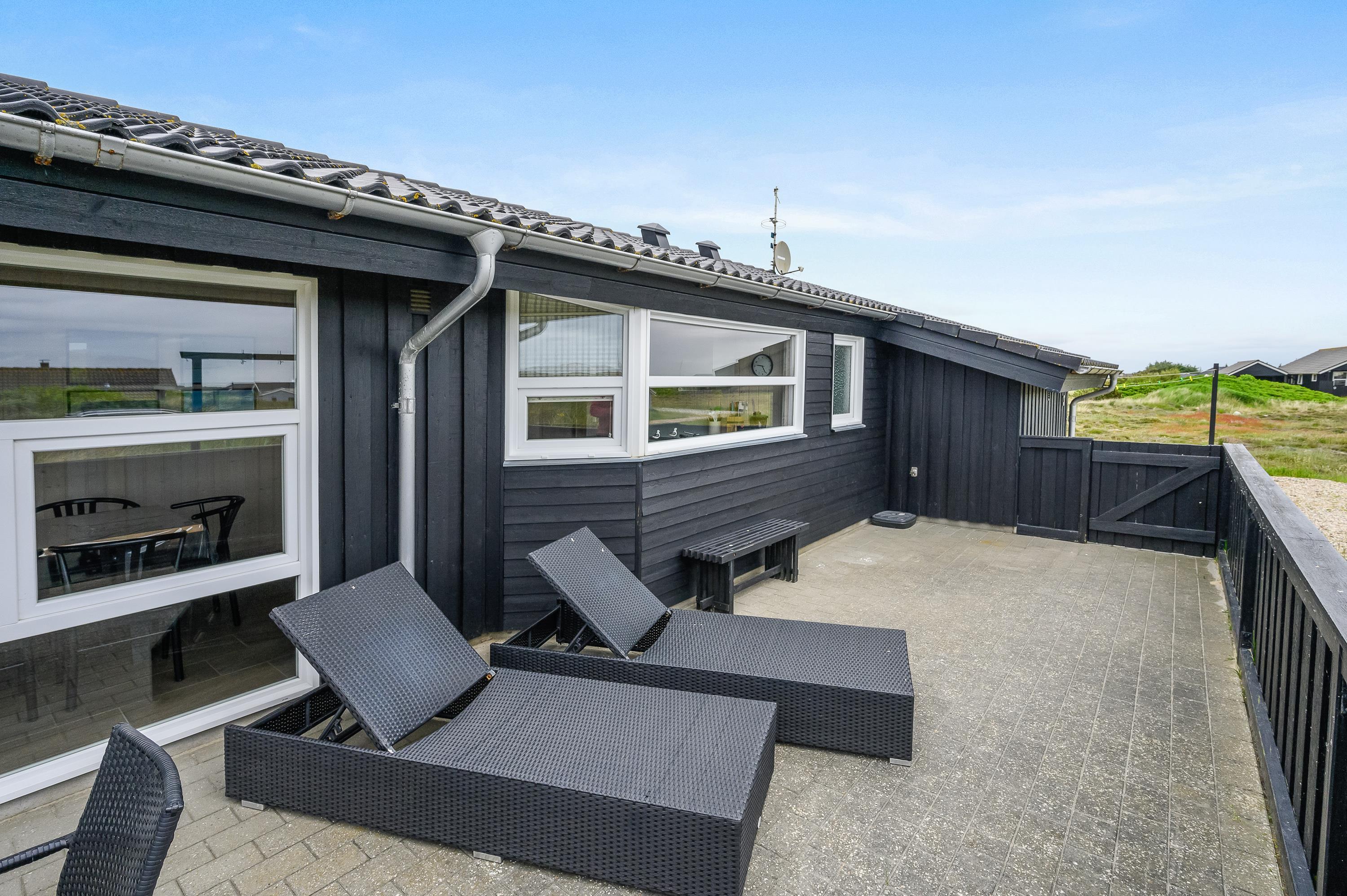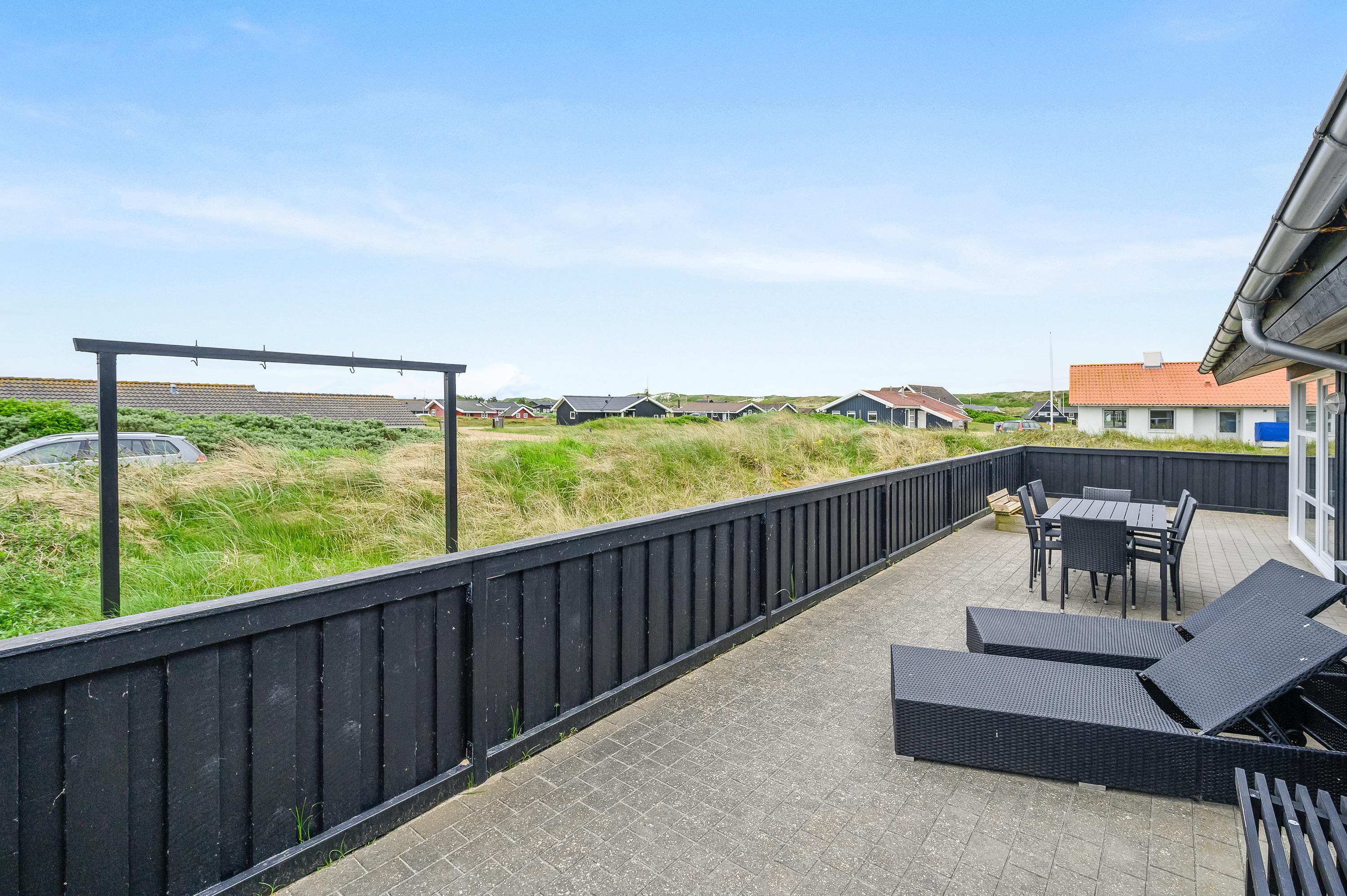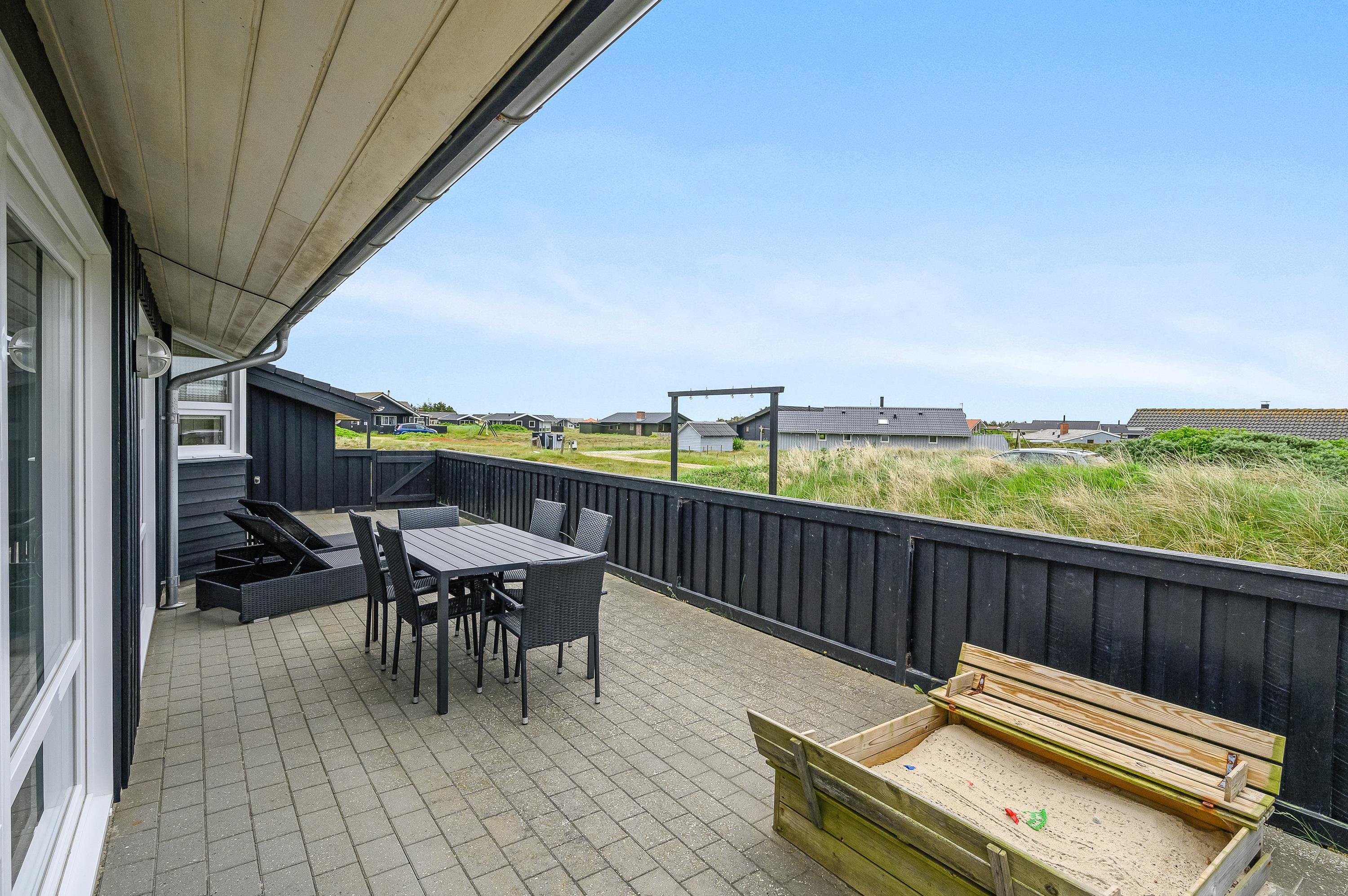 Bliver blæsten for vild, eller regner det, så kan I alligevel godt holde en hyggelig grillaften med udsigt til klitterne; i den dejlige udestue har I nemlig altid læ for den, til tider, lunefulde natur. Fra udestuen er der adgang til den store lukkede og delvist overdækkede terrasse.