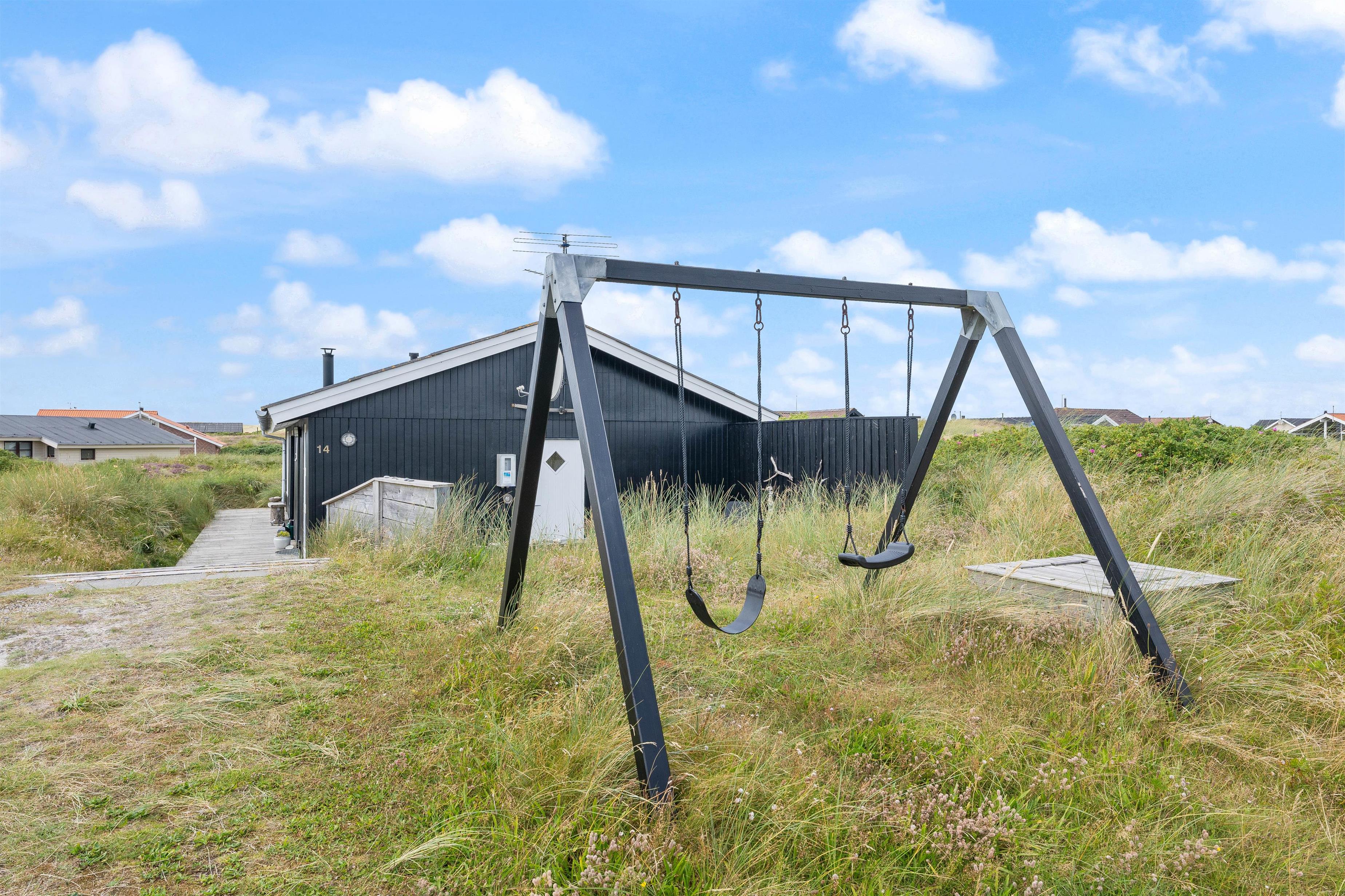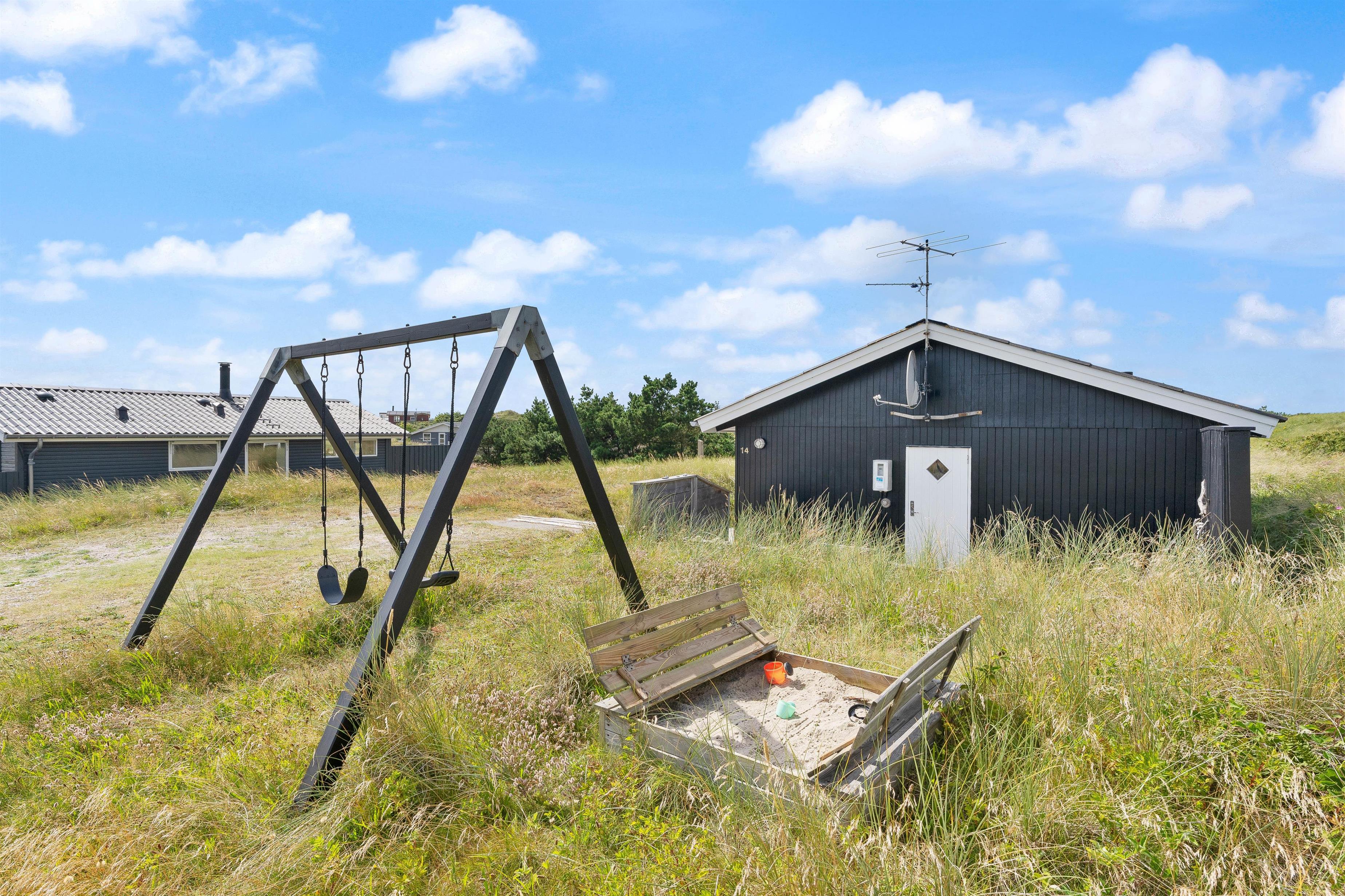 Desuden er der både gyngestativ og sandkasse til familiens yngste.