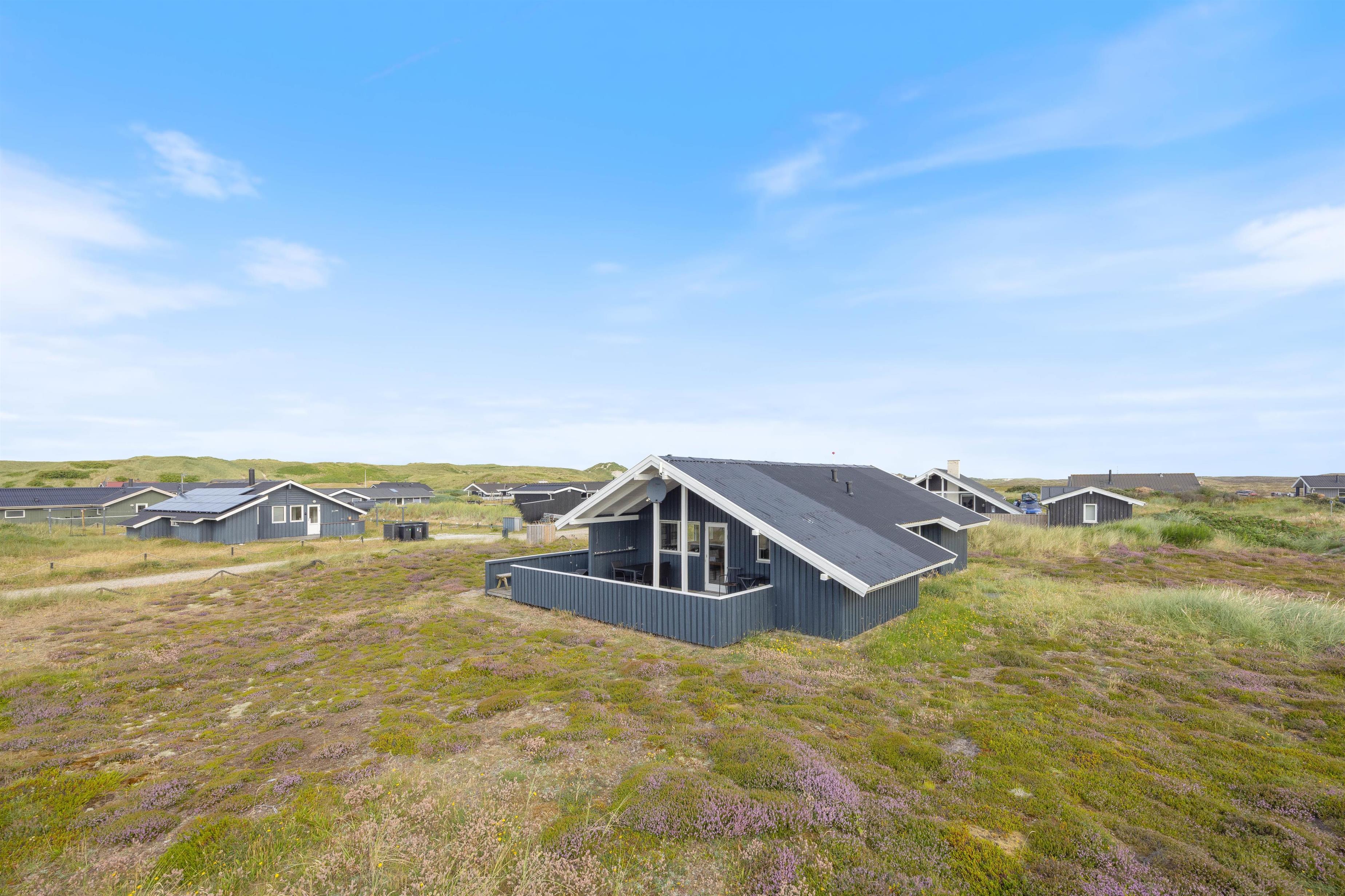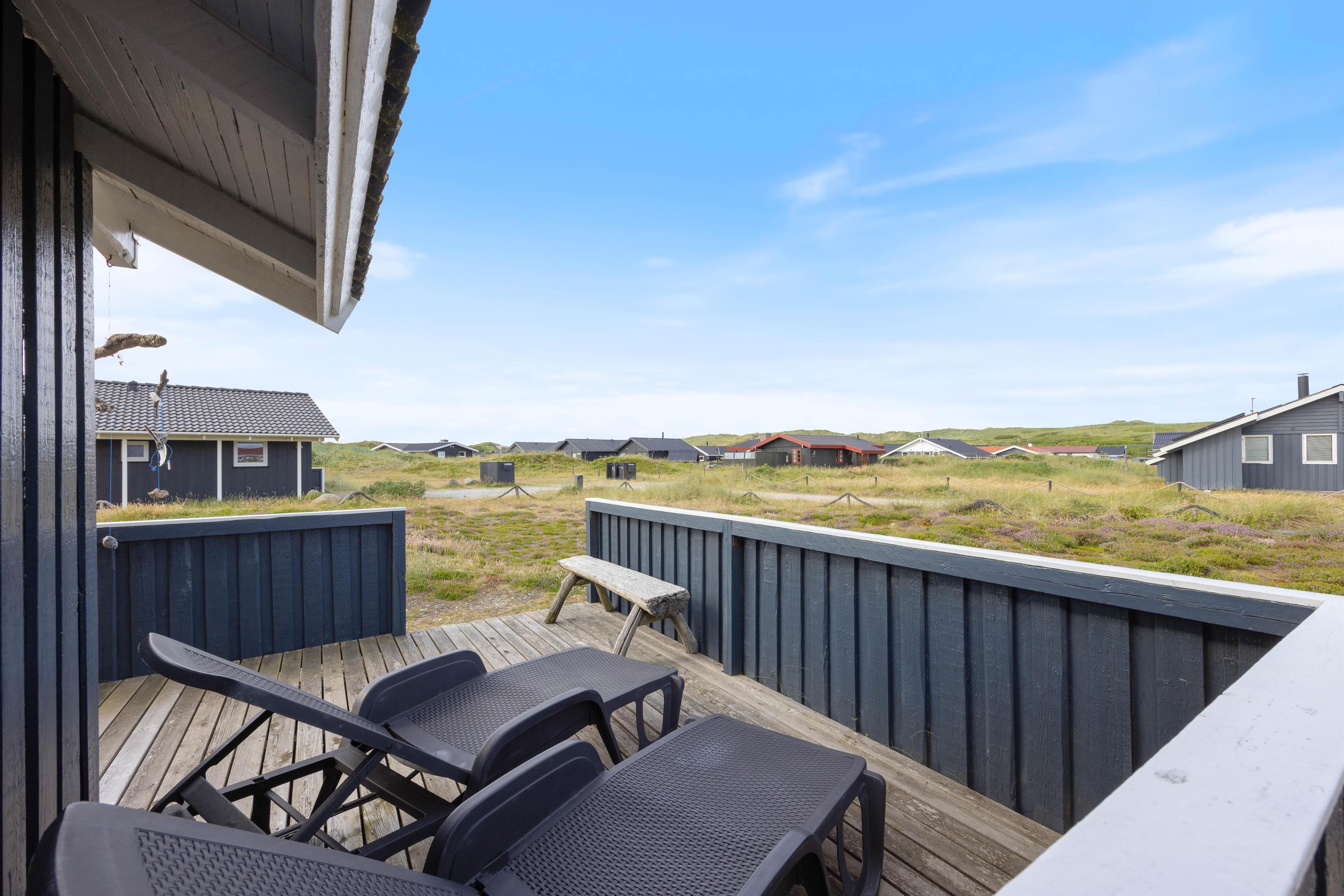 Dette fine sommerhus ligger i Bjerregård, cirka 15 kilometer syd for Hvide Sande og kun et par minutters gang fra den smukke strand, som ligger blot 100 meter herfra. Her kan du lade dig blæse igennem, finde ro og lade batterierne op.